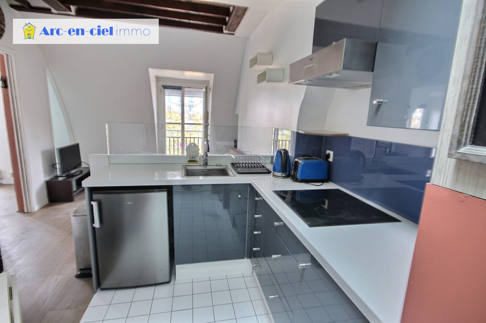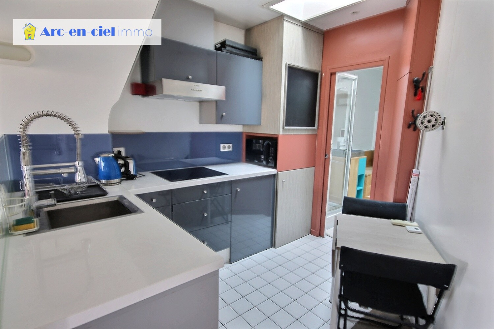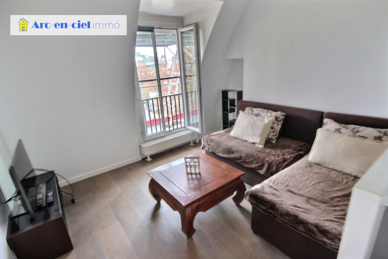 Paris 12, Métro Daumesnil, donnant sur la Place Felix Eboué avec vue dégagée au 6è DERNIER ETAGE avec ascenseur, agréable et lumineux 2 pièces loué meublé de 28.38m² au sol (25.61m² habitable). Composé d'un séjour avec toit cathedrale et espace cuisine équipée en angle et velux, 1 belle chambre avec armoires de rangement, salle d'eau et wc en hauteur avec velux également.