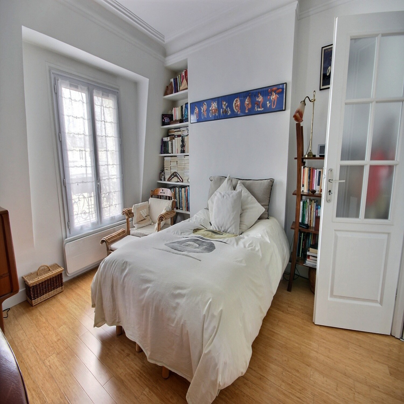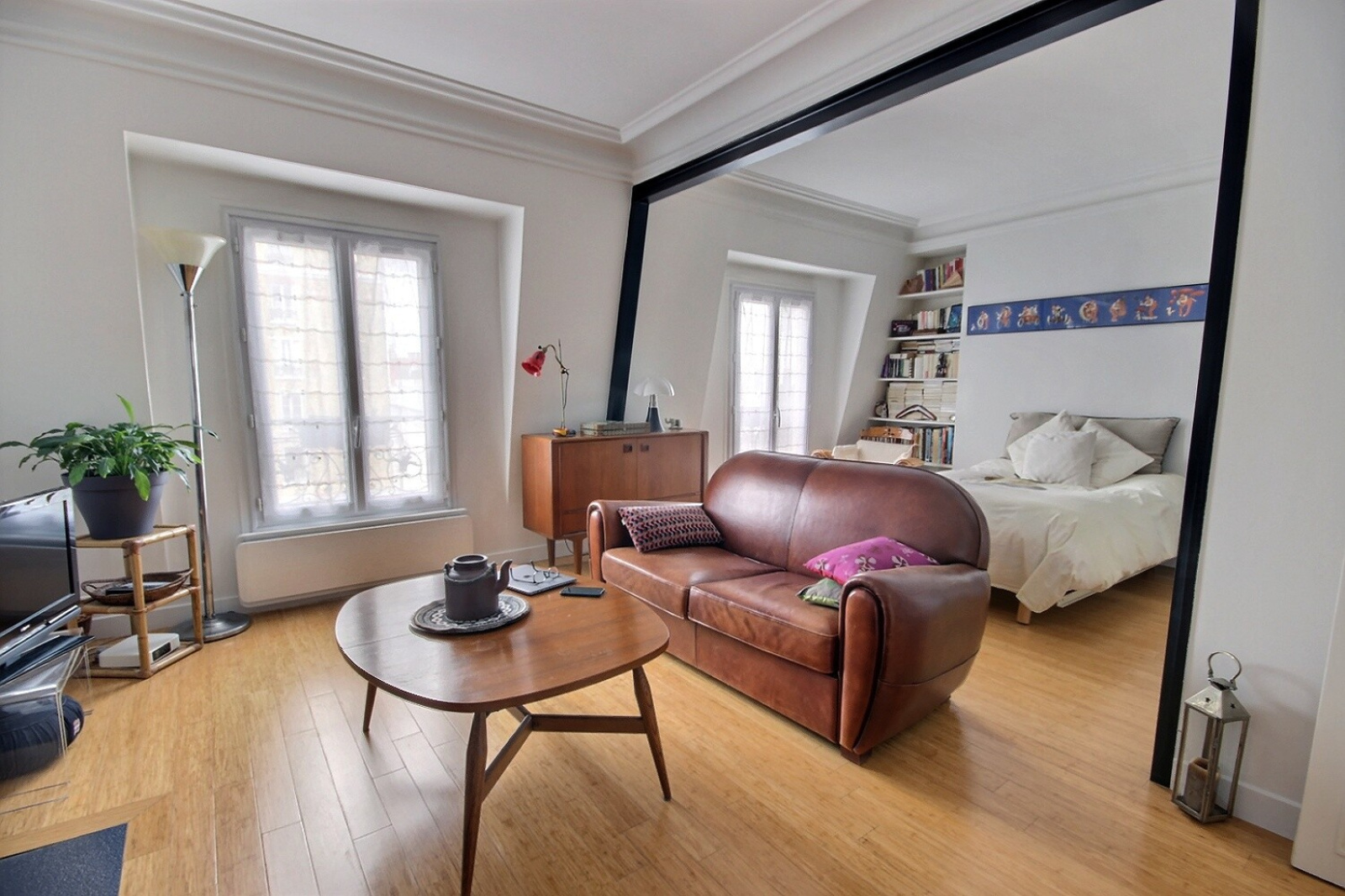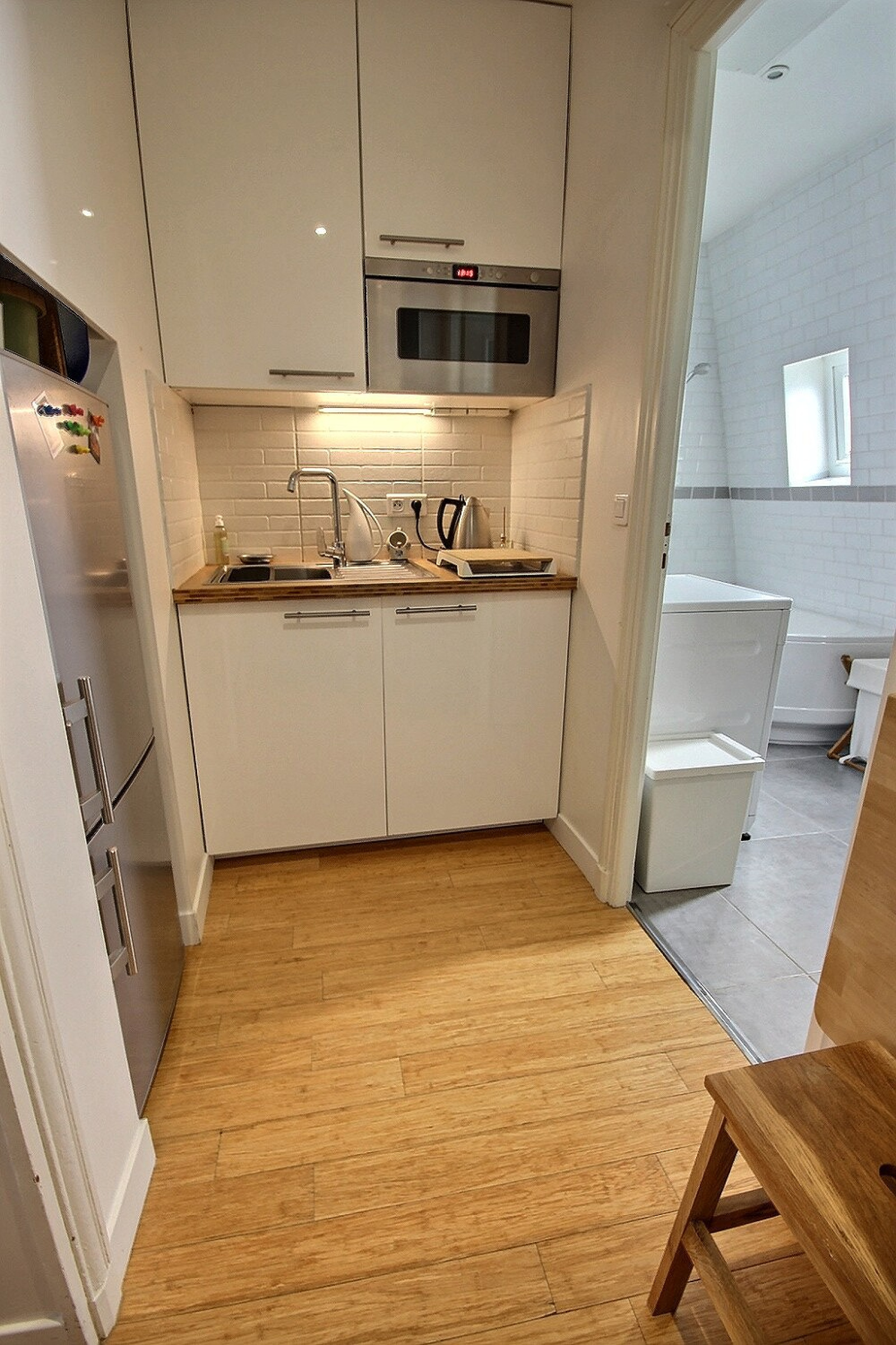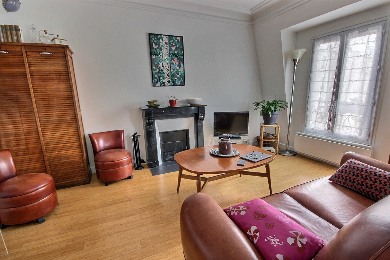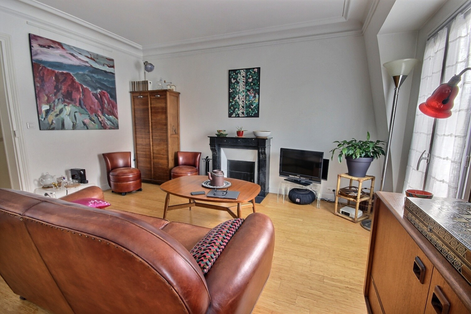 Paris 20ème en limite du 11ème, entre les métros Père Lachaise et Ménilmontant, dans bâtiment cour avec au dessus des combles isolées, et un local vélos, au 4ème DERNIER ETAGE avec VUE DEGAGEE Nord-Ouest, entièrement refait en 2014 avec électricité, plomberie, radiateurs performants, double vitrage, parquet bambou, très beau deux pièces extrêmement lumineux traversant de 37.05m² au sol soit 35.36m² Carrez. Composé d'une entrée avec kitchenette équipée en pan mural avec placard desservant un beau séjour avec cheminée ramonée, ouvert sur spacieuse chambre avec nombreux placards muraux (pouvant être fermée), belle hauteur sous plafond, dégagement avec placard / penderie, donnant accès à une belle salle de bains, baignoire d'angle et wc, placard, branchement lave-linge et deux petites fenêtres double vitrage aussi. Cette même salle de bains ayant aussi accès à l'entrée et chambre de ce fait.1 cave. TRES RATIONNEL, COUP DE COEUR.