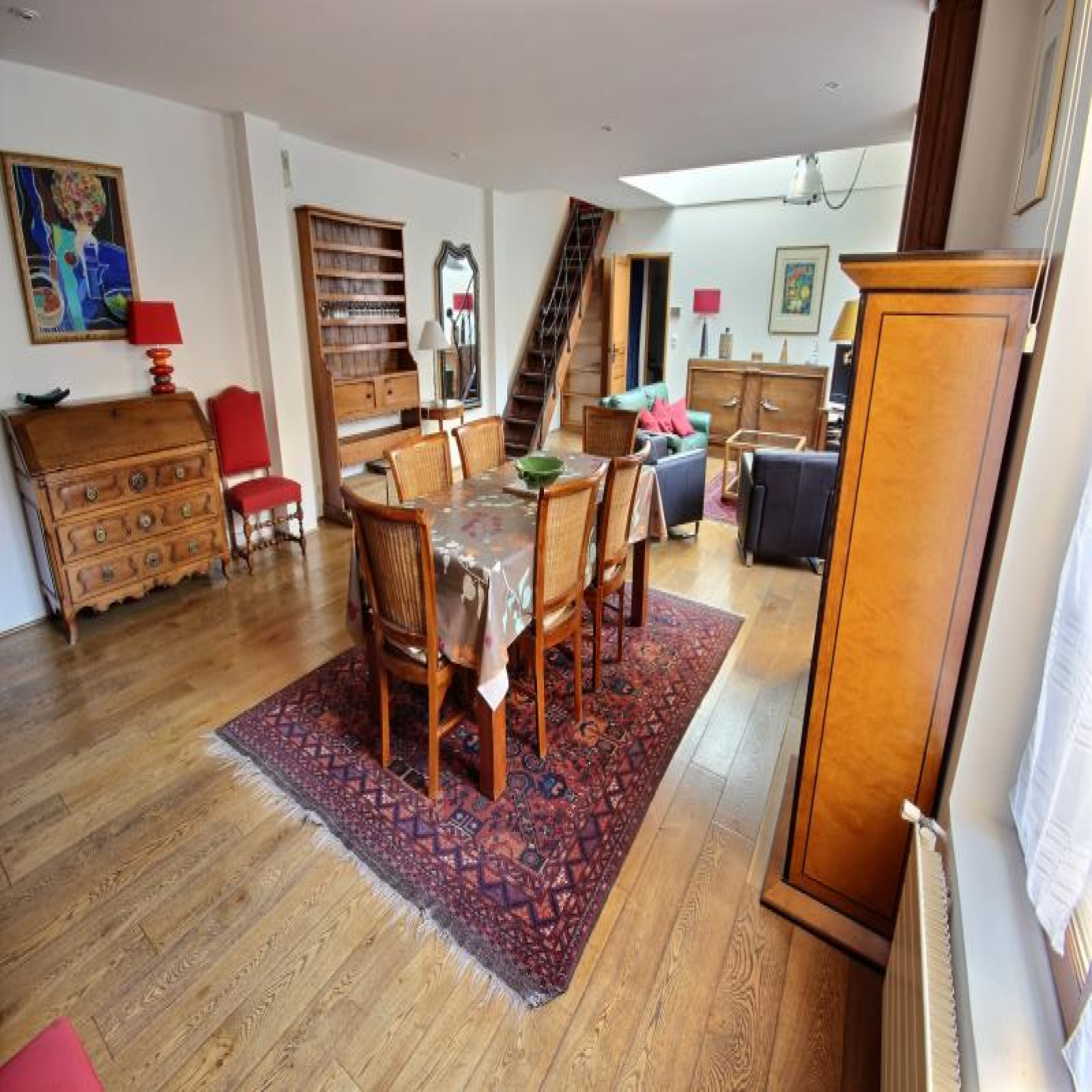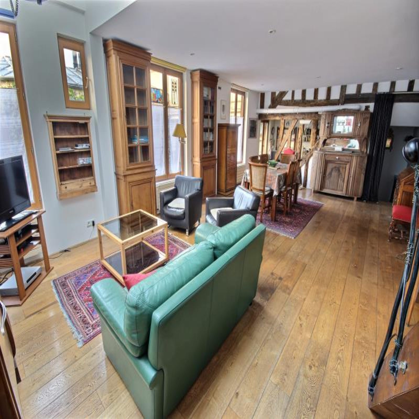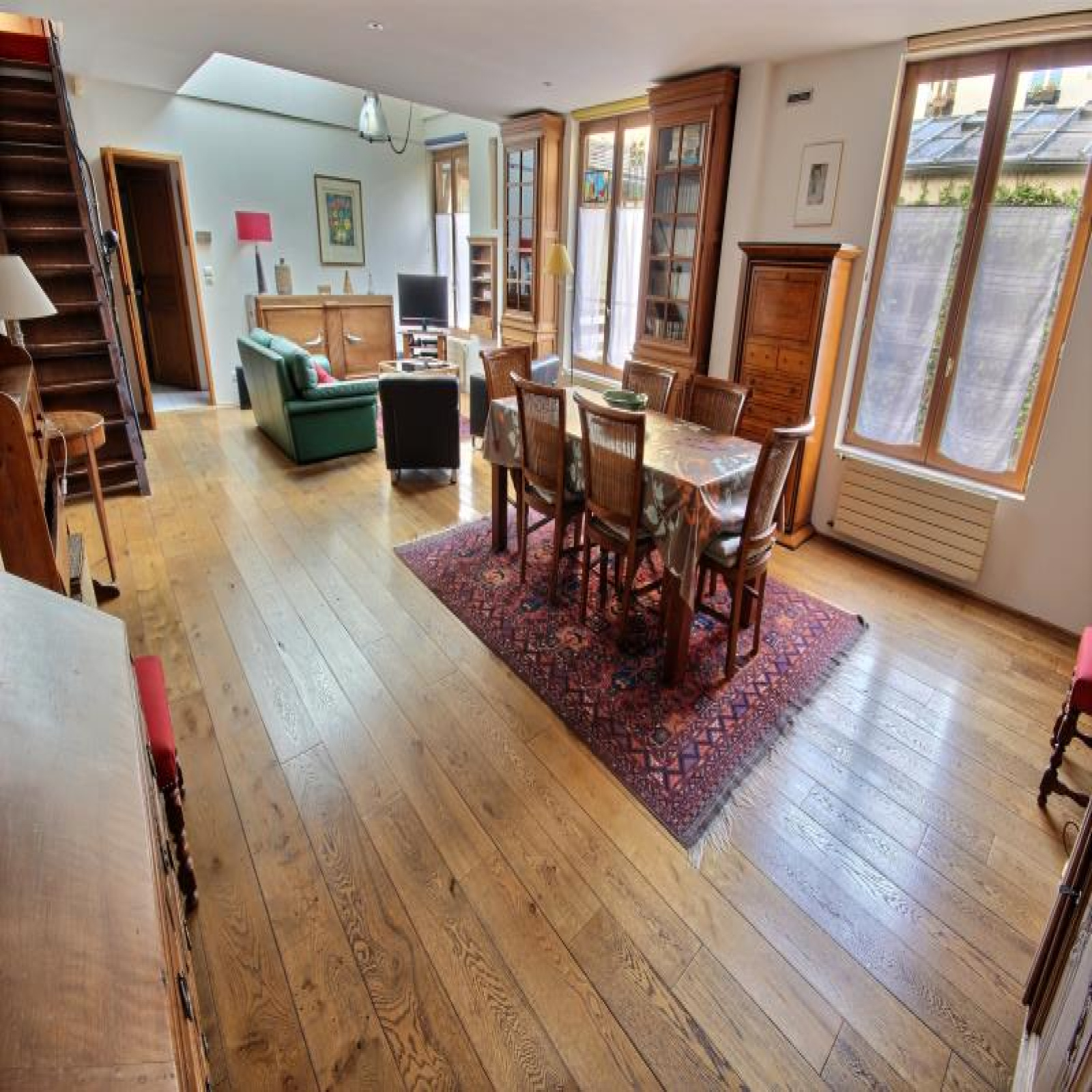 Paris 11ème limite Paris 3ème, Le Marais, Métros St Sébastien Froissart, St Ambroise et Oberkampf, au grand calme de ce quartier très animé, proche des écoles, piscine et marché... Ce DUPLEX aux 1er et 2ème et derniers étages avec vue dégagée, dans une maison "comme à la campagne" avec ses colombages et sa tranquilité, dans une copropriété de Lofts très "Bobo" sympathiques avec cour aménagée et partagée. Très faibles charges. Cet appartement de 133,30m² au sol dont 107m² Carrez, soit 120m² pondérés. Il comprend : une entrée, vaste séjour double de près de 50m² avec superbe parquet massif, 3 fenêtres double vitrage à l'Est sur la belle cour, d'une partie avec vide sur séjour et VERRIERE, Cuisine ouverte mais séparée par colombages (peut être refermée avec sa fenêtre), 1ère chambre avec sa salle de bains, wc et buanderie, placard. A l'étage sous les combles, 2 chambres dont une suite parentale avec sa salle d'eau. BEAUX VOLUMES. RATIONNEL. Chauffage individuel au gaz. Très bon état général. A voir rapidement. Copropriété : x lots dont y lots principaux. Quote-part budget prévisionnel annuel : 2466 E. Prix affiché honoraires inclus à 3,04% TTC.