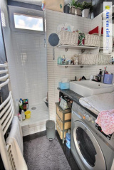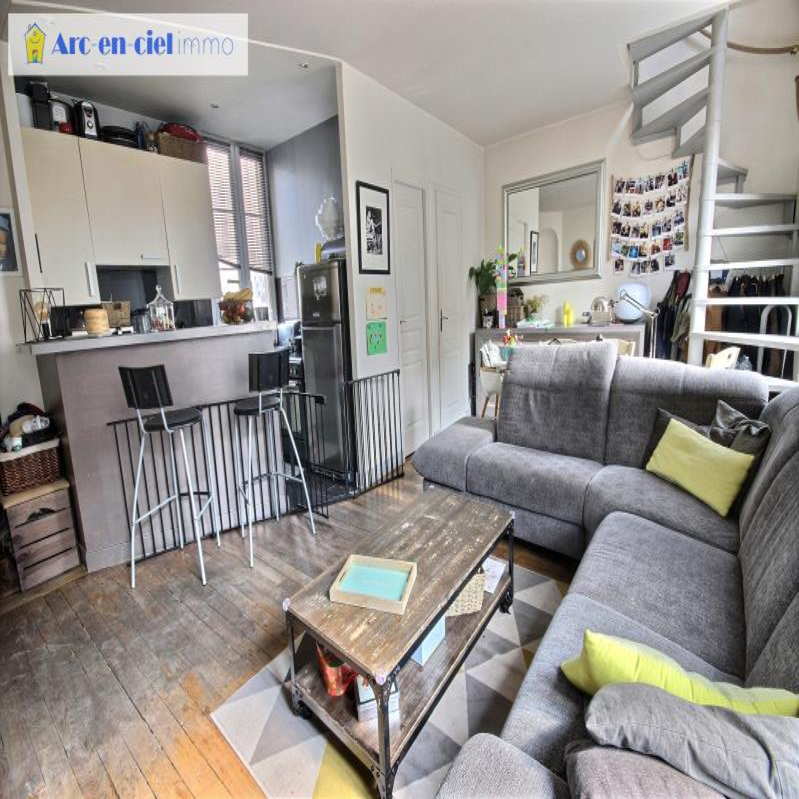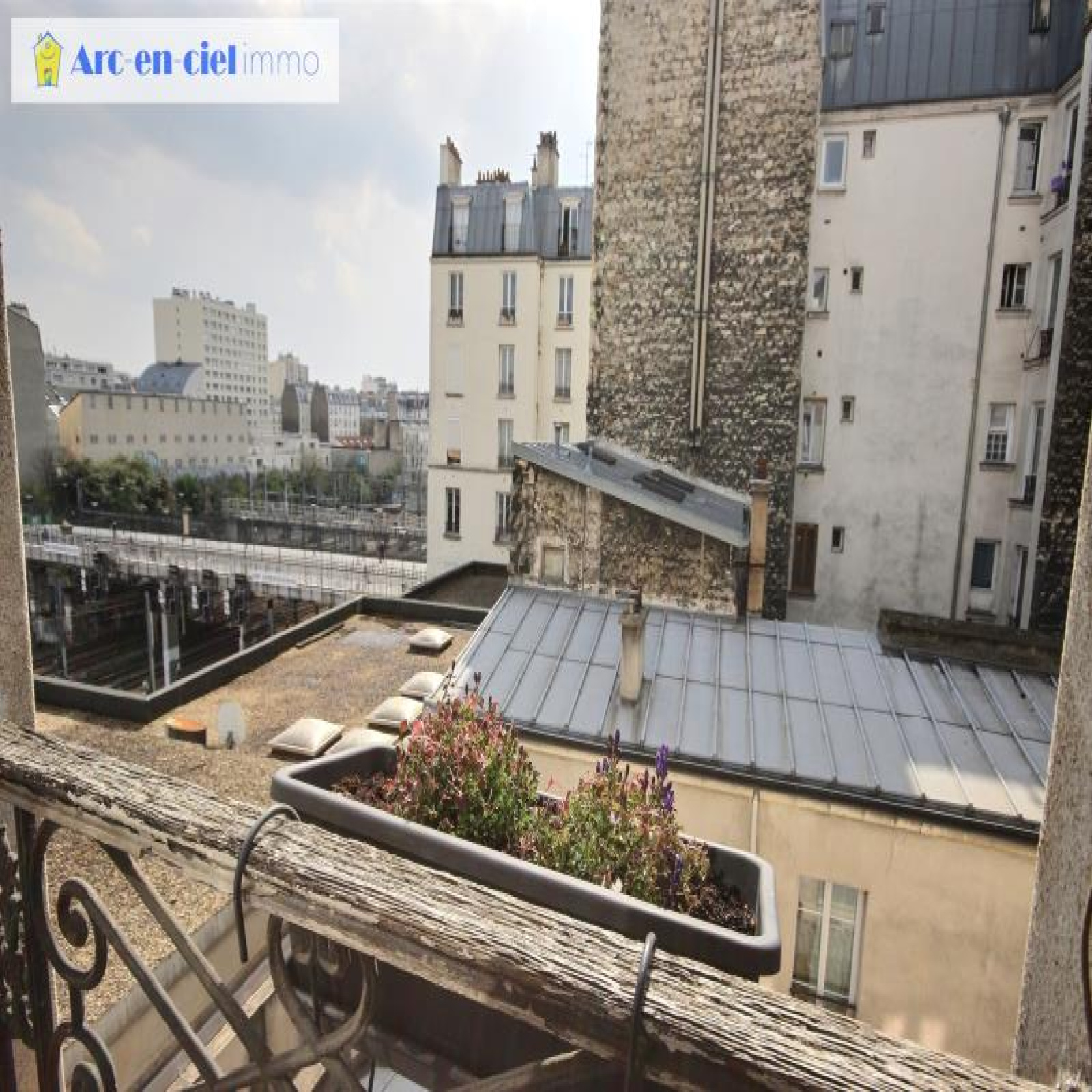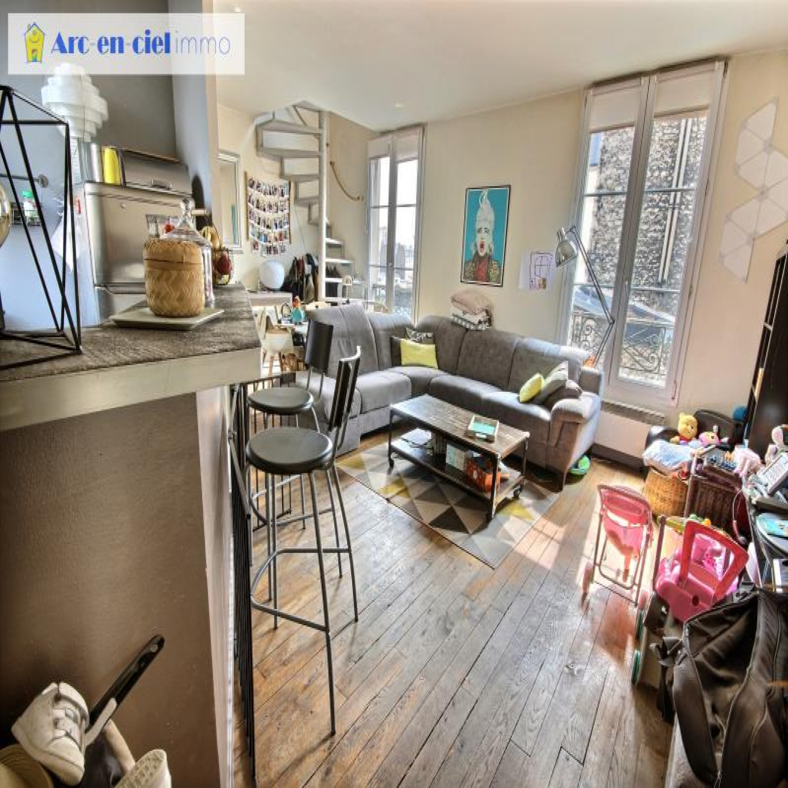 Duplex aux 3ème et 4ème derniers étages sans ascenseur, d'un immeuble dont ravalement des façades avec isolation thermique et rénovation complète de la cour sont votés et payés par vendeur. 70m² au sol, dont 66,27m² Carrez avec des extensions possibles (rachat d'un wc palier au 3ème et les combles). Plein SUD avec vue dégagée sur le pont Doudeauville, rue Francis Carco, entre les métros Marx Dormoy et Marcadet-Poissonniers. L'appartement se compose d'une entrée, séjour double avec parquet et 2,6m de hauteur sous plafond et 2 fenêtres double-vitrages, cuisine à l'américaine aménagée, avec fenêtre oscillo-battante au Nord (double exposition), wc séparé et salle d'eau avec fenêtre et place pour machine à laver. Au 4ème étage : 2 chambres dont une ouverte pouvant être refermée, grand dressing, et ancien wc palier du 4ème annexé par rachat à la copropriété, pouvant être transformé en bureau ou mini chambre ou salle d'eau avec wc éventuellement 2ème porte palière au 4ème condamnée pouvant diviser l'appartement en 2 et 2 caves. Copropriété : x lots dont 35 lots principaux. Quote-part budget prévisionnel annuel : 2.297 €. Prix affiché honoraires inclus à 3% TTC.