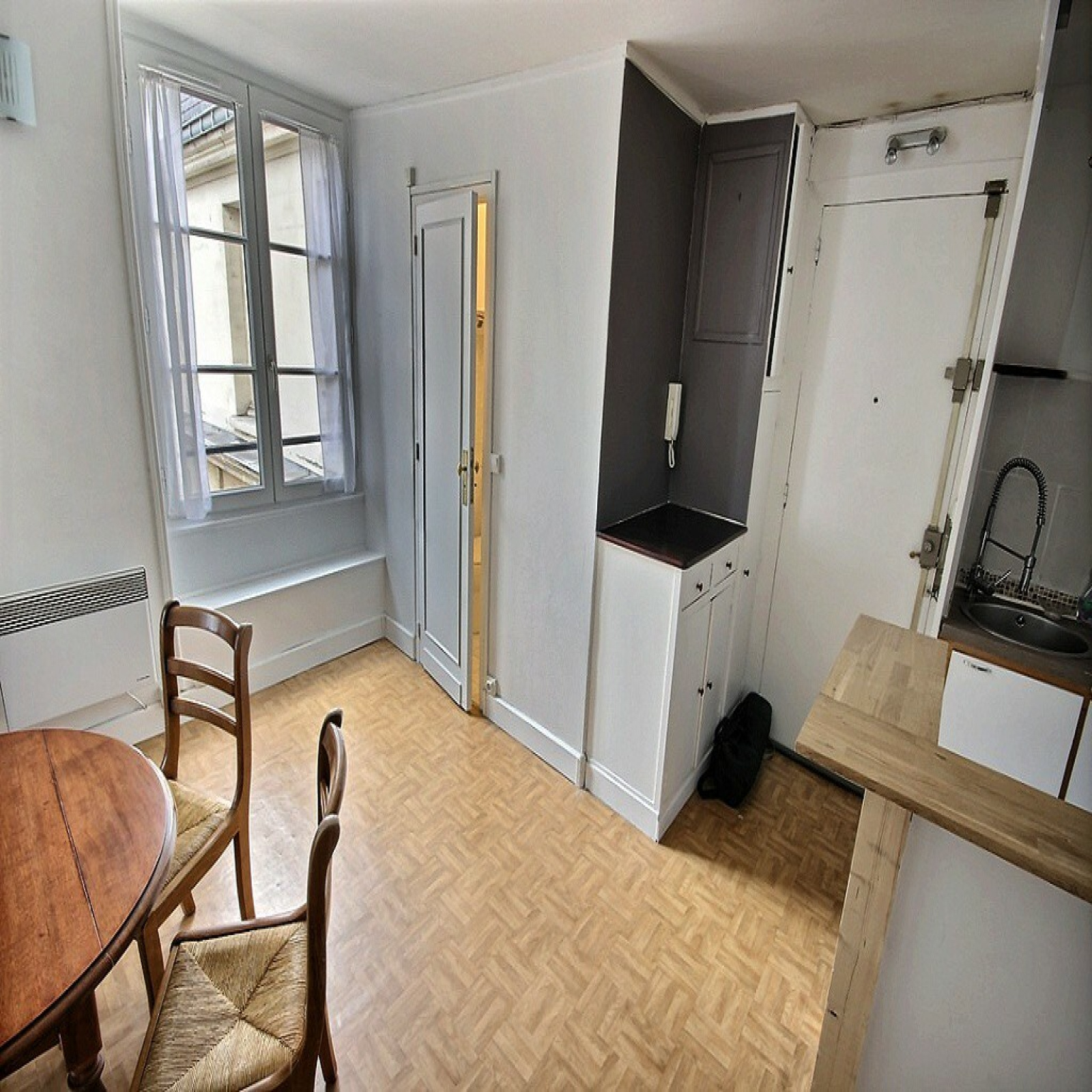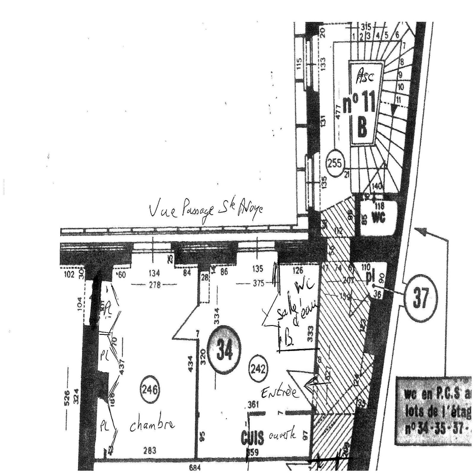 Paris-Centre 3ème Le Marais : Au Coeur du Marais, au calme du Passage Sainte Avoye, qui donne entre la rue Rambuteau et la rue du Temple, passage piétonnier privé (fermé par grilles) avec des Galeries d'Arts, etc. proche métros Rambuteau, Hôtel de Ville et Chatelet Les Halles. Un 2 pièces rationnel de 29,36m² au sol dont 28,16m² Carrez, légèrement mensardé, au 3ème étage AVEC ASCENSEUR. Exposé à l'Est donc ensoleillé et vue très dégagée. Immeuble en Pierre de Taille. Cage d'escalier votée et payée par vendeur. Comprenant : entrée avec placard, séjour et coin cuisine aménagée avec bar, salle de bains avec vrais wc, grande chambre avec nombreux placards. A rafraîchir la décoration. Fenêtres doubles vitrage de bonne qualité. Idéal pied à terre ou Résidence principale.