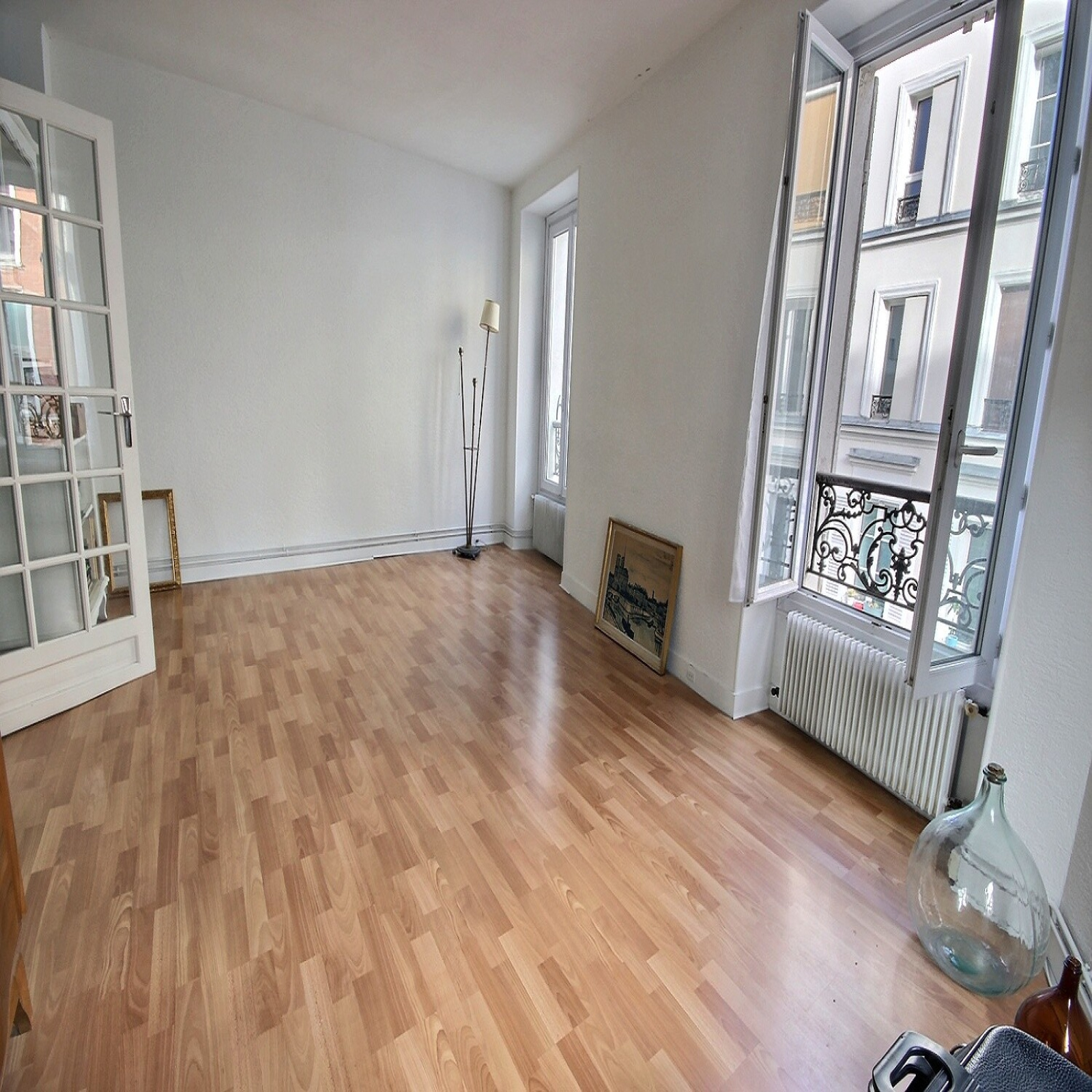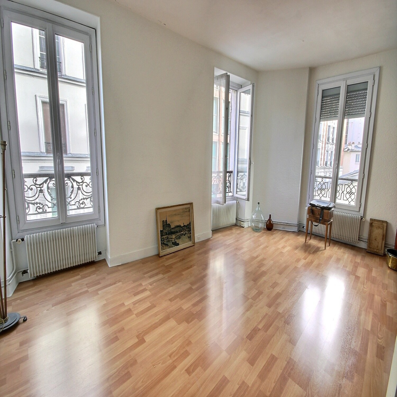 Angle rue de Meaux et rue du Rhin, Métro Laumière, au pied des commerces, à proximité immédiate du Parc des BUTTES CHAUMONT, de la Mairie et non loin du Canal et bassin de La Villette, au 2ème étage sans ascenseur, ce grand 2 pièces de 43,48m² au sol dont 42,82m² Carrez, Plan en étoile, entrée qui dessert toutes les pièces avec placard, grand séjour d'angle de 22m² avec 3 fenêtres en double vitrage et volets roulants sur la rue du Rhin, sa chambre sur ruelle calme, cuisine semi-équipée, salle de bains avec WC. La décoration (carrelages cuisine et sdb), l'électricté... est à refaire pour personnaliser et pour valoriser le bien. Chauffage individuel au gaz,1 belle cave complète ce bien.