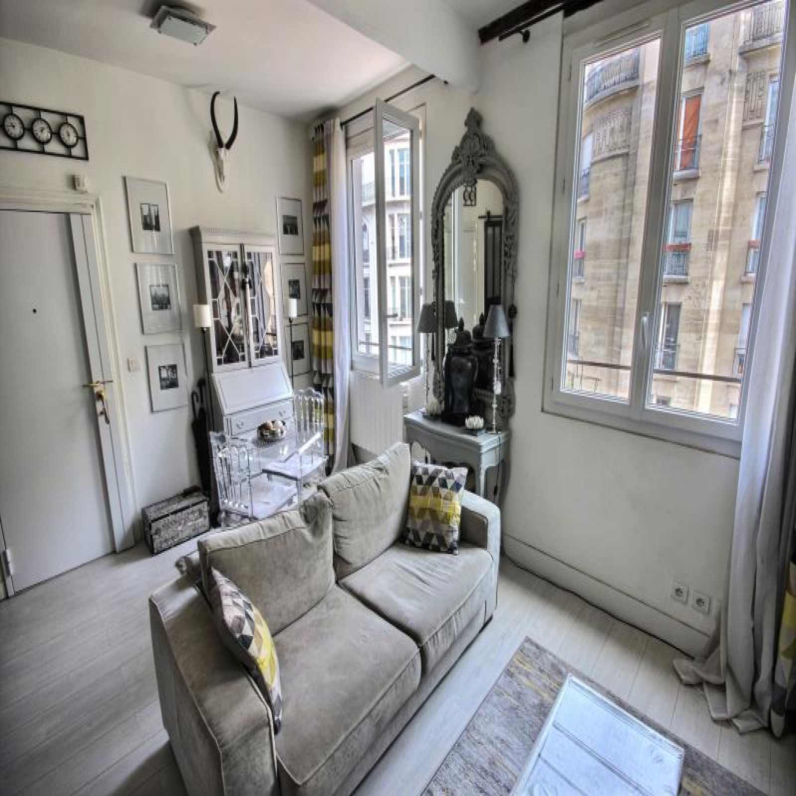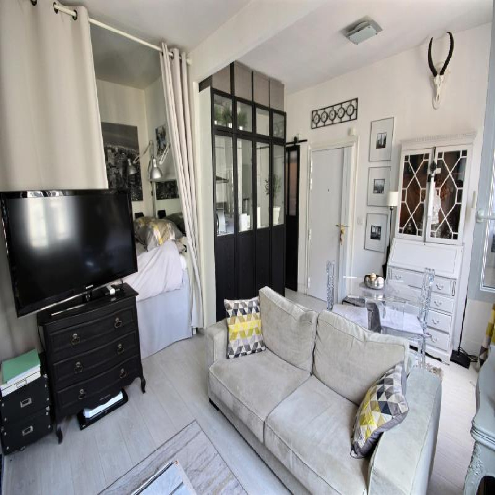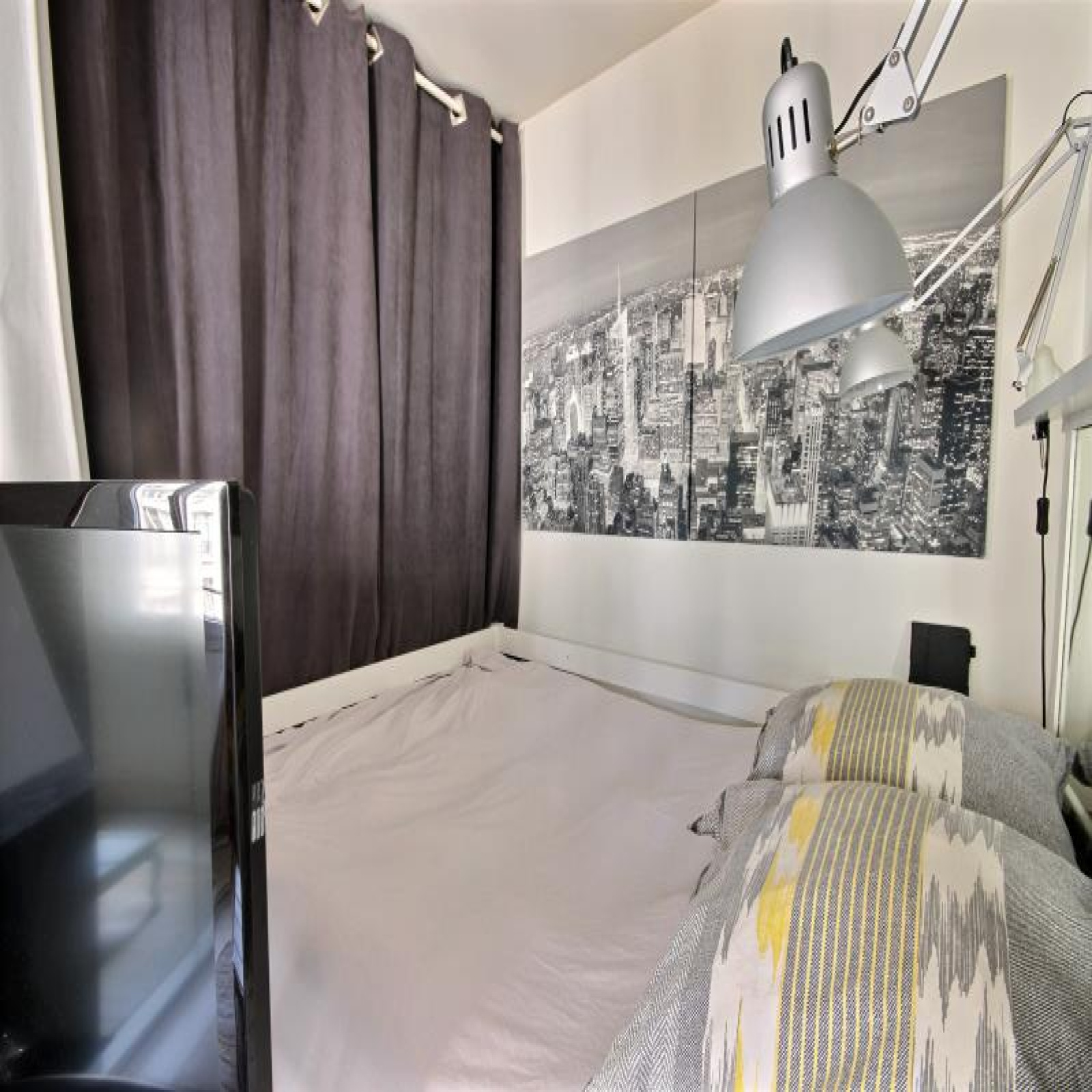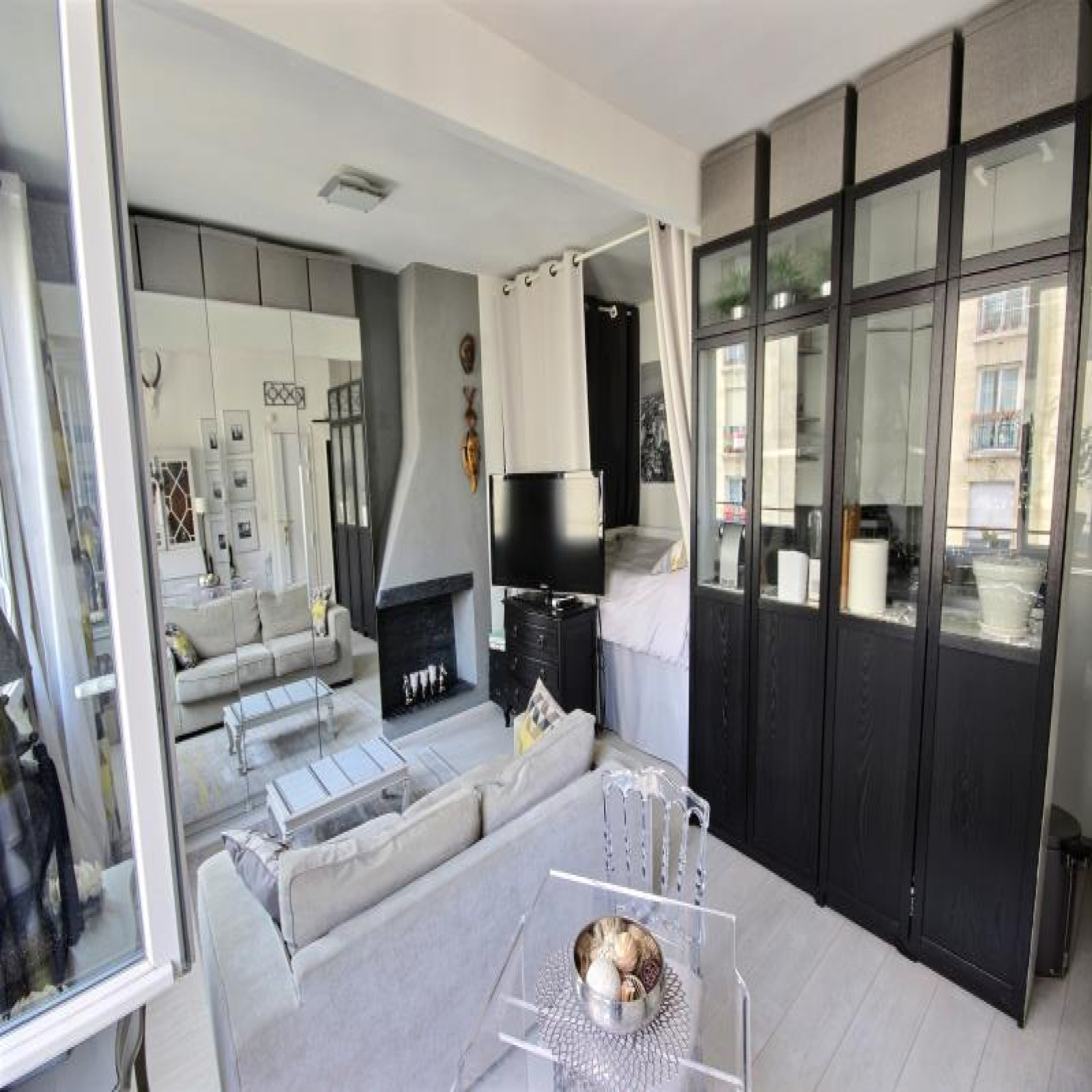Coup de coeur. Rue Beaubourg proche de la station des Arts & Métiers, du musée des Arts Modernes Georges Pompidou et du quartier du Marais, au 4ème étage sans ascenseur, un studio/2 pièces de 29,41m² Loi Carrez et belle hauteur sous pladond en EXCELLENT ETAT. Il se compose d'une pièce à vivre avec parquet, 2 fenêtres, un espace nuit, une cuisine séparée par une verriere avec possibilité de l'ouvrir, branchement lave-linge, une belle salle d'eau comtemporaine avec béton ciré au sol et wc intérieur. Porte blindée. Copropriété très bien entretenue. Classe d'énergie en cours. Petite Copropriété : 18 lots dont 12 lots principaux. Quote-part budget prévisionnel annuel : 2.352€ Prix affiché honoraires inclus à 3,14% TTC.