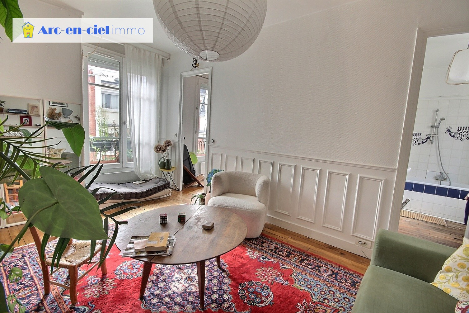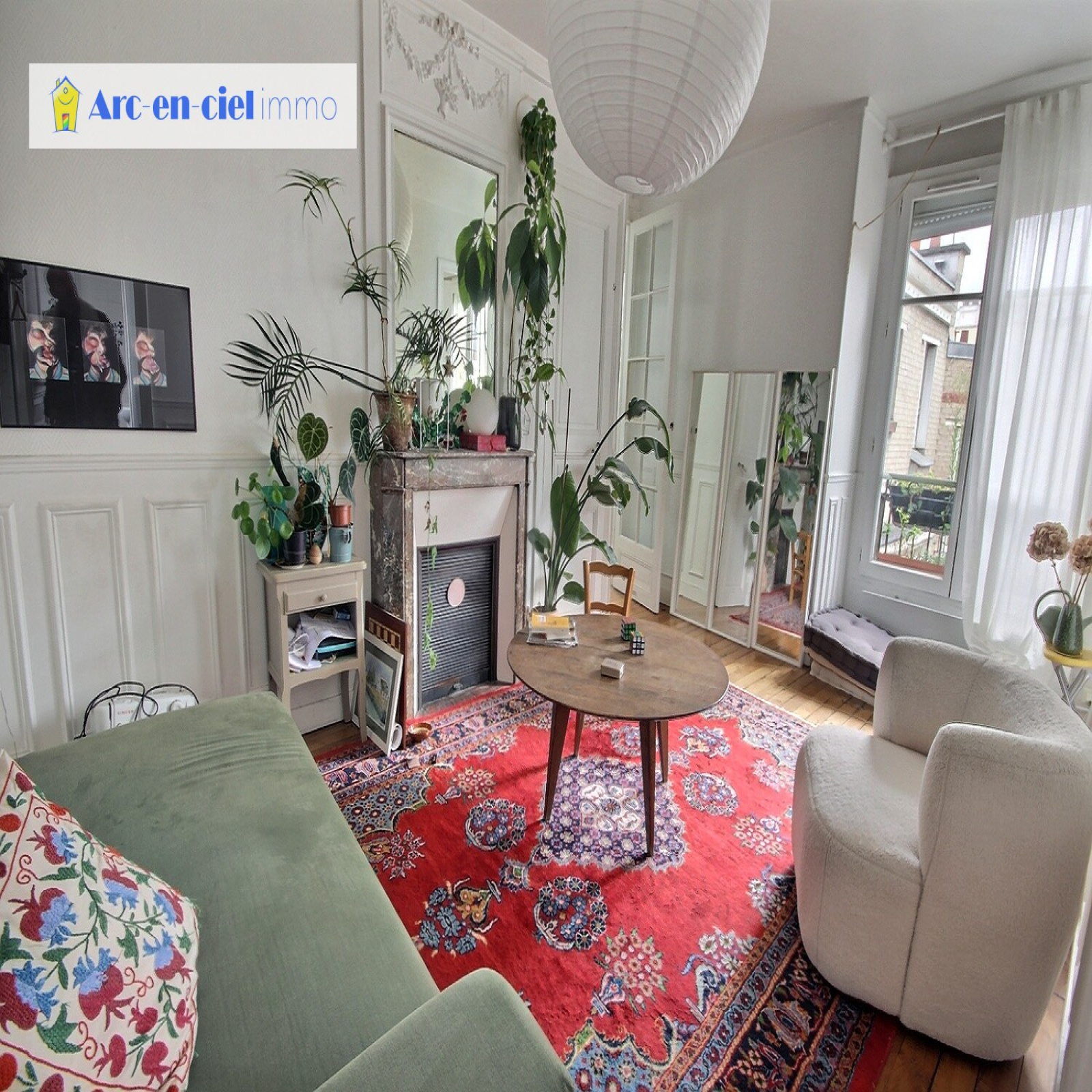 Paris 18 proche Métros Guy Môquet et la Fourche, côté Lamarck, proche Cimetière Montmartre, Villa Etex, SUPERBE 2 pièces TRES LUMINEUX de 36,80m² Carrez au 6è et DERNIER ETAGE sans ascenseur sur cours calmes dans immeuble Bourgeois Pierre de taille et brique blanche. Très beau parquet et belle hauteur sous plafond dans toutes les pièces (2.70m). Il est composé d'une entrée avec placard et fenêtre, séjour avec moulures, cheminée, miroir et exposé plein SUD, 1 chambre avec cheminée et placard, cuisine avec fenêtre, salle de bains look rétro avec nombreux rangements (placards et étagères), fenêtre et branchement machine à laver le linge, wc indépendant avec fenêtre. Double vitrage dans toutes les pièces sauf celle du WC et volets roulants électrique dans chambre. 1 cave complète ce bien.