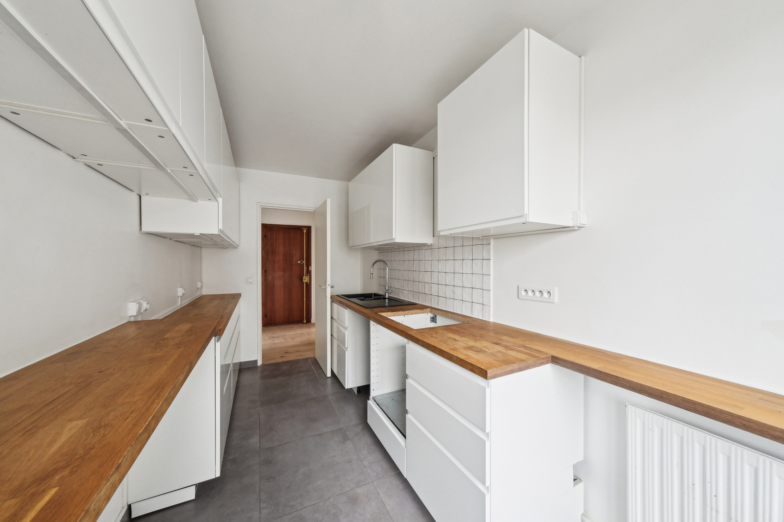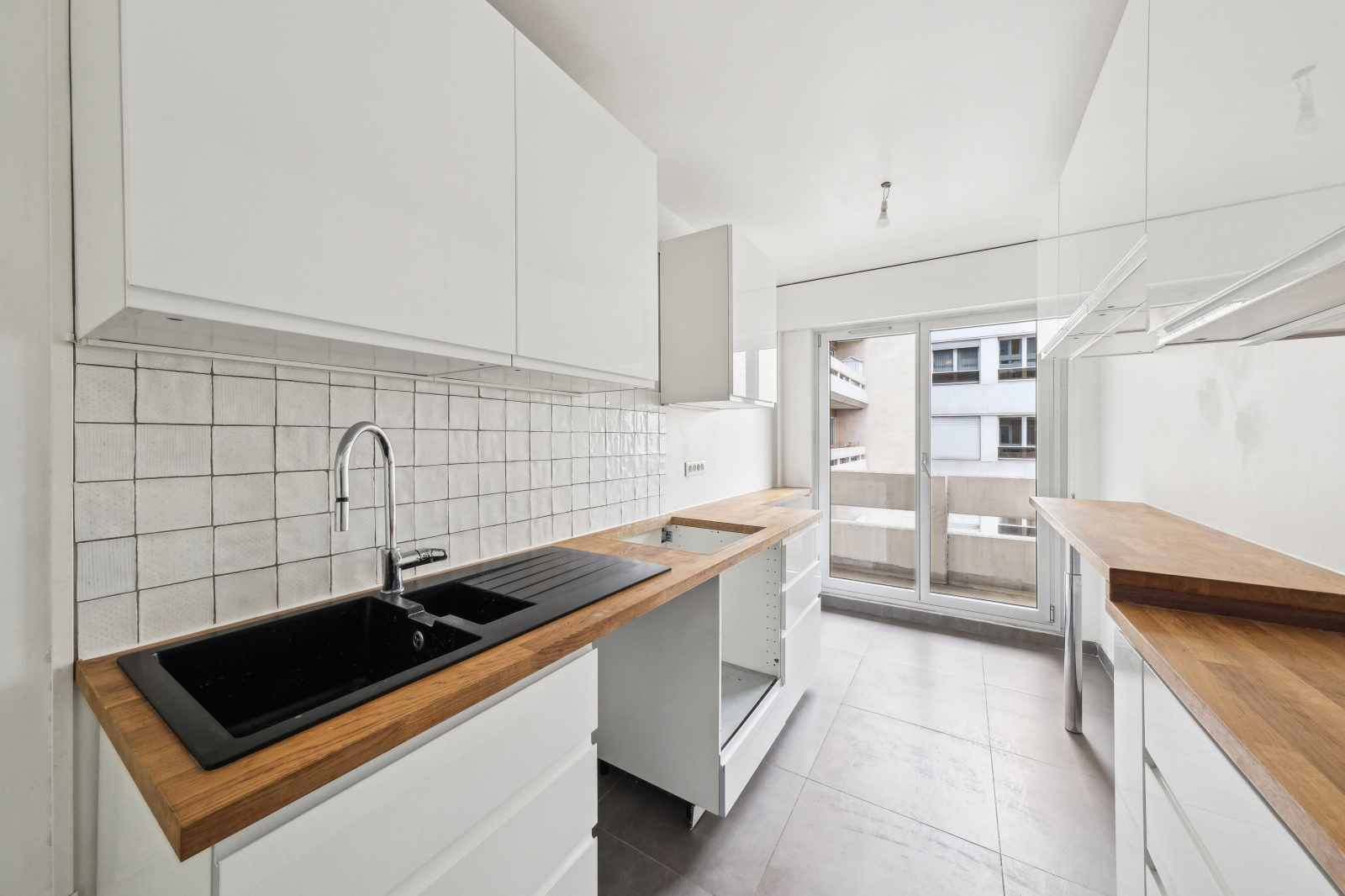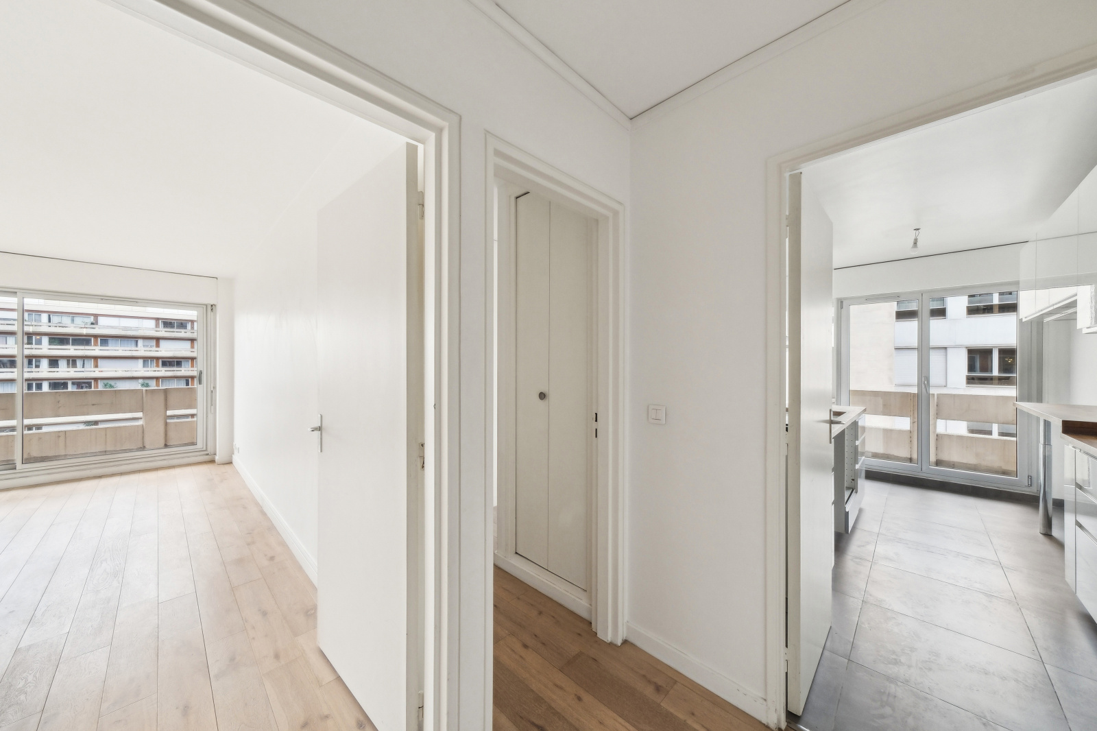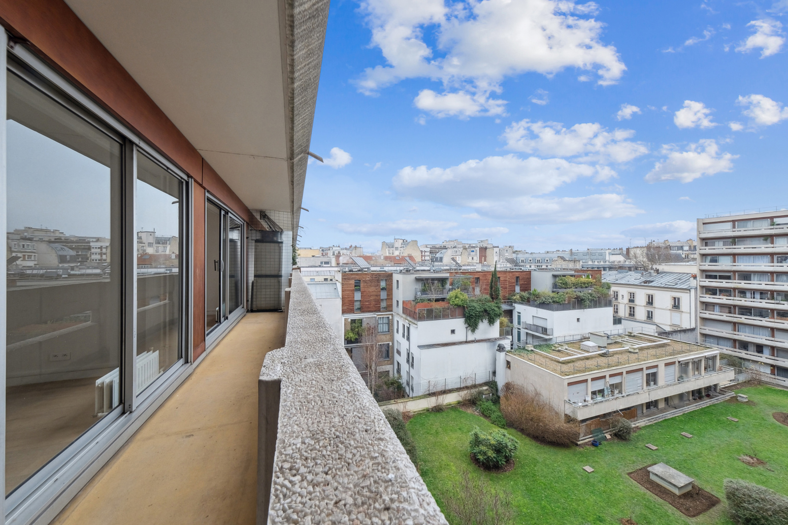 Rue de la Roquette, entre Place de la Bastille et Place Voltaire (métro ligne 9), rue agréable et commerçante, dans bel immeuble de standing 1974, sur jardin au grand calme, au 7ème avec ascenseur, 2 BALCONS (8.27 et 2,95m²) double exposition Sud/Est-Nord/Ouest, appartement de 3 pièces de 59,74m² Carrez. Il comprend : Entrée avec 2 grands placards, beau séjour de 20m² donnant sur balcon exposé Sud/Est, 2 chambres donnant egalement sur le balcon au calme sur jardin, grande cuisine aménagée et dotée d'un balcon donnant également sur jardin avec un aperçu de la Tour Eiffel, salle de bains et WC séparé. Cet appartement sans travaux à prévoir, dispose d'un plan rationnel, le tout au calme dans un quartier animé. La copropriété, verdoyante et bien entretenue, profite également de deux gardiens. 1 cave ainsi qu'un parking au sous-sol complètent ce bien de qualité.