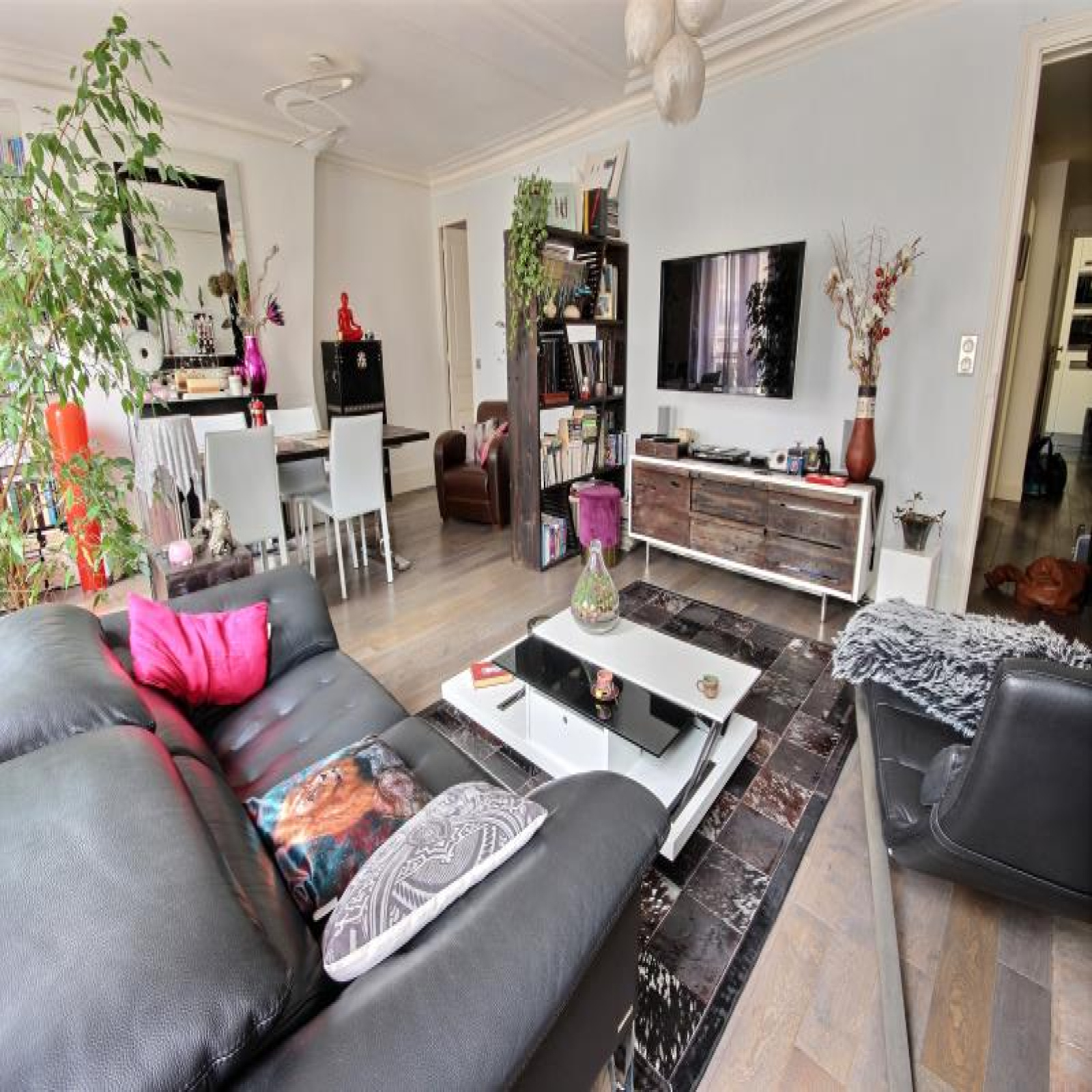 VISITES POSSIBLES SUR RDV AVEC RESPECT REGLES SANITAIRES :~Proche République et métro Jacques Bonsergent, rue Lucien Sampaix, avec ses restos sympas, Dans un bon immeuble ancien bougeois, en Pierre de Taille, au 4ème étage sans ascenseur, ce somptueux 3/4 pièces de 80m² au sol (79,46 m2 Carrez), comprenant : Entrée avec porte blindée, grand séjour double de 31m², avec beau parquet, moulures, 2 cheminées et 3 fenêtres double-vitrage sur rue, cuisine moderne indépendante avec double exposition, toute équipée, 2 chambres sur cour calme, dont 1 avec un dressing équipé et l'autre de grands rangements équipés, une belle salle de bains moderne, avec baignoire jacuzzi et douche à jets, placard buanderie, wc séparé avec fenêtre. 2,6m de hauteur sous plafond. Chauffage individuel au gaz (chaudière neuve). Tout équipé en cable et RJ45... Bref, il n'y a qu'à poser ses meubles dans cet appartement impeccable. 1 belle cave.~Classe d'énergie D. Copropriété : 36 lots dont 19 lots principaux. Quote-part budget prévisionnel annuel : 2.580 €. Prix affiché honoraires inclus à 4% TTC.