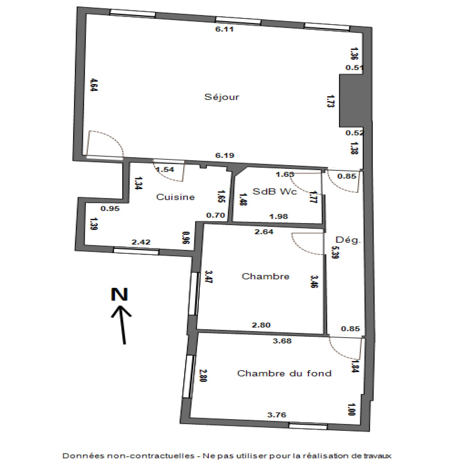 À proximité immédiate des métros 3 et 11, dans un immeuble ancien bien entretenu, découvrez cet appartement de 3 pièces de 61.81m² au sol dont 61.09m² Carrez, situé au 5ème et dernier étage sans ascenseur (escalier privatif du 4ème au 5ème). Il se compose d’une entrée avec porte renforcée, d’un vaste séjour lumineux de 27m² doté d’un beau parquet, d’une cheminée avec insert et une belle hauteur sous plafond, d’une cuisine aménagée de 6.83m², de deux chambres avec parquet bambou de 10 et 11m² sur deux cours calmes ainsi que d’une salle d’eau avec WC.