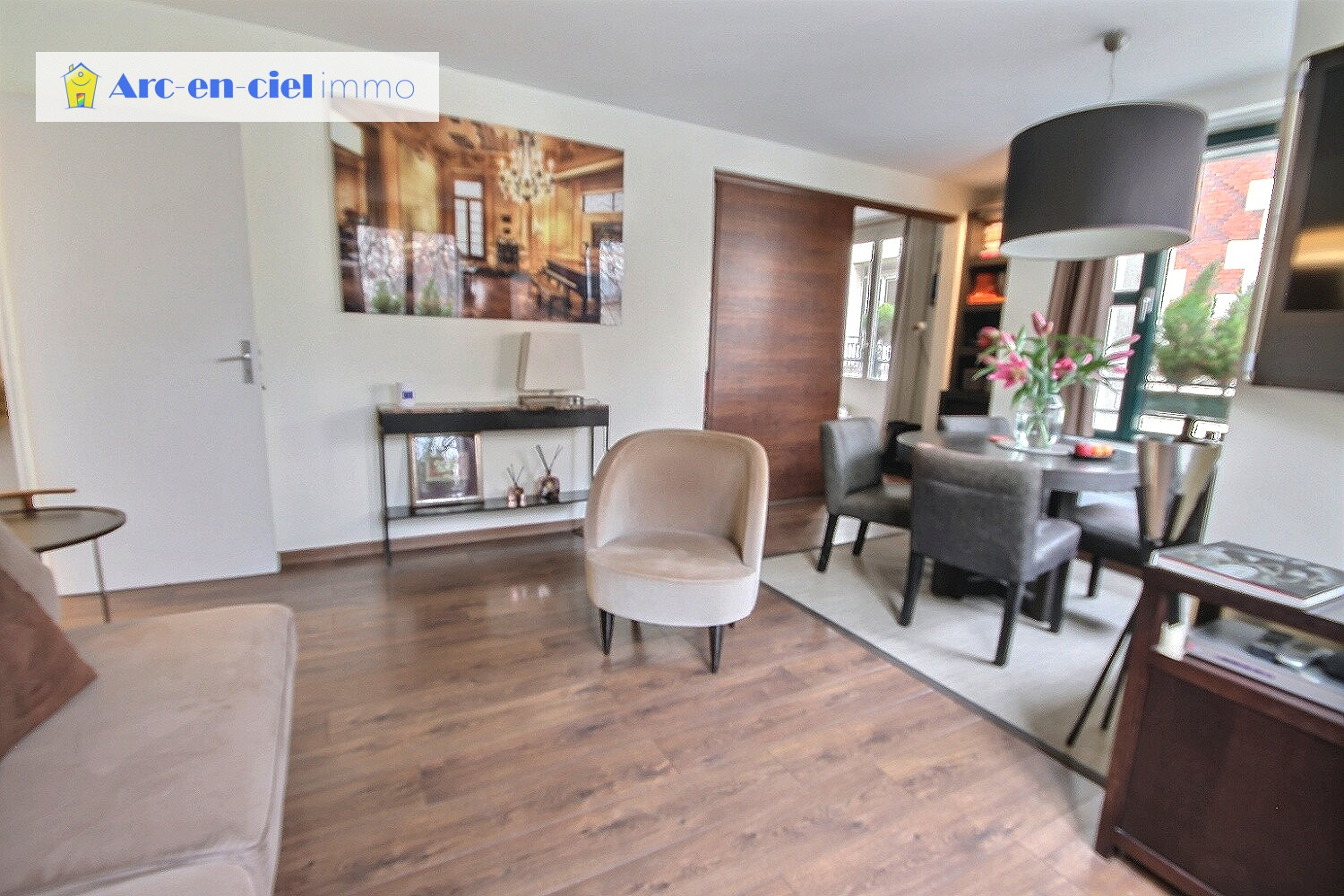 À proximité des métros 1 (entre Hotel de ville et Saint-Paul) et Rambuteau métro 11, dans un bel immeuble récent de standing et bien entretenu de 1990, au 1er étage avec ascenseur avec vue dégagée et sur monuments et arbres, un appartement 2 pièces de 48.52m² Carrez, moderne, bénéficiant d'une double exposition Sud-Ouest et Sud-Est.