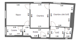 Une cuisine indépendante de 3.5m² ainsi qu’une salle d’eau de 3m² ; WC de 1,50m² et 2 caves de 4m² complètent ce bien.