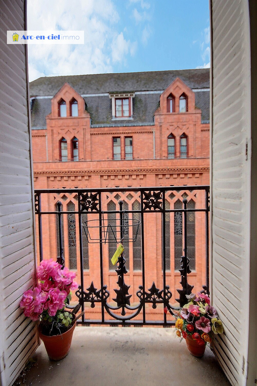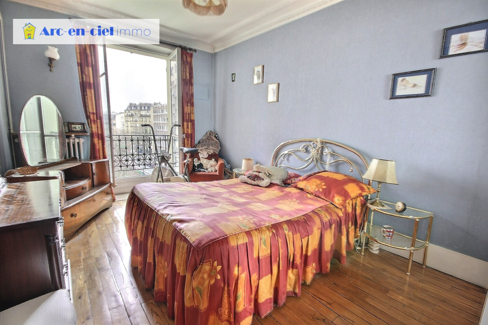 L’appartement dispose également d’une grande chambre de 13.88m² avec vue dégagée et beau parquet droit, d’une salle d’eau avec WC, ainsi que d’une grande cuisine équipée.