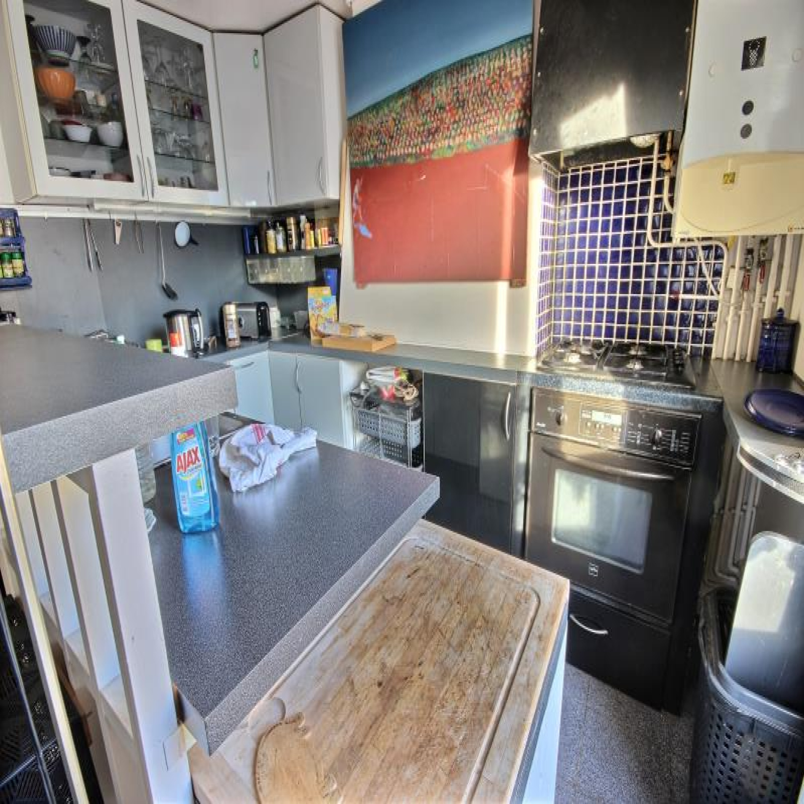 Rue de la Fidélité, dans une copropriété bien entretenue, au 5ème étage AVEC ascenseur, un appartement de 56,10m² au sol dont 58,85m² Carrez, dans esprit "Bohème", très calme et lumineux, Vue dégagée plein SUD. Il se compose d'un séjour de 21m², donnant sur une ancienne ruelle paisible, cheminée, cuisine ouverte sur le séjour, 2 chambres dont une qui est plus un "bureau" (chambres en enfilade pouvant être séparées), une salle de bains avec branchement lave-linge et carrelage, wc séparé avec fenêtre. Poutres apparentes, et nombreux grands placards. Plan modulable, rafraichissement de toute la décoration à prévoir. 1 cave en sous-sol et 1 cagibi au 4ème étage (ancien wc palier devenu privatif) s'ajoutent à ce bien. Gardienne. Proche du métro Château d'Eau et Gare de l'Est. Classe d'énergie D. Copropriété : 121 lots dont 98 lots principaux. Quote-part budget prévisionnel annuel : 2.595 €. Prix affiché honoraires inclus à 3,10% TTC .