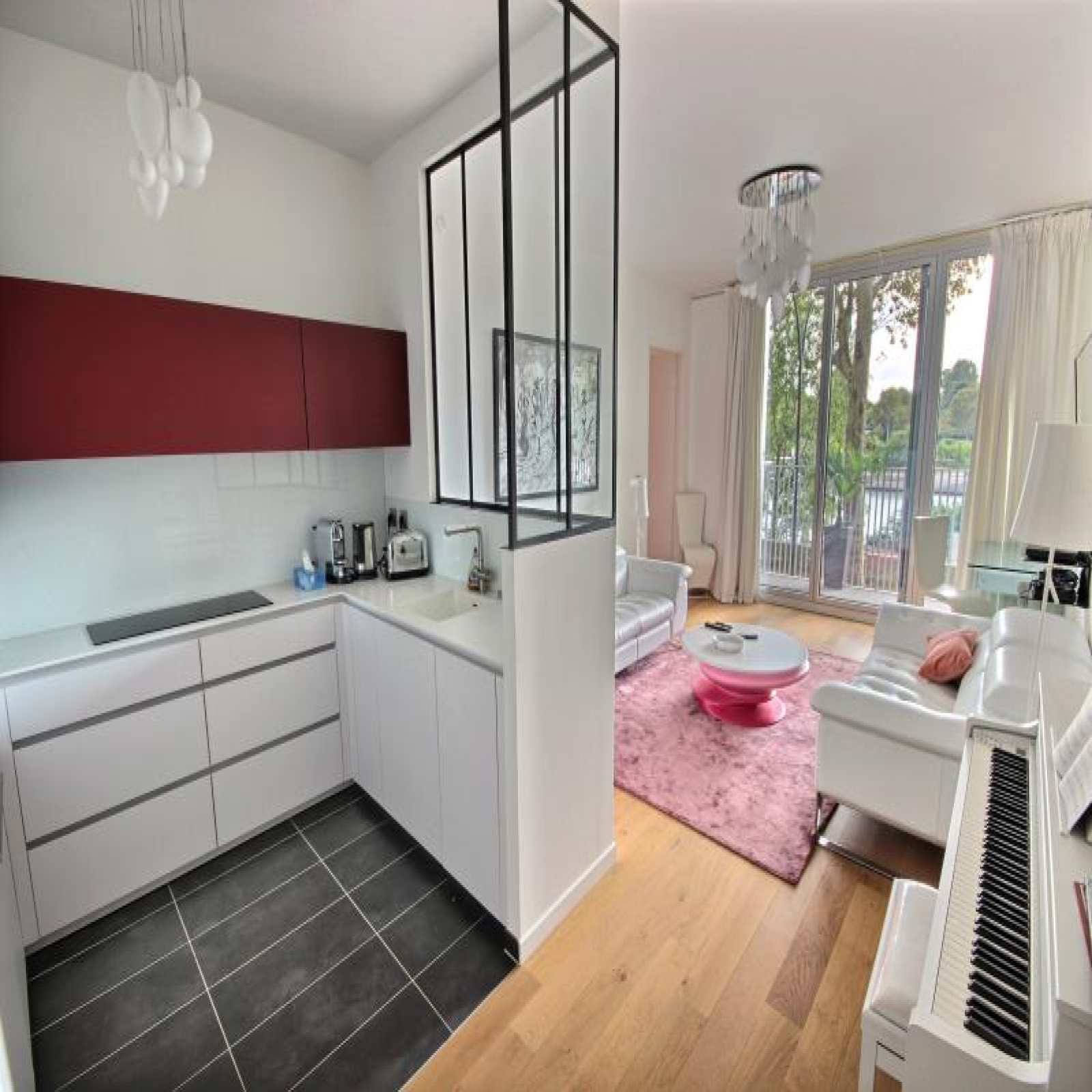 EXCLUSIVITE. Quai Henri IV, Résidence "NOUVELLE VAGUE" de très grand prestige année 2015. Située FACE A LA SEINE, entre Bastille, Le Marais et presqu'en face du Quartier Latin, a été pensée par l'architecte Finn Geibel. Au 1er étage avec ascenseur, surface pondérée de 60m2 soit 57,64m² Carrez + 6m² BALCON SUD VUE SUR SEINE, Lumineux, hauteur sous plafond de 2,75m. L'appartement se compose d'une très belle pièce à vivre, grandes porte-fenêtres, parquet chêne massif, cuisine haut de gamme semi-ouverte avec verrière + carrelage, une spacieuse chambre, avec parquet chêne massif, porte-fenêtres, attenant à une salle de bains avec wc. Une cave complète ce bien. Parking en option d'une valeur de 30.000€. La résidence dispose de 3 jardins. A voir rapidement. Copropriété : 147 lots dont 75 lots principaux. Quote-part budget prévisionnel annuel : 1.740 E. Prix affiché honoraires inclus à 3,10% TTC.