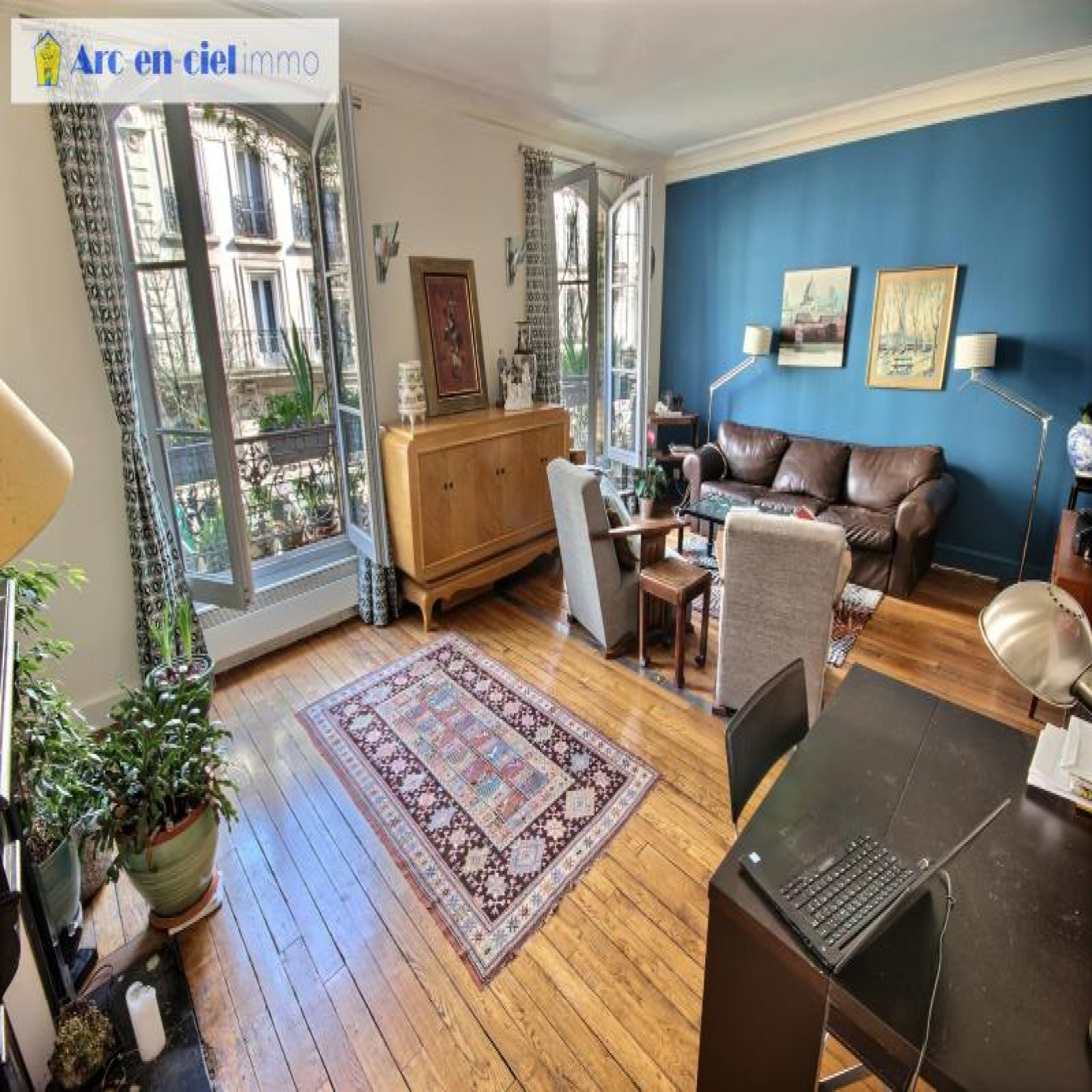 Demie-Exclusivité : A 100m du métro Gambetta, rue calme très agréable et arborée, proche Père Lachaise et tous commerces, dans très bel immeuble Pierre de Taille et brique, au 2ème étage sans ascenseur, ce très beau 2-3 pièces de 47,02m² Carrez, double exposition Est-Ouest, en parfait état avec Parquet, Moulures, Cheminée et 2,60m de hauteur sous plafond, refait à neuf il y a 2 ans. Comprend : une entrée avec porte blindée, un séjour double de 26m² avec 2 fenêtres en arrondis et double vitrage sur rue, grande chambre avec nombreux rangements rationnels sur belle cour très calme et double vitragee, cuisine toute équipée avec fenêtre, salle d'eau et wc séparé avec fenêtre. 1 cave. Copropriété : x lots dont 26 lots principaux. Quote-part budget prévisionnel annuel : 1.860 €. Prix affiché honoraires inclus à 3,12% TTC. Agence Arc-en-ciel Immo à honoraires réduits.