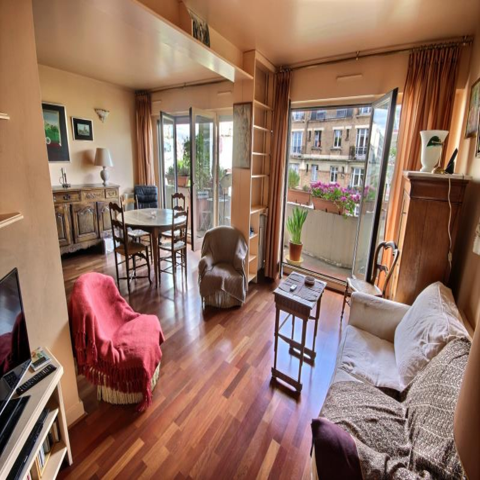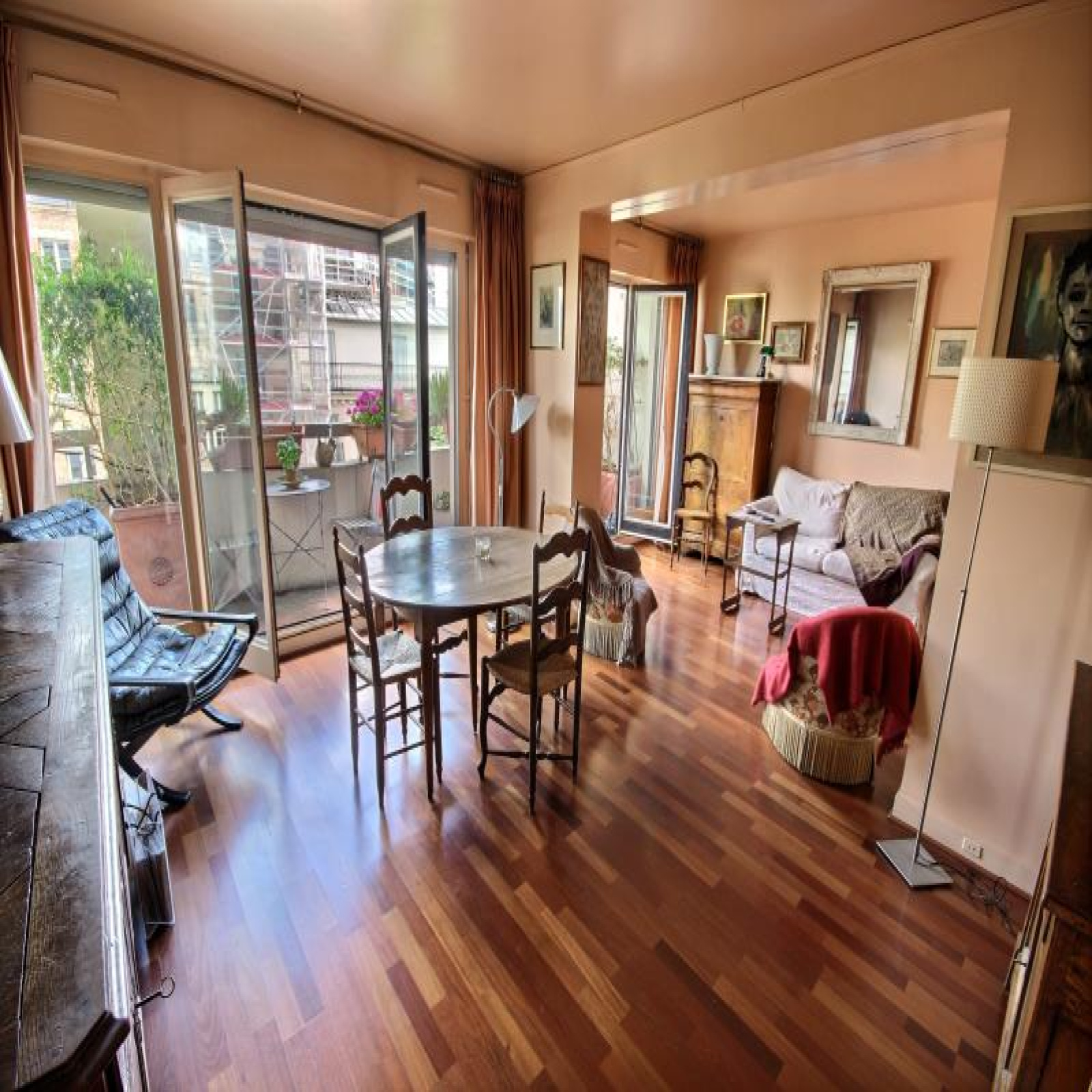 96,65 m² pondérés = 79,36m² habitables + 34,6m² TERRASSE et Balcon (surfaces divisées par 2 pour pondération). Au 6ème étage avec ascenseurs (immeuble de 9 étages) comprenant : entrée avec porte blindée, séjour double de 29m² donnant sur le balcon de 11m² au SUD, vue dégagée, cuisine aménagée, 2 chambres avec chacune sa salle de bains dont 1 avec fenêtre, wc séparé, beaucoup de placards, TERRASSE triangulaire de 23,60m² avec une particularité d'un "patio" mais 1 fenêtre avec vue, possibilité de recouvrir (ancienne véranda). Plan en étoile (entrée qui dessert toutes les pièces), possibilité de moduler le plan. Toute la décoration à refaire mais très beau parquet. Double vitrage et climatisation dans séjour et 1 chambre. 1 cave et 1 grande place de parking pour 2 petites voitures boxable en option 20.000 €. Dans bon immeuble de standing très bien entretenu. Angle Rues Ordener/Championnet/Vauvenargues, proche métros Lamarck-Caulincourt L12 et Guy Moquet L13.~Classe d'énergie C. Copropriété : 480 lots dont 177 lots principaux. Quote-part budget prévisionnel annuel : 3120 €. Prix affiché honoraires inclus à 3,95% TTC.