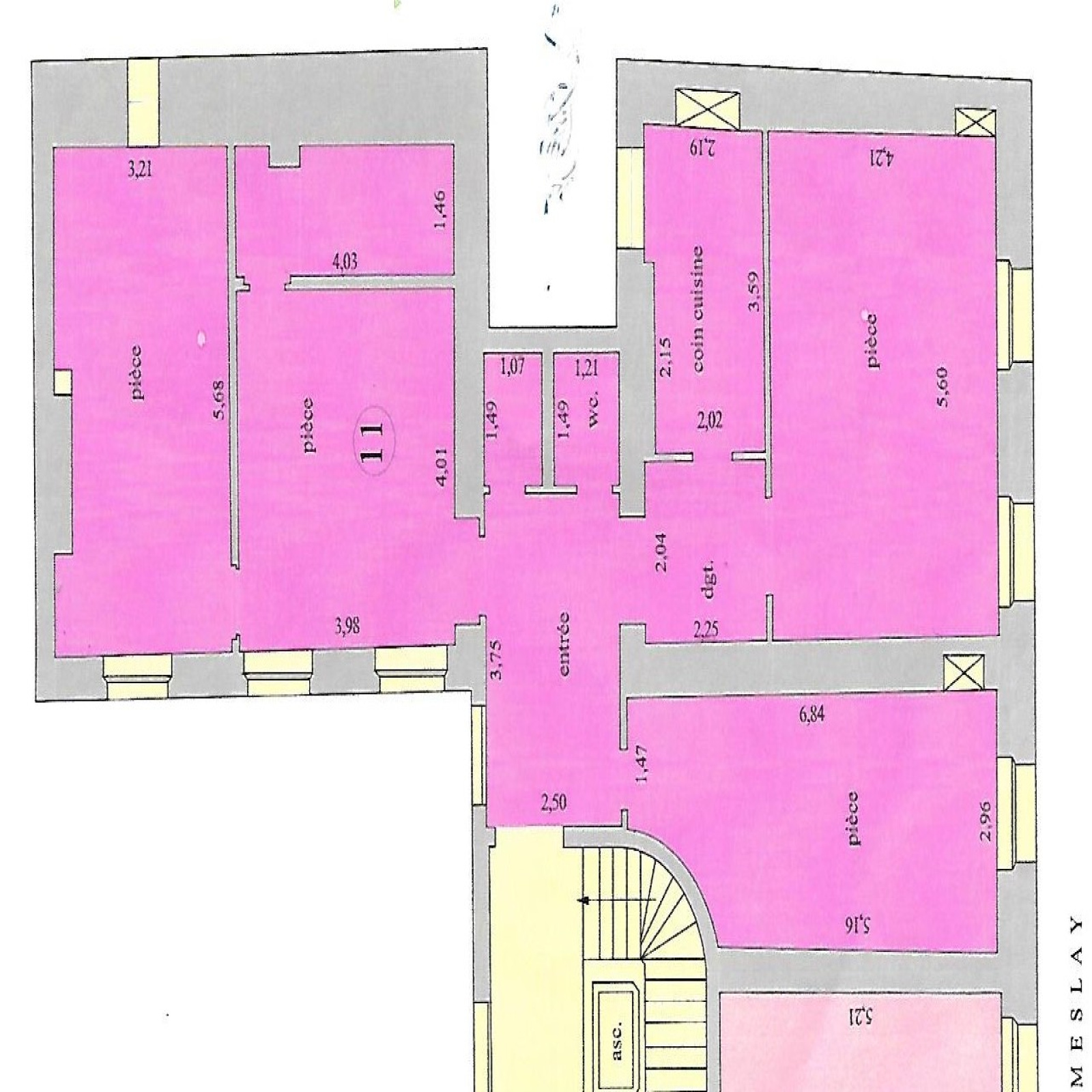 Paris 3, rue Meslay, entre les métros République, Temple et Strasbourg St Denis, au 3ème étage avec ascenseur dans très bon immeuble refait en 2017, un appartement mixte habitation et activité professionnelle (actuellement des bureaux), en parfait état, mais à créer la cuisine et salle de bains, d'une surface de 114,73m² au sol, dont 111,89m² Carrez comprenant : Hall d'entrée de 10m² (pouvant servir de salle d'attente), un grand séjour de 34m² avec 2 fenêtres sur rue au SUD et un espace cuisine (pouvant être refermé avec fenêtre sur cour) ; 3 vastes chambres de 17m² et 2x19m² ; wc séparé, 2 dressings pouvant être transformés en salles de bains. Possibilité aussi de moduler le plan de l'appartement. Idéal pour profession libérale.