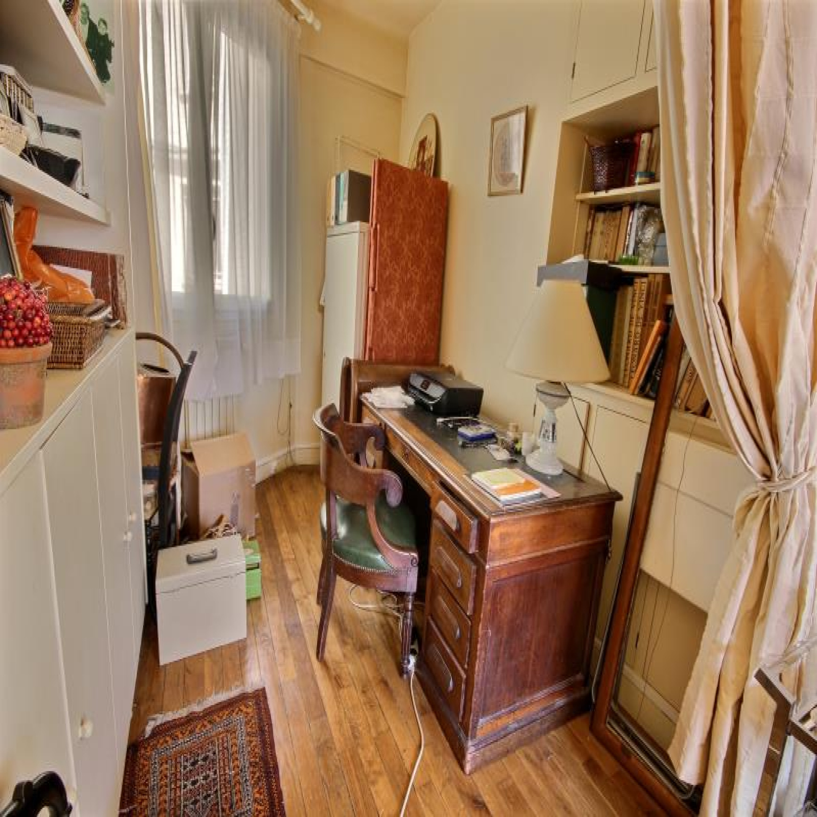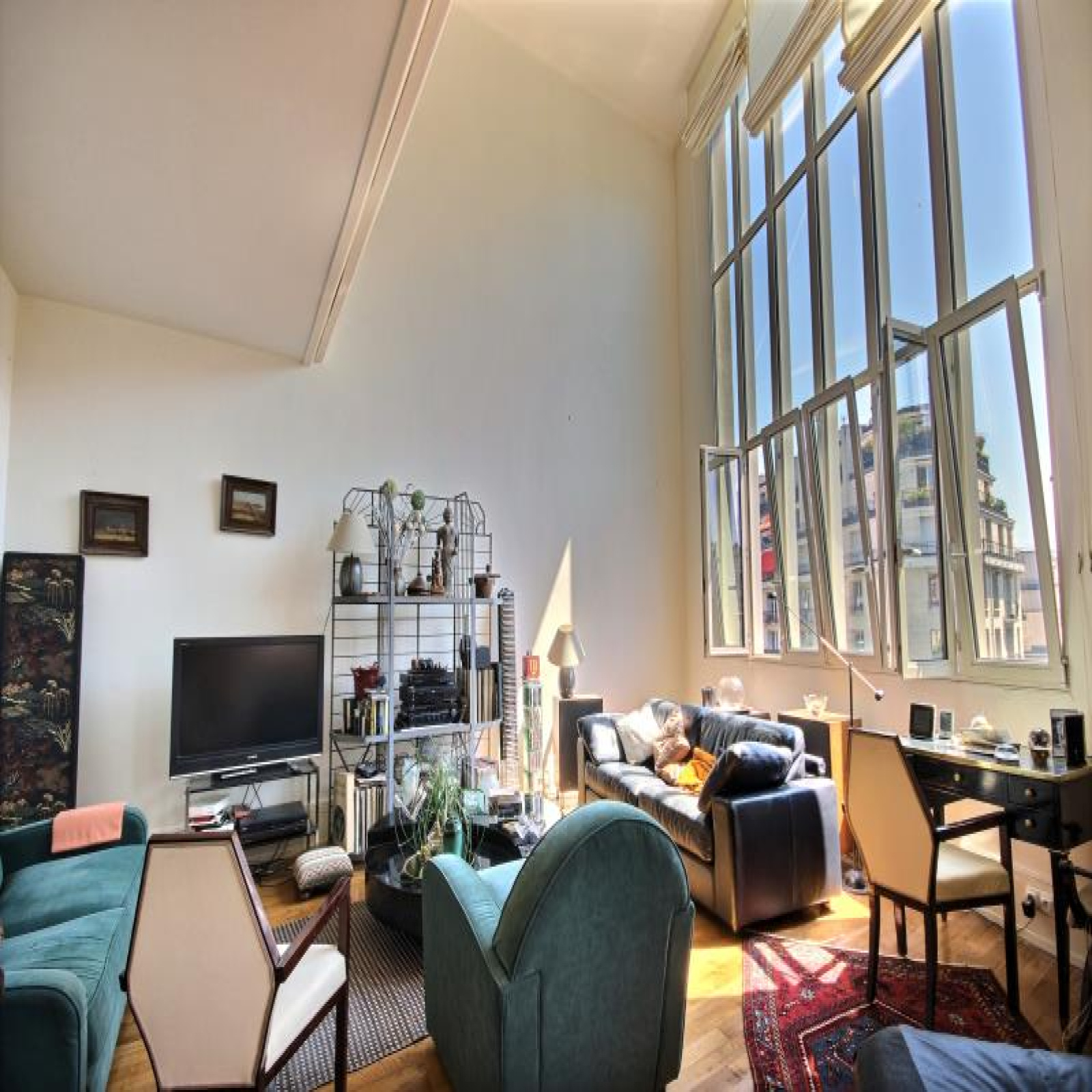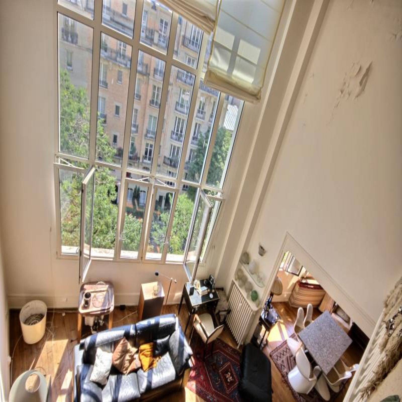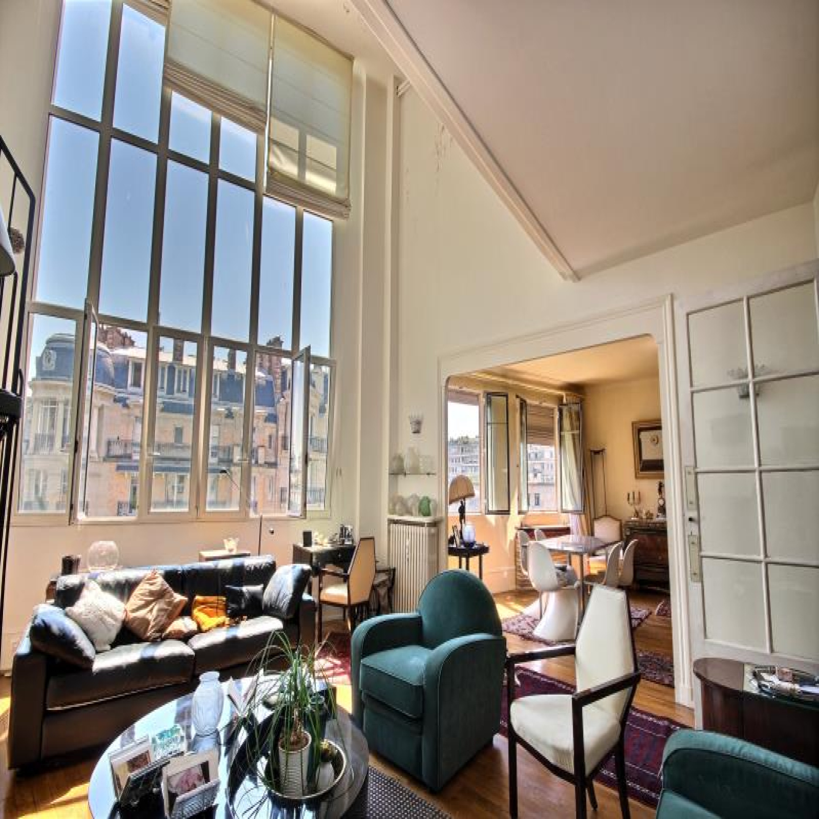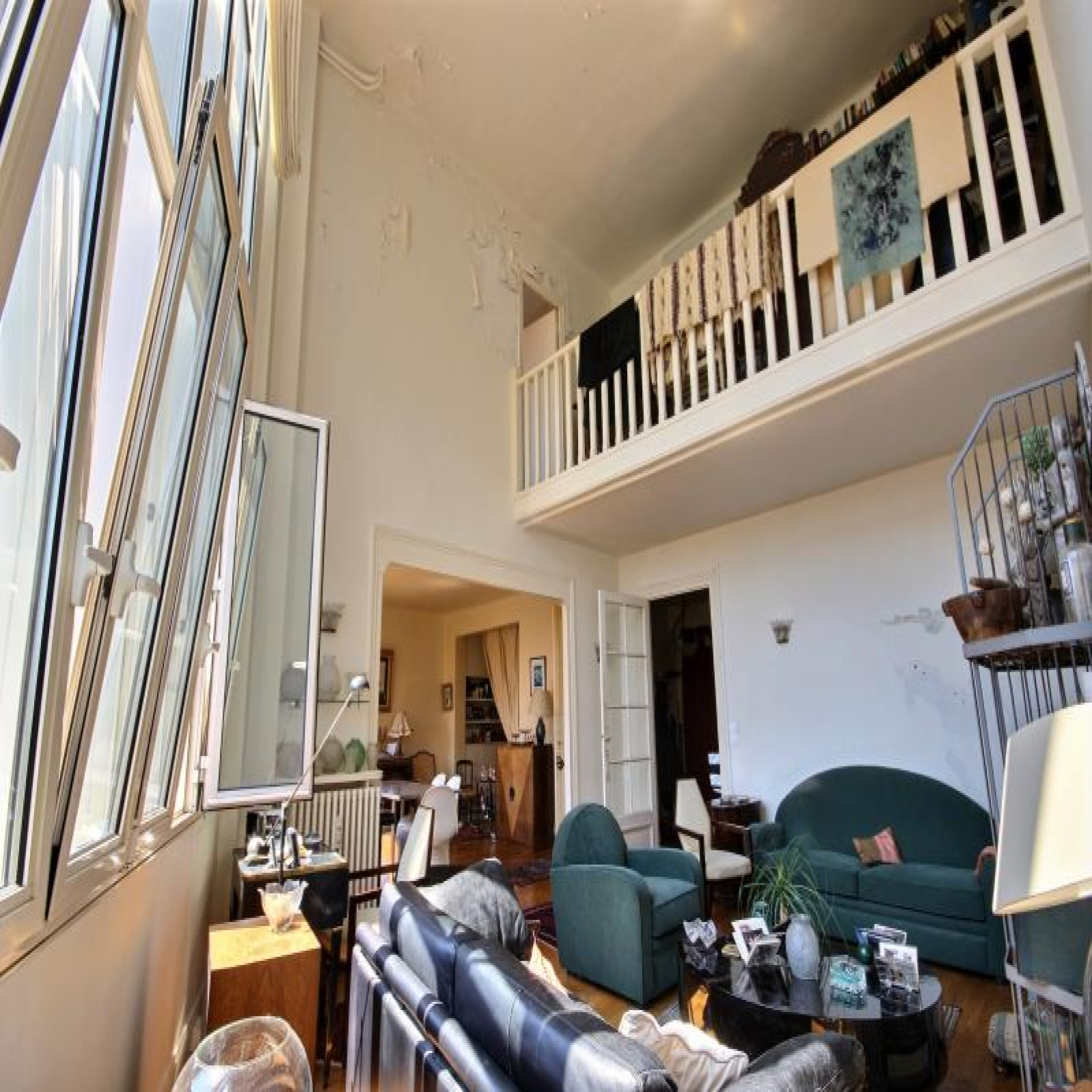 Métro Ranelagh, DUPLEX AVEC VOLUMES au 5ème et 6ème étage. 130,37m² au sol dont 128,32m² Carrez, appartement d'exception avec vue sur verdure de "La petite ceinture" au calme et ensoleillé Sud-Est, plan modulable comprenant : Hall d'entrée avec porte blindée et escalier intérieur avec monte-escalier (asc.), grand rangement, vaste séjour avec presque 6m de hauteur sous plafond et grande verrière (double vitrage et oscillo-battantes de qualité), salle à manger ouverte sur séjour, 1ère chambre-bureau au 1er niveau ouverte sur séjour, cuisine aménagée (ancienne) séparée par cloison du séjour (possibilité d'ouverture) et porte sur escalier de service, wc indépendant avec lave mains. Au 2ème niveau : un bureau en mezzanine (possibilité d'agrandir sa surface), 2 chambres dont 1 grande (à l'origine 2) donc redivisable (2 fenêtres), 2 salles de bains avec chacune une fenêtre et dont 1 avec wc pouvant être séparé. Nombreux placards. A rafraichir entièrement la décoration et sanitaires (une partie des peintures est prise en charge par assurance suite à dégat des eaux). Travaux de copropriété pris en charge par vendeur. Bel Immeuble Art-Déco avec vitraux. Gardienne efficace. 1 cave avec l'appartement et en option 1 place de parking pour 30.000 € (il y aussi une chambre de service que les vendeurs se gardent pour l'instant). ~Classe d'énergie : D. Copropriété : 74 lots dont 49 lots principaux. Quote-part budget prévisionnel annuel : 7.188 €. Prix affiché honoraires inclus à 3,03% TTC.