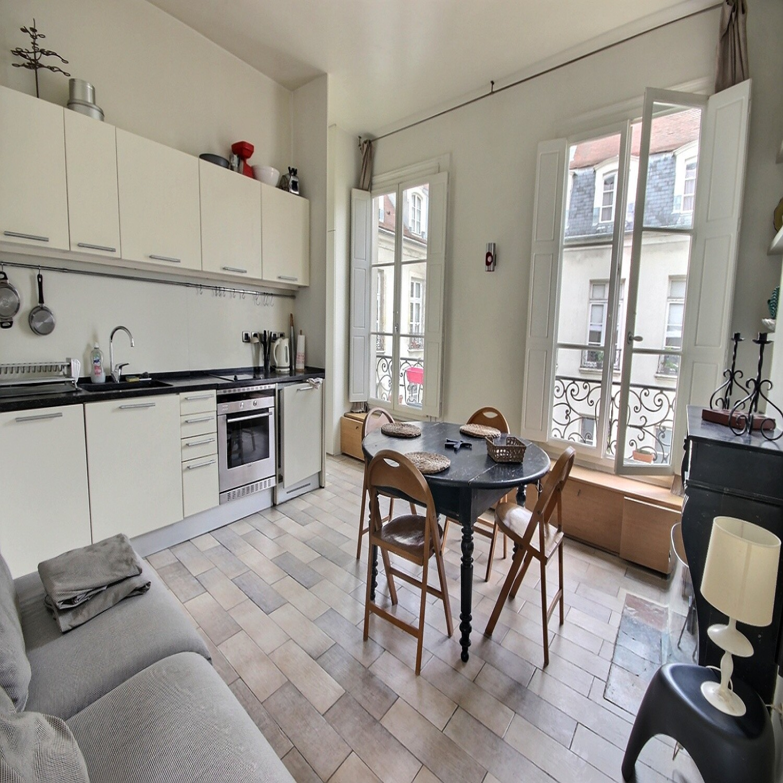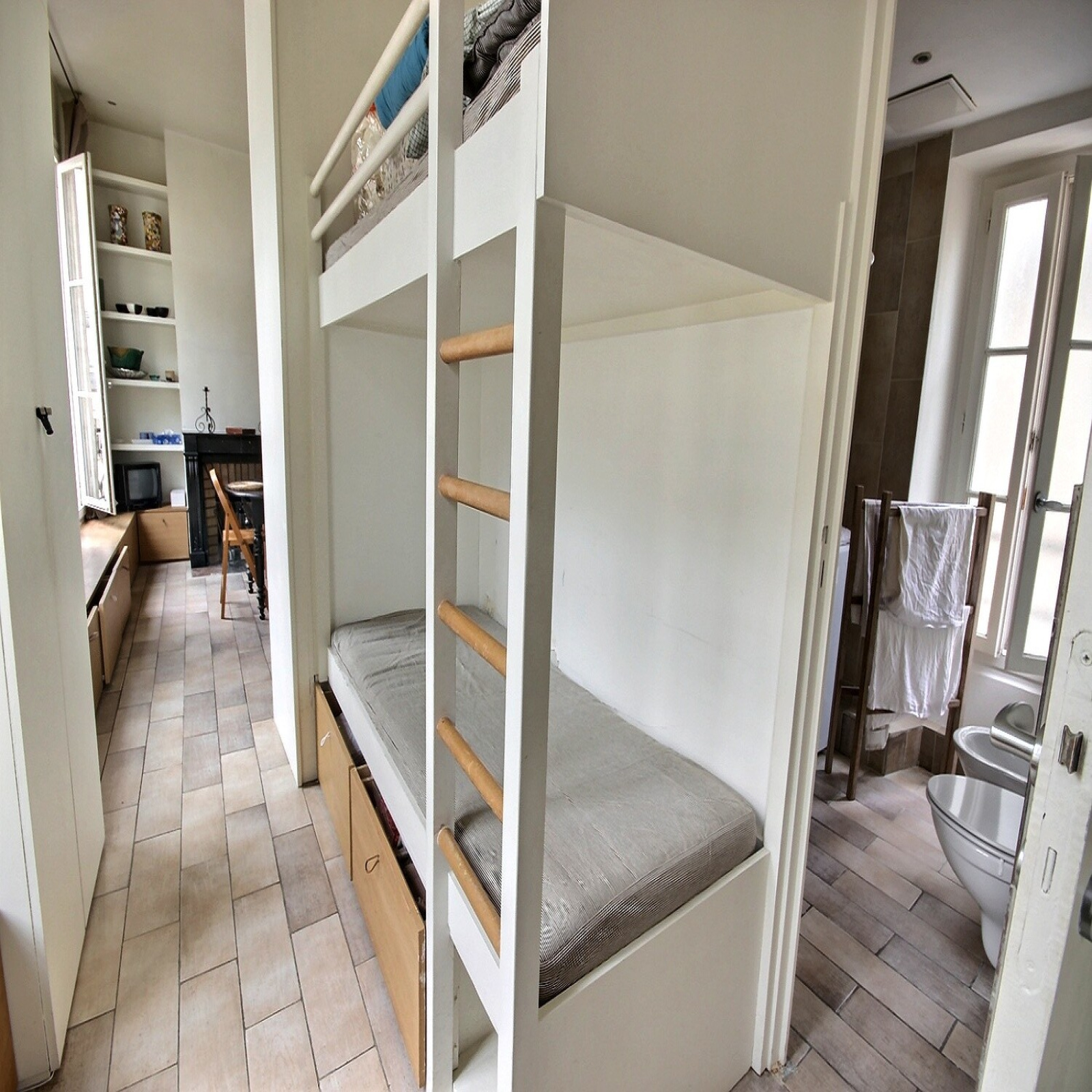 Métros St Paul, Sully Morland et Pont Marie, rue Saint Paul proche tous commerces, spacieux studio de 30m² au sol dont 28.08m² Carrez. CALME TRAVERSANT au 3ème étage sans ascenseur dans superbe immeuble Pierre de Taille 1730 avec escalier prestigieux. VUE SUR GRAND JARDIN INTERIEUR ARBORE, double exposition sur rue calme. Composé d'une entrée avec 2 lits superposés d'appoint, séjour spacieux lumineux avec 3m hauteur sous plafond, cheminée, volets intérieurs en bois, nombreuses hautes fenêtres en double vitrage, cuisine ouverte entièrement équipée dont lave-vaisselle, salle de bains avec fenêtre, lave-linge, bidet et wc. Très nombreux rangements. 1 très grande cave voutée avec porte en fer.