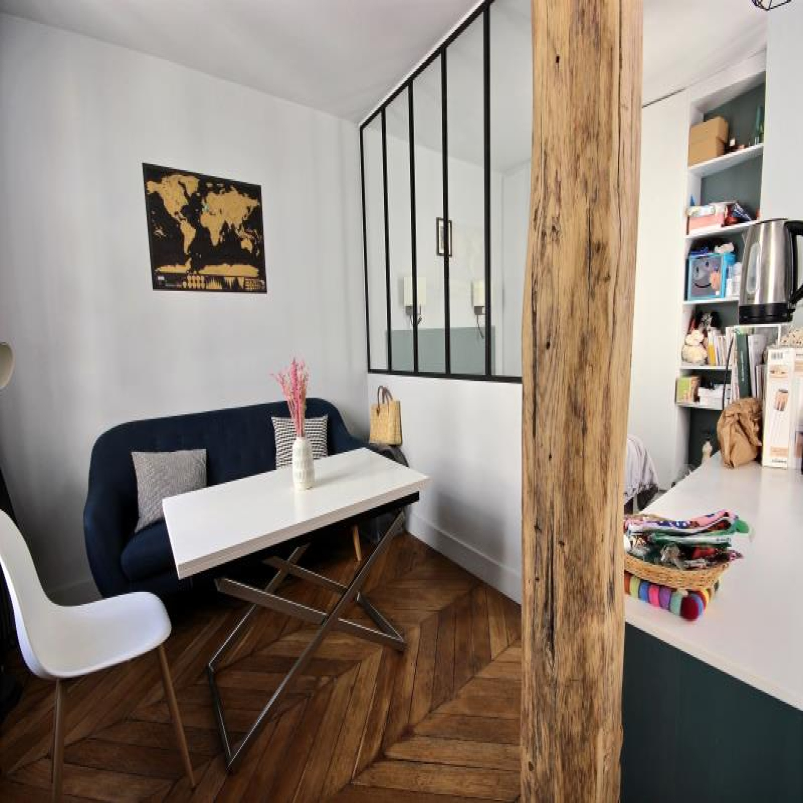 REPRISE DES VISITES DEPUIS 28/11/2020 :~Village Ramey, côté au pied de la Butte Montmartre. EXCEPTIONNEL 2 pièces de 26.03m² Carrez au 4ème DERNIER ETAGE dans bâtiment cour au calme, très lumineux, à multiples expositions avec de nombreuses fenêtres. TRES BON ETAT AU LOOK CONTEMPORAIN. Composé d'une entrée avec fenêtre desservant salle d'eau et wc, cuisine ouverte au centre de l'appartement, séjour avec poutres apparentes et beau parquet, espace chambre séparée du séjour avec mur et paroi vitrée look industriel, cloison minimaliste épurée, avec pan mural entier placards et dressing. 1 cave.~Copropriété : 48 lots dont 24 lots principaux. Quote-part budget prévisionnel annuel : 972 E. Classe d'énergie vierge. Ideal pour Investisseur ou Primo-Accédant. Prix affiché honoraires inclus à 3.82% TTC.