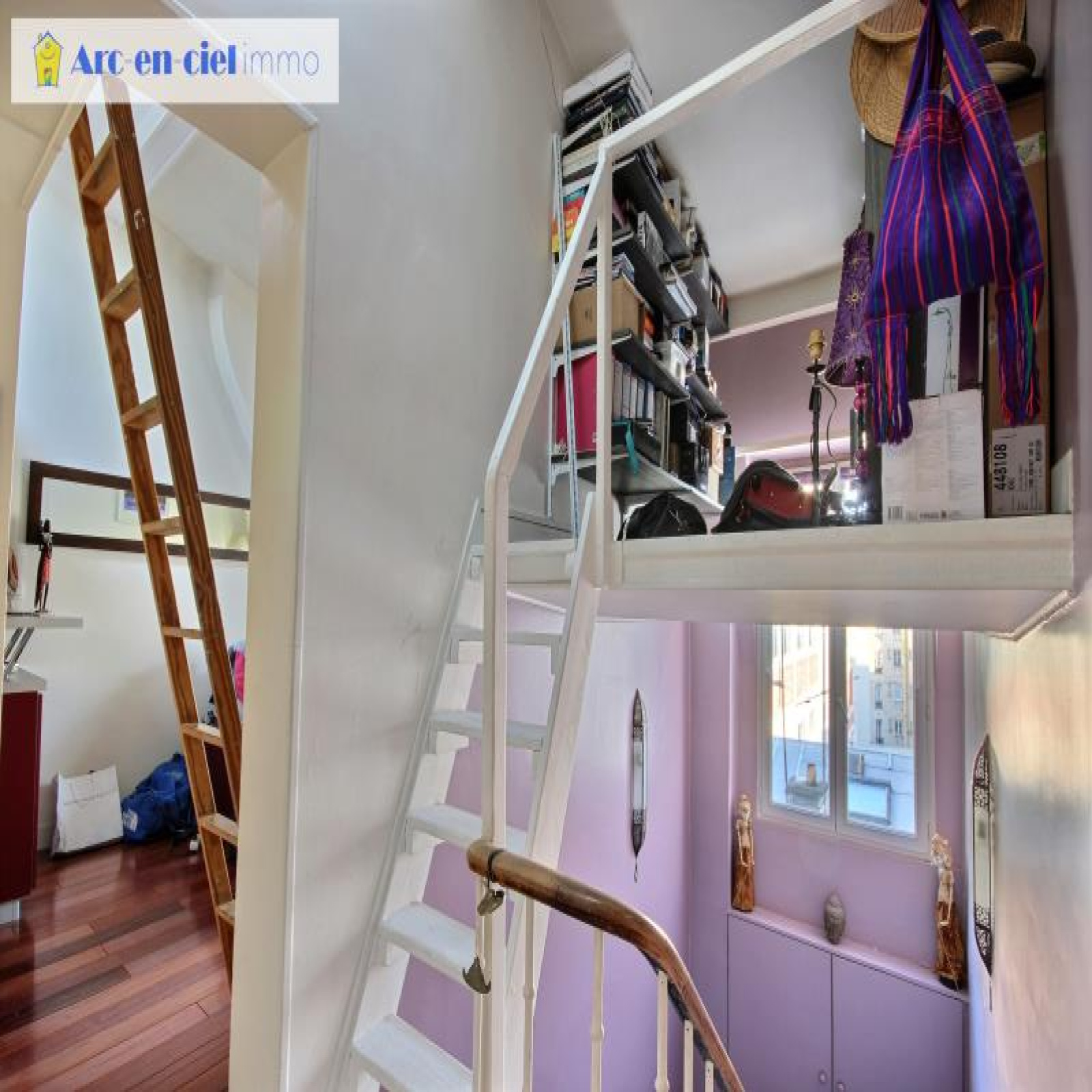 Entre les métros Jules Joffrin L12 et Simplon L4, Rue Baudelique Paris 18è, petite rue sympathique pour appartement atypique de 58m² au sol, dont 36m² Carrez soit 47m² pondérés au 6ème et dernier étage sans ascenseur en DUPLEX, plan modulable et évolutif, beaux volumes (combles récupérés officiellement). Entrée privée avec porte blindée au 5ème étage avec mezzanine pouvant servir de bureau, Séjour à l'Ouest, très ensoleillé et sans vis à vis direct sur rue avec 2 portes fenêtres double vitrage oscillobattantes et volets solaires, donnant sur des petits balconnets et vue sur le Sacré Coeur, mezzanine "boudoir" ou couchage d'appoint, Cuisine ouverte entre les 2 pièces (pouvant être refermée), grande Chambre sur cour calme à l'Est et sans vis à vis, avec grand couchage en mezzanine avec velux (possibilité d'inverser les 2 pièces, ce qu'a fait l'occupant actuel), Belle salle de bains avec "verrière" et vrai wc. Nombreux placards de rangement, 1 cave en jouissance. EN PARFAIT ETAT. Prévoir travaux cage d'escalier. Faibles charges. Classe d'énergie F. Petite Copropriété: 39 lots dont 18 lots principaux. Quote-part budget prévisionnel annuel : 1956 E. Prix affiché honoraires inclus à 2,33% TTC.