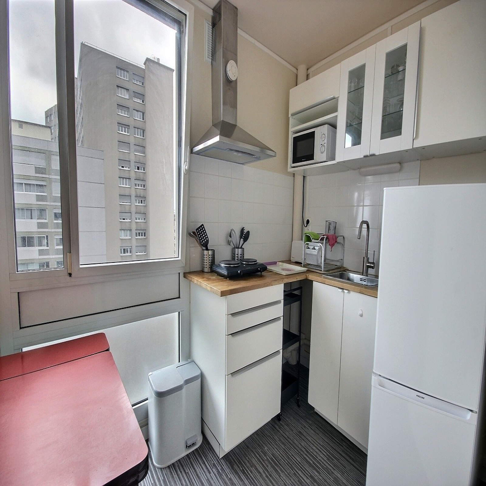 Beau 2 pièces RATIONNEL en parfait état de 40m² au sol au 10ème étage avec ascenseur et une vue panoramique sur Paris. Comprenant : entrée, beau séjour, chambre avec placard, cuisine équipée, salle d'eau avec place pour machine, wc. Possibilité de rachat des meubles. Au métro Ménilmontant, dans grande résidence avec parc. Idéal 1er achat ou investisseur. 1 cave complète ce bien.