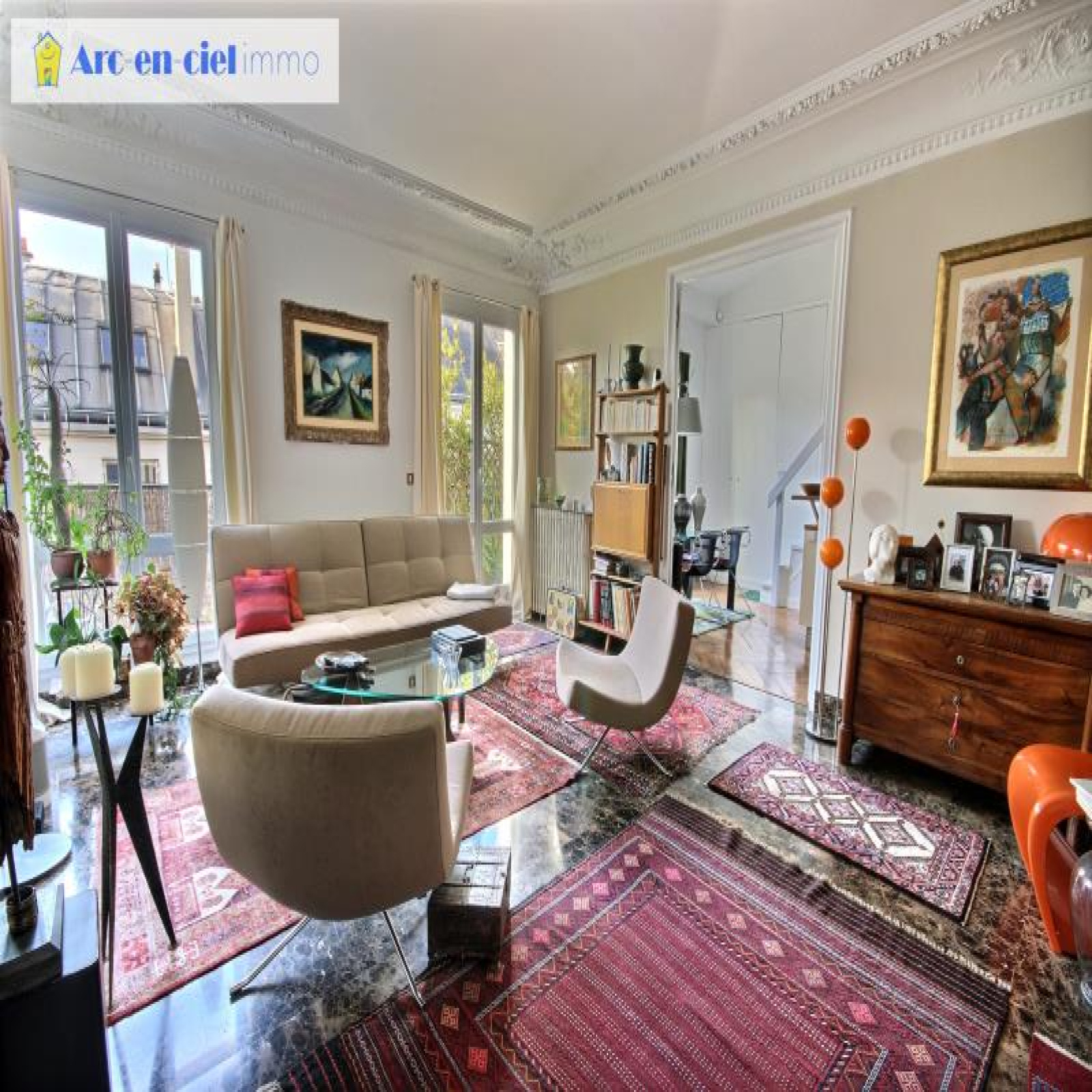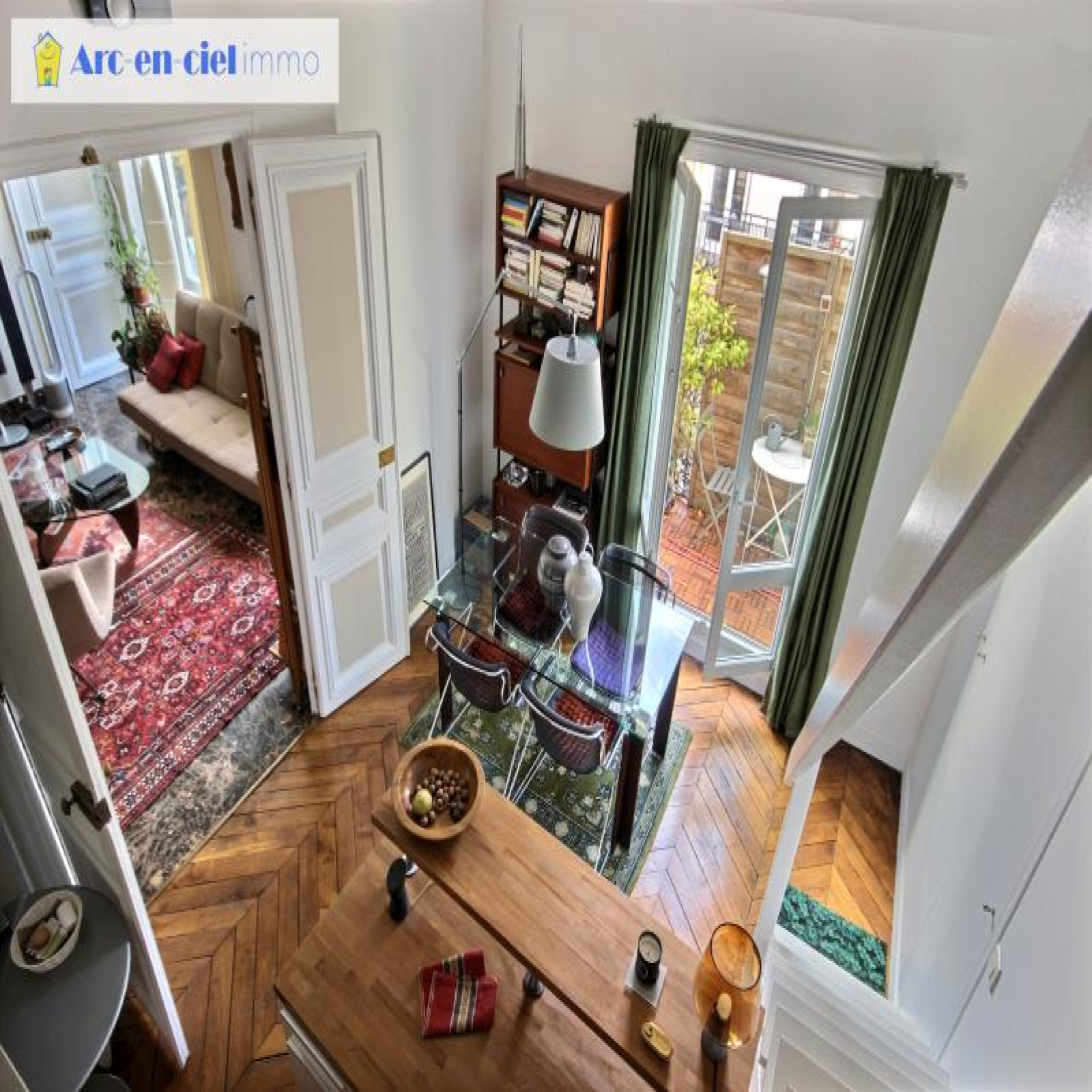 DUPLEX de 4 pièces de 94,02m² au sol, dont 81,01m² habitables à plus de 1,80m de hauteur (MEZZANINE de 20,24m² au sol dont 7,67m² à plus de 1,80m de hauteur non Carrez). 5ème et DERNIER ETAGE AVEC ASCENSEUR ET BALCON-TERRASSE 12m² EXPOSÉ OUEST DANS SUPERBE IMMEUBLE PIERRE DE TAILLE Napoléon III. Quartier Nouvelle Athènes, Rue Blanche (niveau rues La Bruyère / Moncey) entre les métros Liège - St Georges - Trinité et Blanche. Sectorisation Condorcet. Espace atypique et non conventionnel. Distribution des pièces : Hall d'entrée de 8,80m² avec fenêtre et placard ouvert sur Vaste séjour "carré" de 27m² et 2,90m de hauteur sous plafond, donnant sur le balcon-terrasse (largeur de 1,15 à 1,30m), très ensoleillé, communiquant (simple cloison) avec la salle à manger de 20m² et une hauteur sous plafond de 2,90m à 4m, comprenant une cuisine ouverte toute équipée ; 1 chambre / bureau en mezzanine ouverte avec velux et lit sur podium et nombreux placards avec une hauteur sous plafond de 1,60m à 2,10m et 20,24m² au sol dont 7,67m² à plus de 1,80m de hauteur non Carrez ; 2ème chambre de 11,17m² et 2,75m de hauteur sous plafond (faux plafond) ; salle d'eau (possibilité de mettre baignoire) et WC "séparé" avec fenêtres. Chauffage individuel au gaz (chaudière neuve) ; double vitrage ; sol en marbre Italien (entrée et salon) et en parquet pointe de Hongrie (salle à manger et cuisine) ; parquet exotique dans salle d'eau ; belles moulures dans séjour ; grand volume dans salle à manger ; ravalement cage d'escalier voté à charge vendeurs ; 1 belle cave. Très Bon état général. Bonne copropriété. Faibles charges. Bref, bien atypique et trop rare. Copropriété : X lots dont 79 lots principaux. Quote-part budget prévisionnel annuel: 2.080 €. Prix affiché honoraires inclus à 3,02% TTC. Arc-en-ciel Immo, Agence à honoraires réduits.