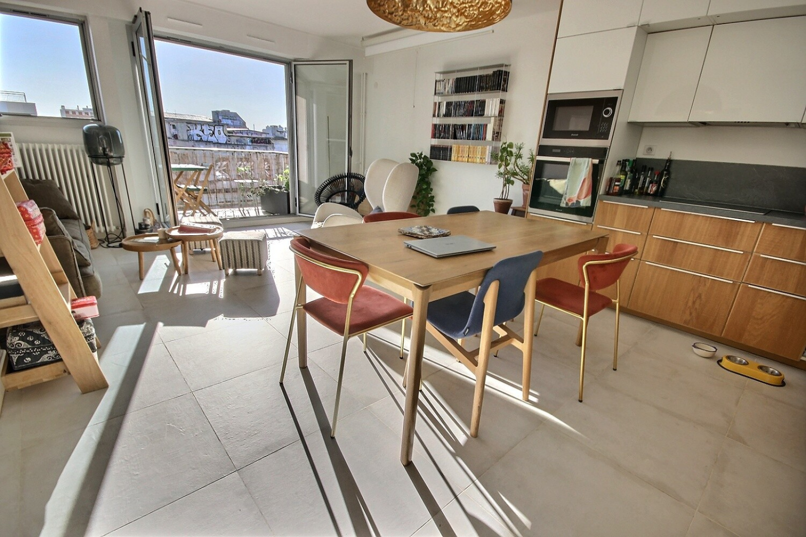 Paris 20ème limite 11ème, proche Nation, entre les métros Avron et Alexandre Dumas, Bd de Charonne, dans bon immeuble de standing de 1976, au 8ème étage avec VUE PANORAMIQUE double exposition EST-OUEST (Tour Eiffel, Sacré-Coeur, La Défence, Panthéon, sommet des arbres du Père Lachaise, etc.) avec ascenseur, RATIONNEL appartement de 82,91m² pondérés, dont 78,21m² Carrez + 13,92m² de balcons/3, comprenant : Entrée porte blindée ; Séjour avec cuisine d'angle en pan mural semi-équipée de qualité de 27,50m² + balcon très ensoleillé à l'OUEST ; Chambre Suite Parentale de 12,50m² avec rangements, balcon et salle d'eau avec fenêtre, triple-vitrage ; dégagement qui dessert 2 autres chambres de 11m² avec balcon à l'Est sur jardin, salle d'eau avec lave linge et wc séparé. Le tout en parfait état, refait entièrement à neuf, il y a 6 ans. Ce bien comprend 1 cave.