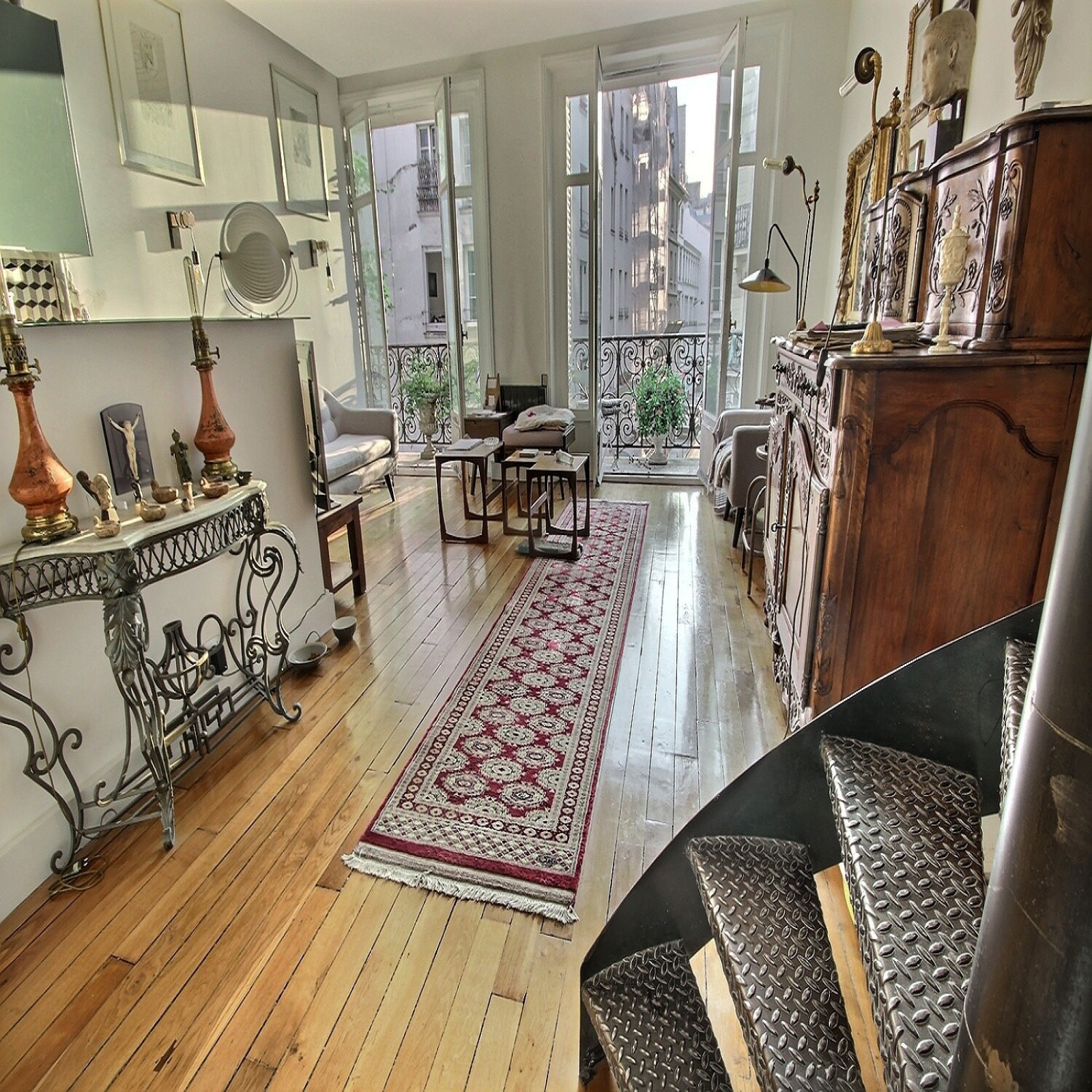 Au coeur du quartier Montorgueil, rue Montmartre, venez découvrir ce magnifique DUPLEX avec BALCON au sein d'un très bel immeuble PIERRE DE TAILLE, au 2ème étage avec ascenseur. Cet appartement de 2 pièces d'une superficie de 57m2 pondérés soit 55.06m² Carrez + balcon pondéré à 1/3, se compose, au premier niveau d'un grand séjour avec parquet en chêne massif et d'une belle hauteur sous plafond, ouvert sur le balcon face à une petite rue qui dégage la vue, une cuisine américaine équipée moderne. L'étage dispose d'une grande chambre avec un espace bureau, un dressing aménagé, un wc indépendant ainsi qu'une salle d'eau avec fenêtre. Vous serez séduit par ses volumes, sa luminosité et son style contemporain. Une cave complète ce bien rare sur le marché.