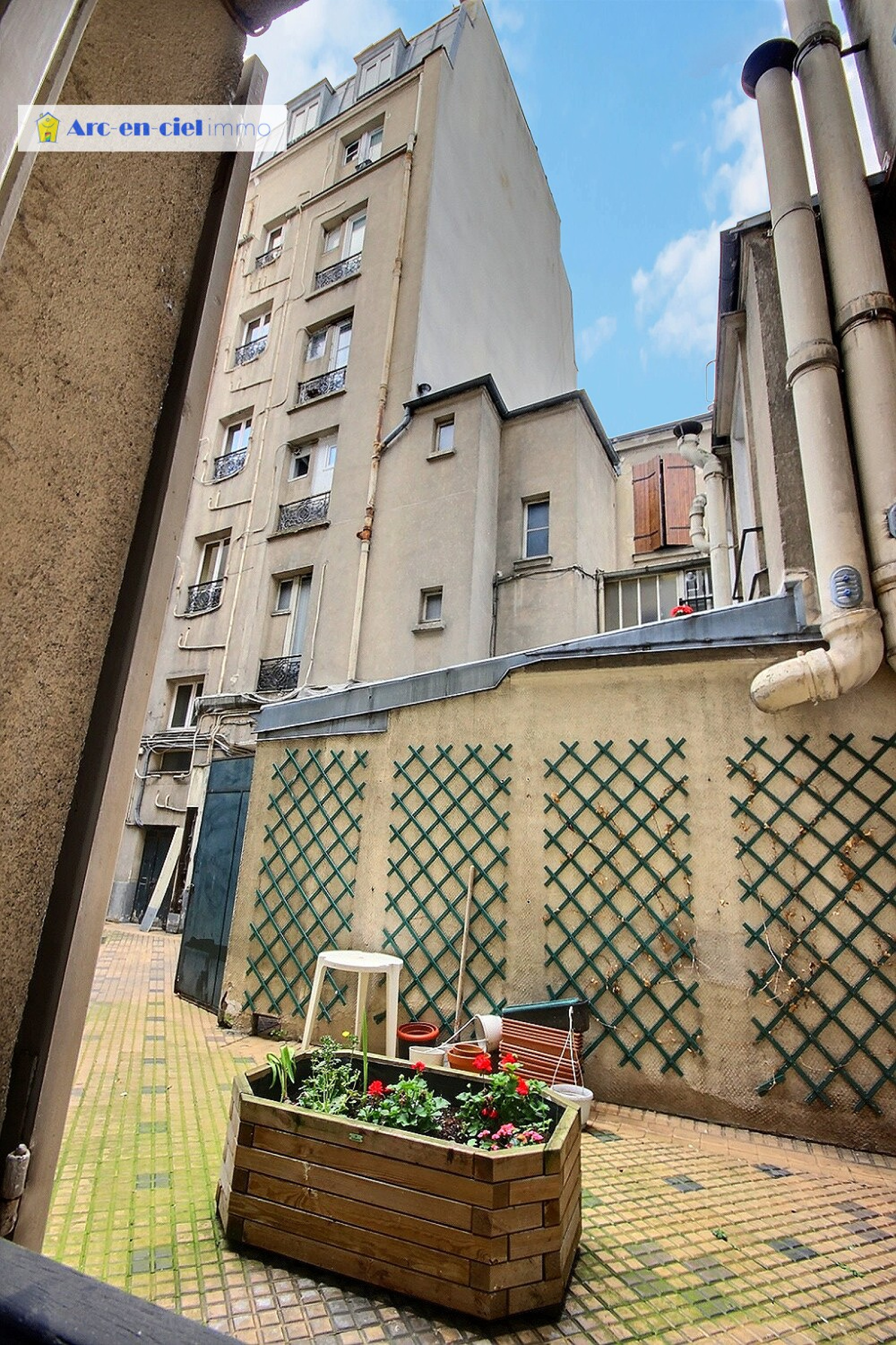 Entre les métros La Chapelle et Marx Dormoy, sur cour calme à l'Ouest ensoleillé, en rez-de-cour, studette rationnelle de 16m² au sol dont 15,49m² Carrez, comprenant entrée, séjour avec belle hauteur sous plafond, petite cuisine aménagée, salle d'eau avec vrai WC, nombreux rangements, chauffage individuel gaz (chaudière neuve), 1 Cave en option pour 5.000 €.