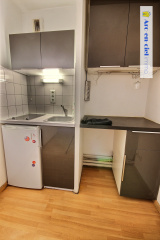 Paris11, métro Bastille, Passage Thiéré dans petite résidence 1998 "Le Patio Bastille" de 4 étages avec service buanderie intégré à disposition des résidents, VENDU OCCUPE AVEC BON LOCATAIRE (nous avons un 2ème studio dans l'immeuble vendu vide) loué vide de meuble bail depuis 06-07-2023 pour 3 ans 700.26€ Charges Comprises dont 75€ de provision pour charges, soit 625.26 € Hors Charges. studio au 1er étage avec ascenseur de 21.34m² habitable. Composé d'une entrée desservant pièces principale sur cour arborée dégagée avec espace couchage idéal dans sa configuration, coin cuisine en pan mural (meubles hauts et bas, plaque vitro, réfrigérateur neuf ; salle d'eau avec douche portes coulissantes, vasque avec miroir appliques, et wc.