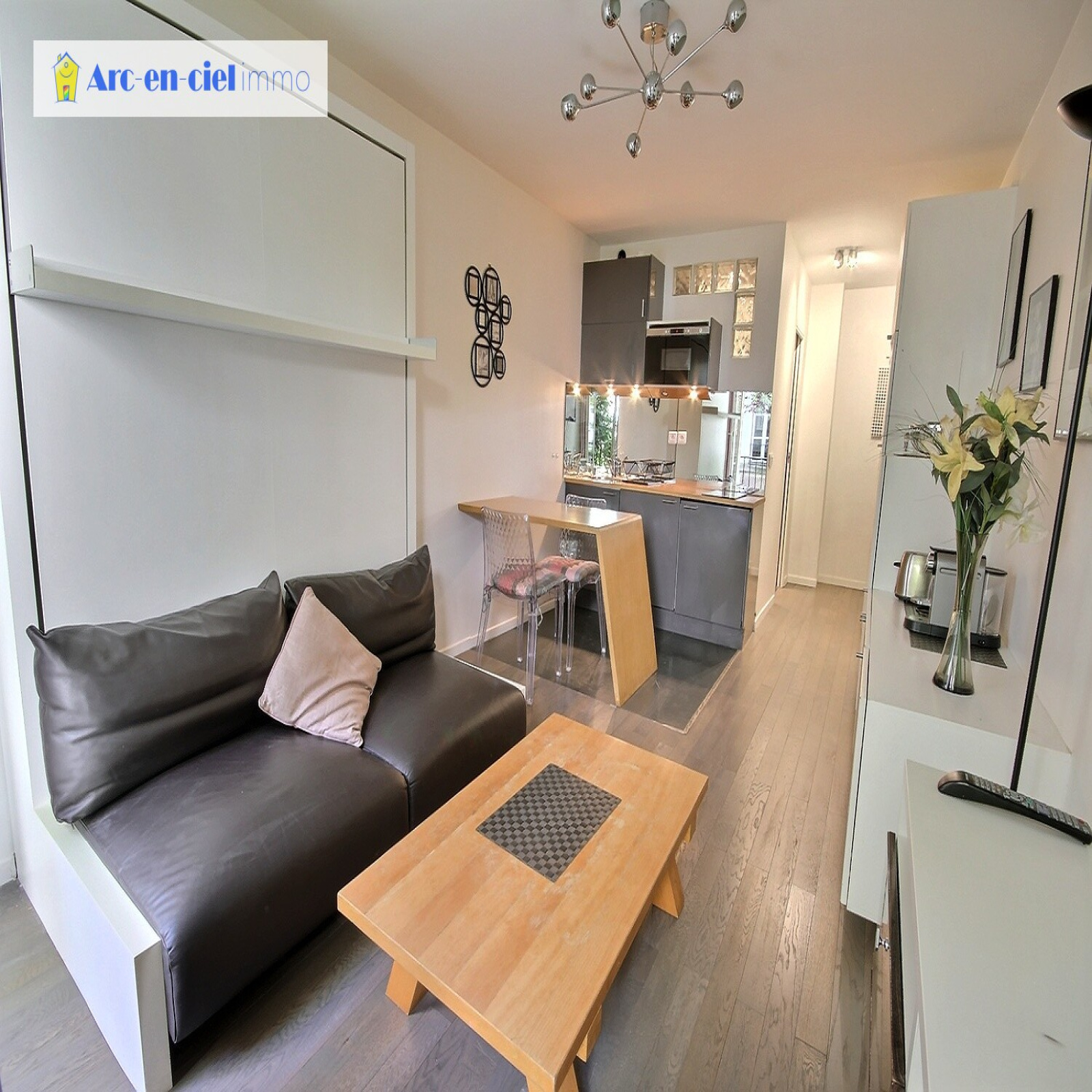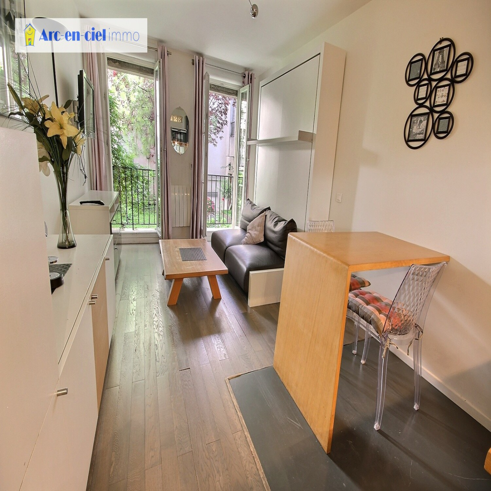Paris 4, Place Saint Paul, dans immeuble standing, magnifique et rationnel studio de 25m² (24.58m² Carrez) + BALCON SUR JARDIN INTERIEUR au 1er étage avec ascenseur (entresol sur jardin). Façade de l'immeuble classée et superbe, mais l'immeuble a été entièrement réhabilité moderne et de haut standing. Sur le bâtiment jardin le studio est composé d'une entrée avec rangements multiples, pièce principale avec deux portes fenêtres sur balcon, cuisine équipée sur pan mural avec espace dînatoire fixe (meubles hauts et bas, plaque vitro, four, réfrigérateur, lave-linge, vaisselle), salle d'eau contemporaine et wc. Volets roulants electriques, Tout confort. Très bon état général.