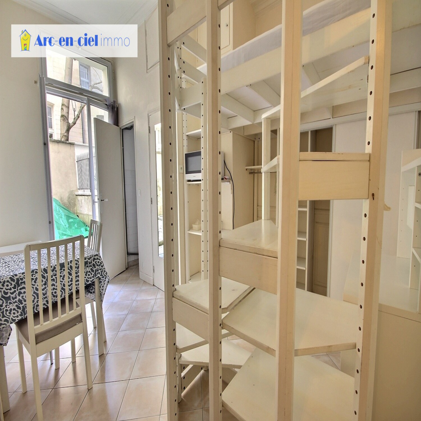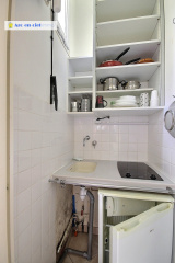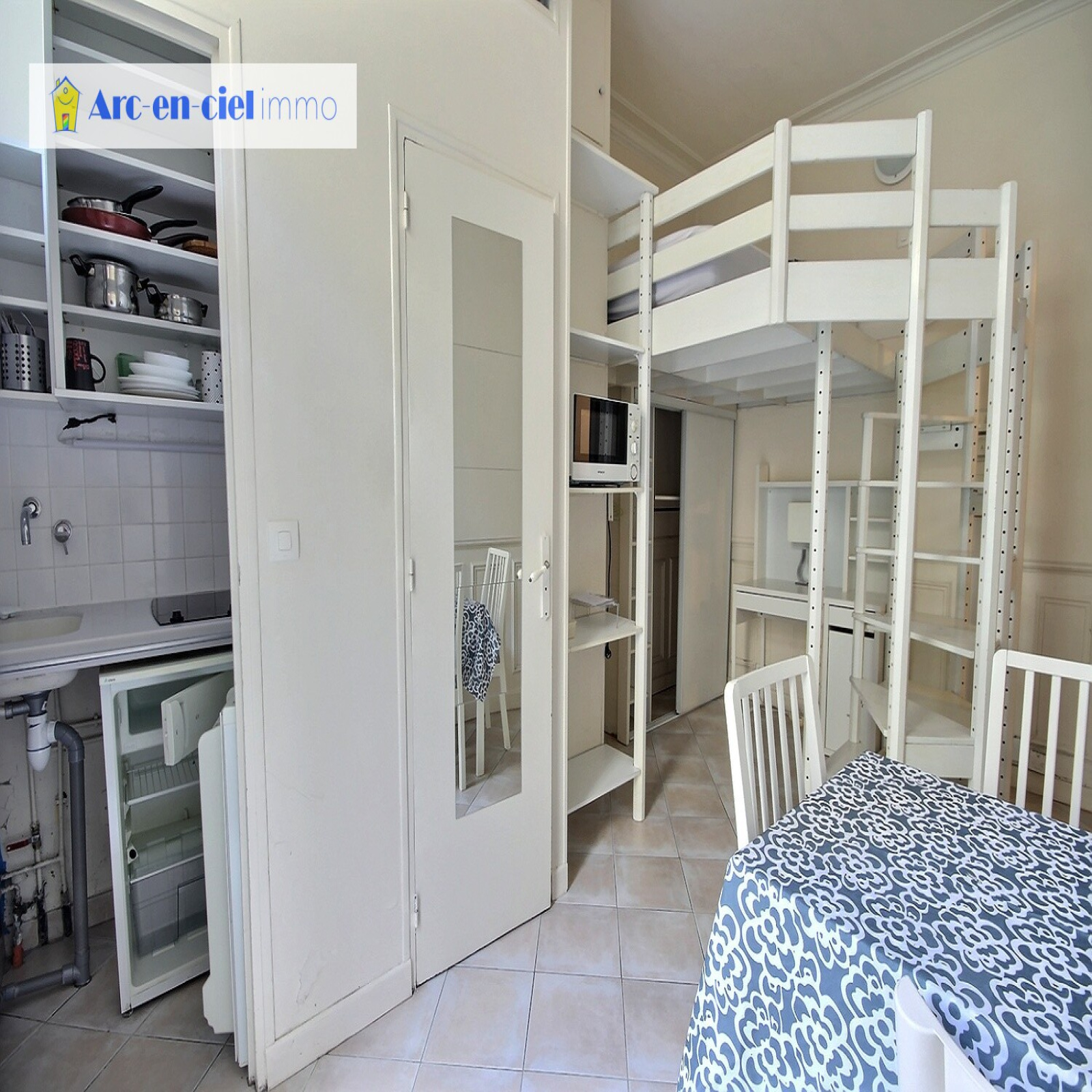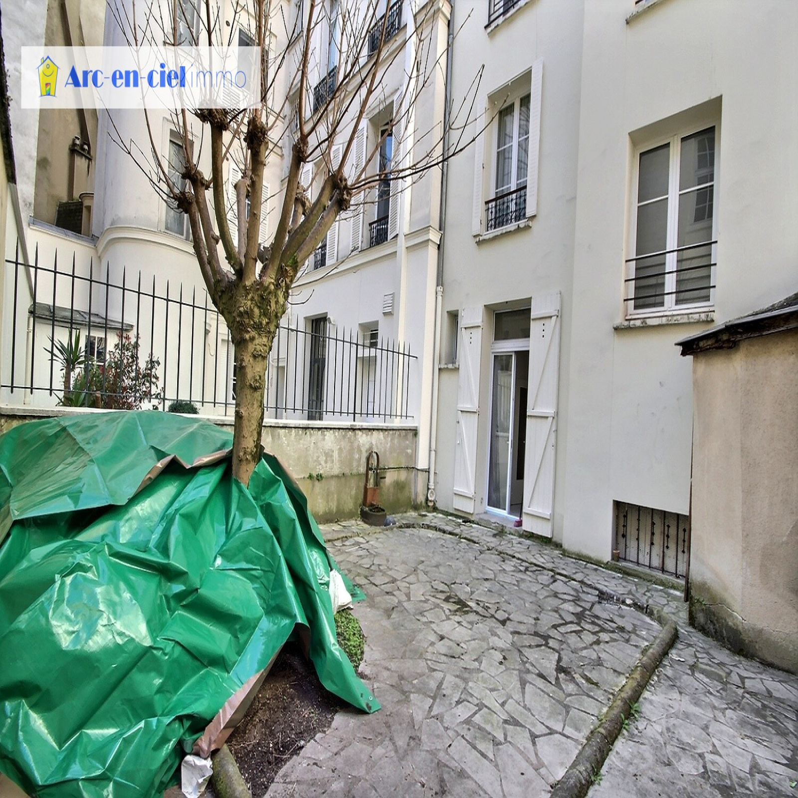 Studio de 15m² avec grande cour à jouissance exclusive au SUD, dans bel immeuble bien entretenu, au rez-de-chaussée. Grande hauteur sous plafond, lit en mezzanine, kitchenette fermée avec petite fenêtre, salle d'eau avec WC.