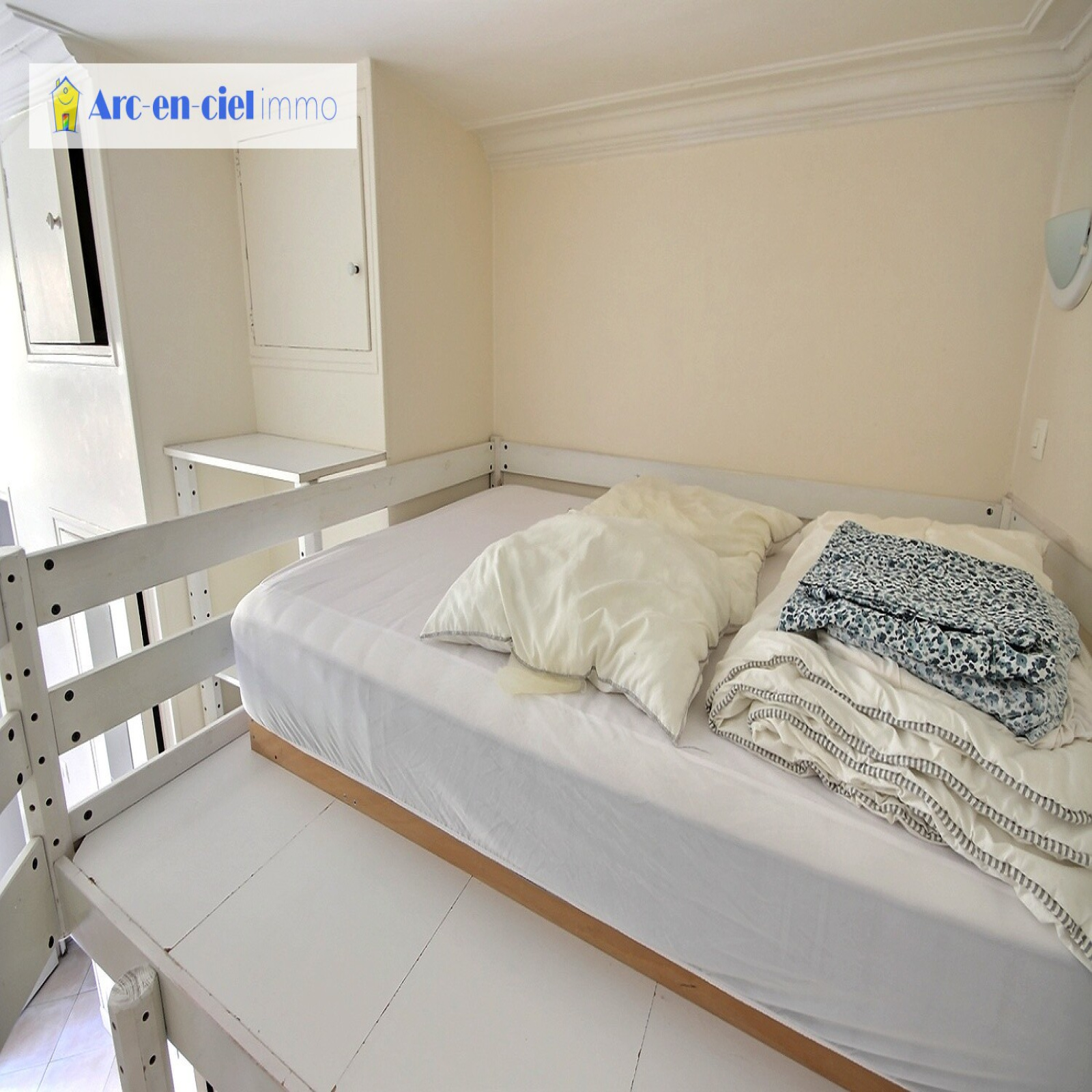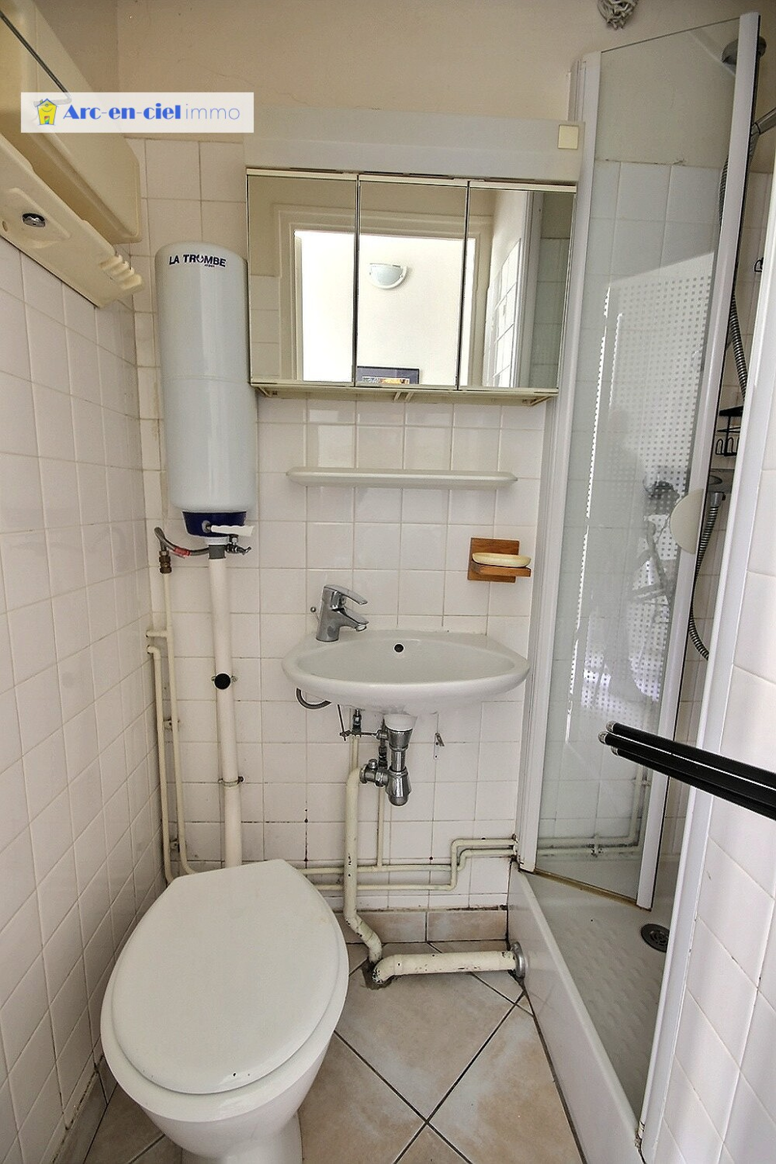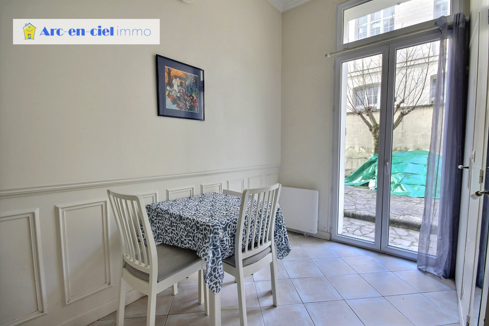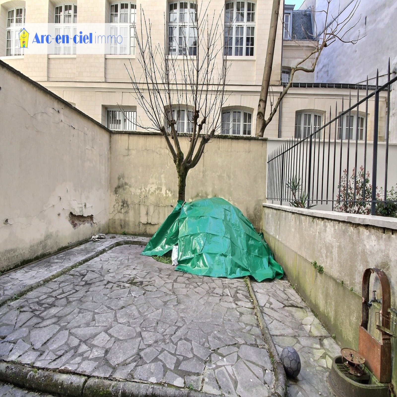 Studio de 15m² avec grande cour à jouissance exclusive au SUD, dans bel immeuble bien entretenu, au rez-de-chaussée. Grande hauteur sous plafond, lit en mezzanine, kitchenette fermée avec petite fenêtre, salle d'eau avec WC.