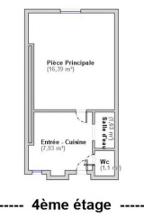 A 50m du Canal et vue sur le côté de l'écluse, rue de la Grange aux Belles, dans immeuble ancien bien entretenu, au 4ème et dernier étage sans ascenseur, ce STUDIO rationnel de 28m² au sol, dont 27,05m² Carrez, avec combles récupérables auprès de la copropriété (un voisin l'a fait, mais rien n'est fait pour ce bien). Il est composé de : entrée-cuisine de 8m² avec fenêtre sur courette exposée Sud Est/Est ; Séjour de 17m² avec tomettes et poutres, fenêtre Nord Ouest/Ouest, sans vis à vis direct (possiblibité de gagner beaucoup en hauteur sous plafond si rachat des combles) ; salle d'eau ; WC séparé, broyeur mais possibilité de transformer en vrai WC moyennant travaux de raccords. Habitable en l'état mais dans son "jus bo-bo" ou possibilitée de faire des travaux et en faire un bijou.