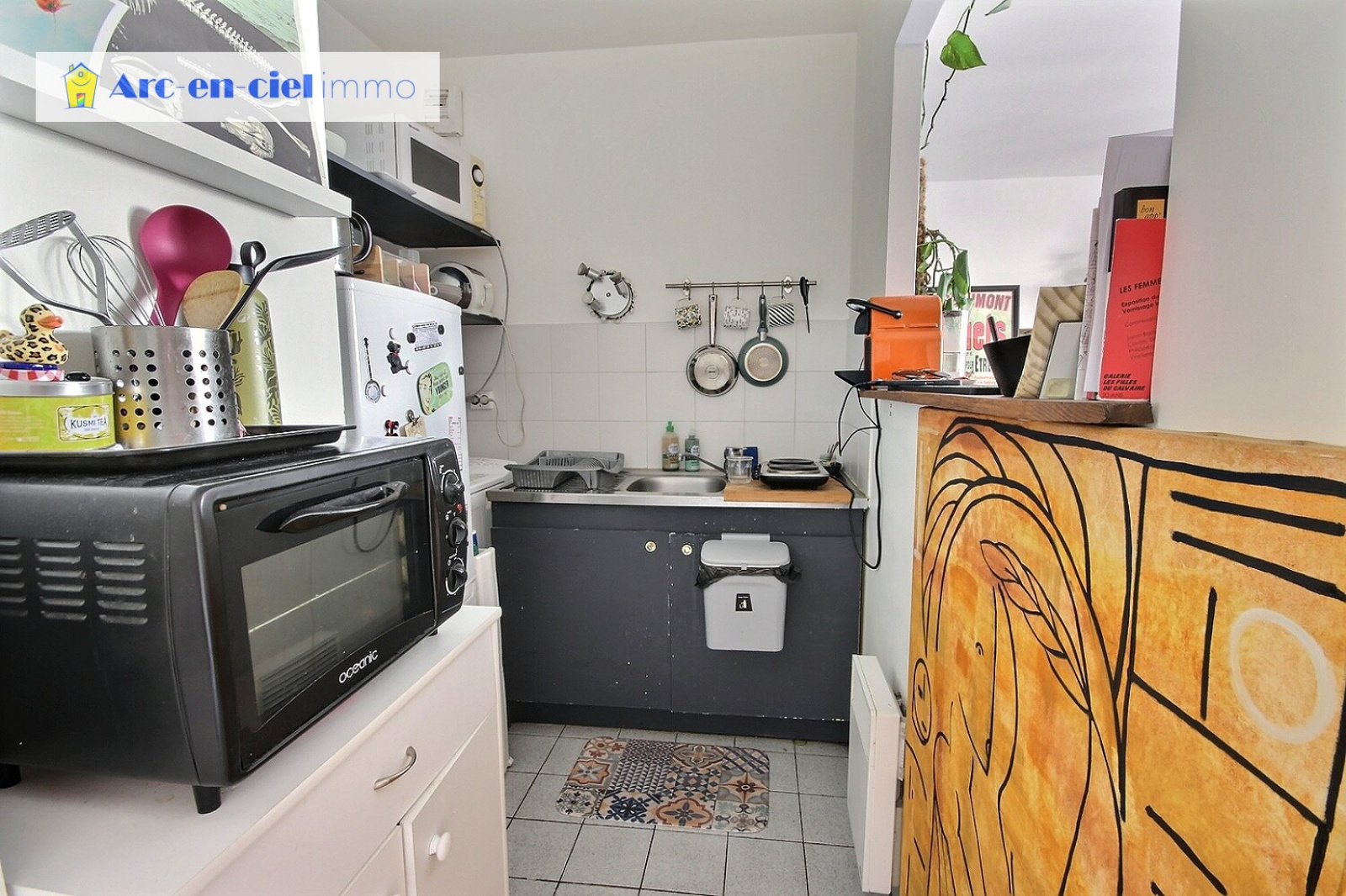 Résidence de standing "Le Montmartre" dans bel immeuble 1994 façade en Pierre agrafée, proche du Marché St Pierre, entre métros Anvers (ligne 2) et Barbès (lignes 2 et 4), au CALME, au 5ème et avant-dernier étage avec ascenseur, dans résidence avec gardien 24h/24, ce grand studio de 33.56m² au sol dont 33.18m2 Carrez, + 2m² de BALCON, plan en étoile avec entrée desservant toutes les pièces, comprenant : une entrée avec porte blindée et placards, grand séjour de 22m² pouvant créer espace nuit et baie vitrée sur le balcon au Nord-Est et superbe vue sur batiment historique et le haut Sacré-Coeur, cuisine de 3.38m² avec ouverture sur séjour, fonctionnelle pouvant être refermée, belle salle de bains et wc. Bon état. 1 cave. Local vélo. Possibilité de vente (25.000 €) ou location (120€) d'une place de parking.