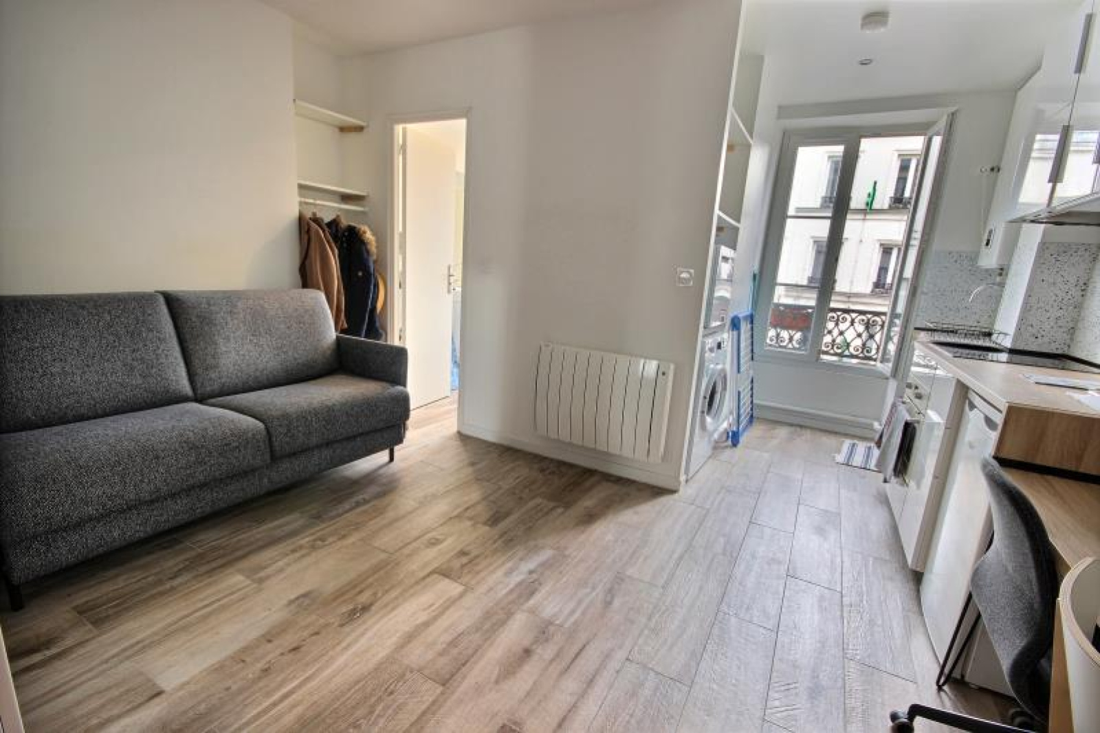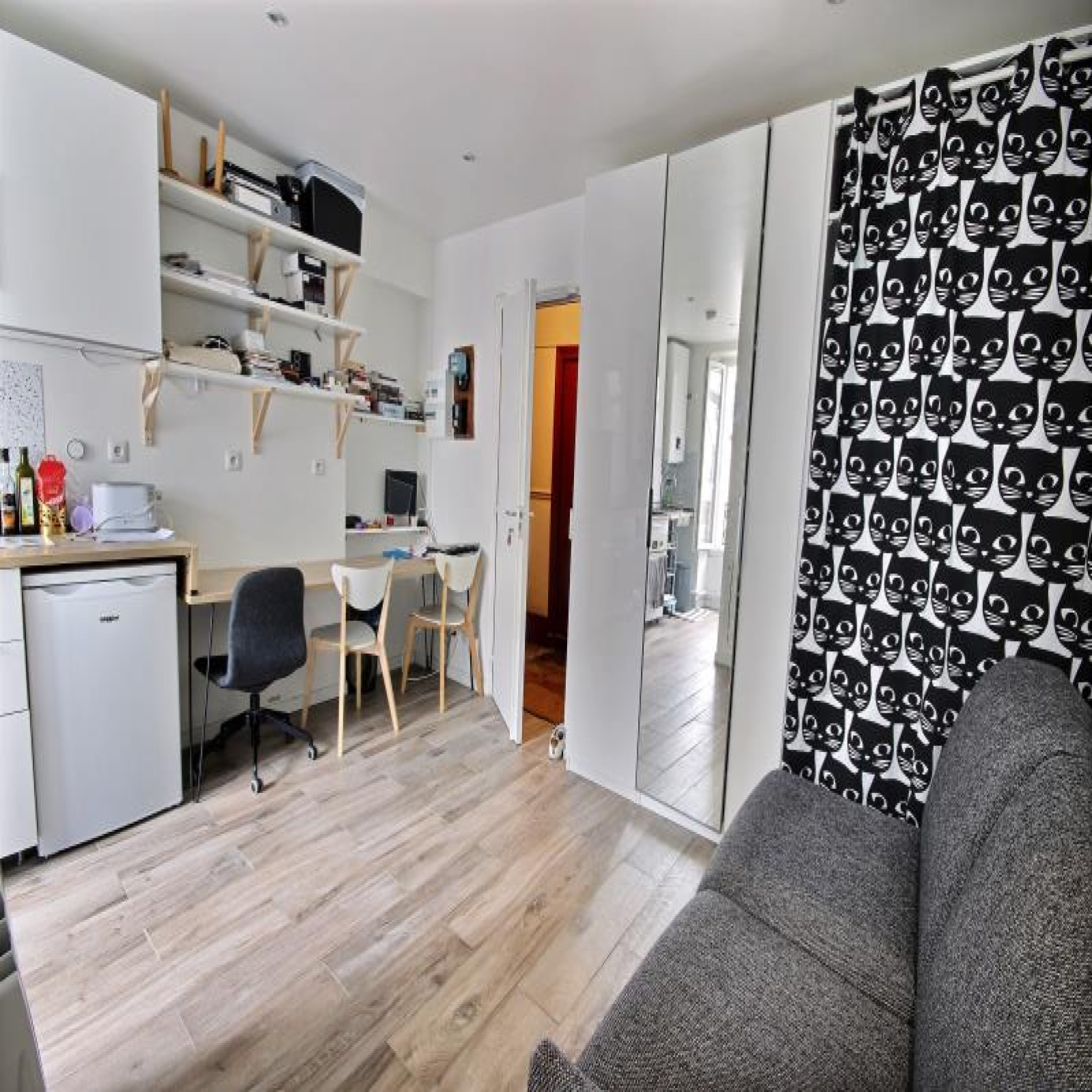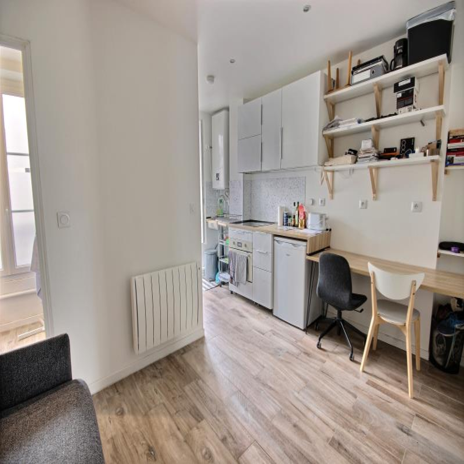 Proche des métros Nation (L1), Avron (L2) et Buzenval (L9), dans petit immeuble de 4 étages, superbe studio de 20m² au sol dont 19.82m² Carrez au 2ème étage, REFAIT à NEUF récemment, composé d'une pièce principale avec très beau carrelage imitation parquet, cuisine aménagée avec branchements lave-linge et lave-vaisselle, intégrant une partie bureau/plan de travail sur pan mural entier, rangements, salle d'eau spacieuse avec fenêtre et wc. Exposé SUD. Electroménager en option, Cagibi indépendant d'environ 1.50/2m² sur le palier en option pour 10.000E. Très bonne classe d'énergie D. Copropriété 72 principaux. Quote-part budget previsionnel annuel :612 E. Prix affiché honoraires inclus à 4.29% ttc.