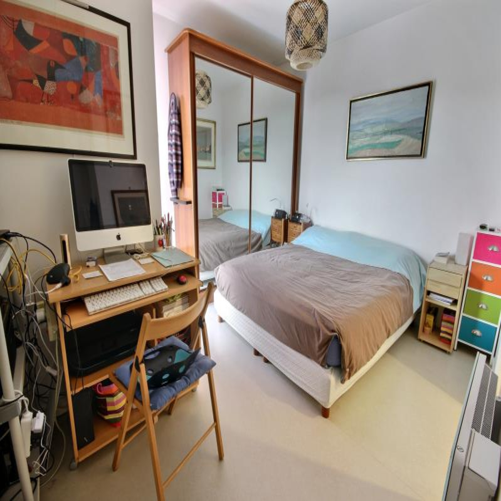 Très beau et grand 2 pièces RATIONNEL de 51,75m² habitable + TERRASSE de 12,50m² au 4ème dernier étage avec ascenseur, plein OUEST ensoleillé et sans vis à vis. ~Entrée avec porte blindée et placard, séjour de 25m² double exposition + cuisine américaine de 5m² avec fenêtre (pouvant être refermée), belle chambre de 13m² d'angle avec place d'un bureau, salle de bains et wc séparé. Bon état général. Double vitrage, volets, chauffage individuel électrique, dont 1 très économique avec accumulateur moderne, bonne isolation phonique et termique... ~vendu avec 1 place de parking boxable avec vidéosurveillance. dans belle résidence de standing 2006 Villa des Poêtes, rue Frida Kahlo à Bobigny, entre les métros terminus ligne 7 du 18 mai 1945 et Fort d'Aubervilliers, TRAM, bus et RER, quartier neuf "Pont de Pierre" proche marché, écoles, stade, gymnase, salle fitness...~Copropriété : 108 Lots dont 56 principaux. Quote-part budget prévisionnel annuel : 1128€. Classe d'énergie E. Prix affiché honoraires inclus à 4,09% TTC.