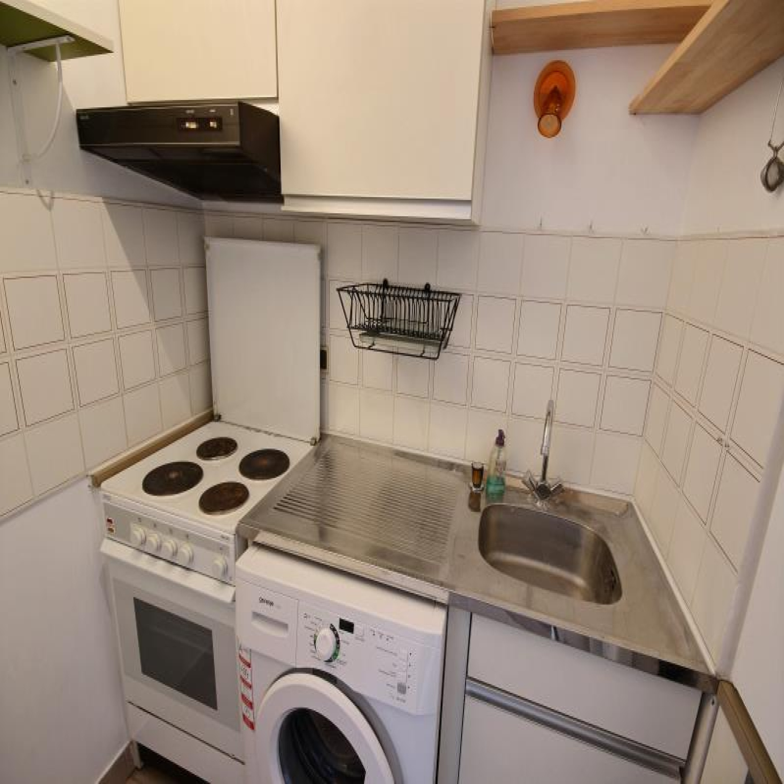 RESIDENCE DE SERVICE. A Montrouge rue Victor Hugo à 5 mn du métro Mairie de la ligne 4, idéal étudiants et seniors mais tout le monde y est bienvenu, grand studio rationnel de 30m² pondérés dont 27,46m² carrez + BALCON VUE DEGAGEE sur grand JARDIN PAYSAGER, au 3ème étage avec ASCENSEUR. Résidence de standing de Cogedim 1989. Composé d'une entrée, belle pièce principale très lumineuse avec parquet et placard spacieux double portes coulissantes sur le balcon avec volets électriques, cuisine indépendante (possibilité d'ouvrir sur le séjour) équipée (meubles bas et hauts, hotte, cuisinière 4 feux électriques et four classique, lave-linge, réfrigérateur, étagères murales), salle d'eau et wc. Accueil 7/7 par des hôtesses + prestations salle de réception, bar, restaurant, laverie... 1 cave. Classe d'énergie D. Copropriété: 184 lots dont 66 lots principaux. Quote-part budget prévisionnel annuel : 7272€. Prix affiché honoraires inclus à 4% TTC.
