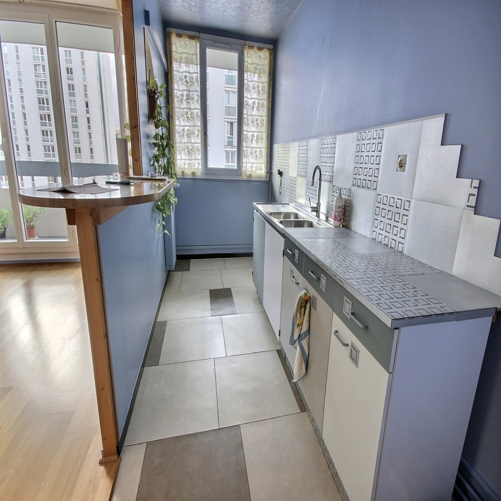 A la Porte de La villettte côté Aubervilliers, métro 4 Chemins et Tram, Rue Henri Barbusse, dans belle résidence standing de 1975, au 10ème et DERNIER étage avec ASCENSEUR, grand 2 pièces de 46,48m² Carrez + BALCON de 7m² à l'OUEST, comprenant : entrée avec porte blindée, séjour, cuisine ouverte sur séjour mais pouvant être refermée, 1 chambre, grande salle de bains avec bidet et wc séparé, nombreux placards. Vue côté jardin et dégagée sur Le Sacré Coeur. Chauffage collectif avec compteurs individuels et Climatisation réversible.