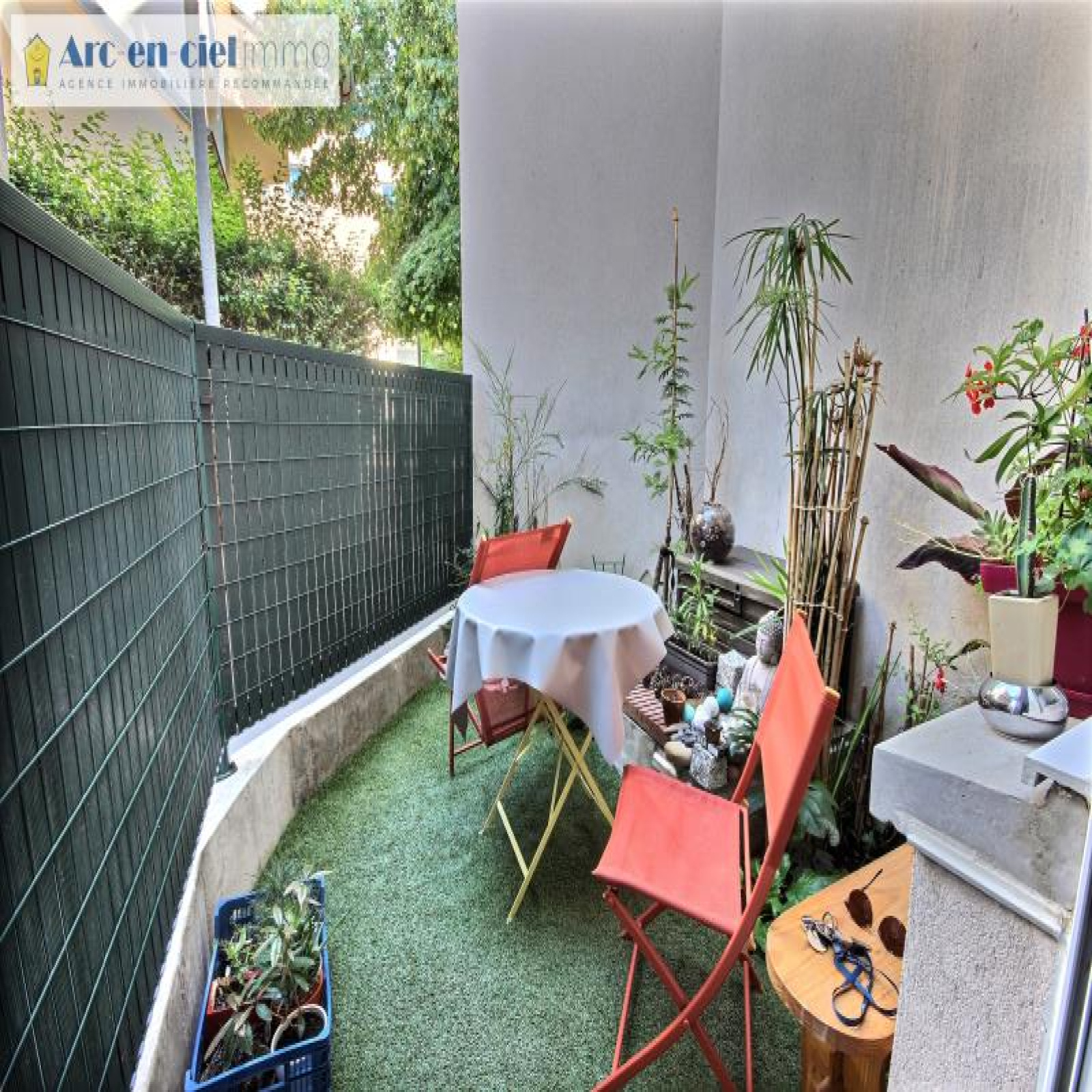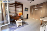 Superbe STUDIO de 22m² avec TERRASSE-JARDIN de 9m² à l'Est (soleil le matin) sur verdure, et 1 grand BOX fermé pour la voiture. Au rez-de-jardin, sécurisé et calme, dans résidence de standing de 1996. ~Appartement en parfait état et décoration raffinée, lit encastrable dans armoire de rangement, cuisine équipée rationnelle avec réfrigérateur, plaque de cuisson, hotte, meubles haut et bas et fenêtre oscillo-battante ; salle de bains moderne avec meubles. Beau carrelage au sol, radiateur économie d'énergie, double vitrage de qualité et volets.~Métro Fort d'Aubervilliers ligne 7 et future station prolongement de la ligne 12. Entrée de la résidence par la rue de l'Abeille et Rue Léopold Réchossière à Aubervilliers.~Copropriété : 99 lots dont 44 lots principaux. Faibles charges Quote-part budget prévisionnel annuel : 872 € ; Classe d'énergie E. ~142.000 € Prix affiché honoraires inclus à 5,19% TTC à charge acquéreur, soit 135.000 € net vendeur AVEC le BOX.