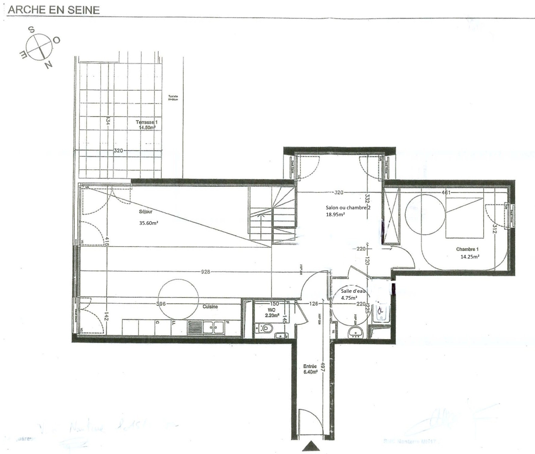 Entre métro la Défense et RER Nanterre-Préfecture à 5mn à pied, Central Park dans une résidence récente de standing "Arche Seine" aux normes handicapées, au 8ème et 9ème dernier étages avec ascenseur, cet appartement DUPLEX de 6 pièces offre une superficie de 150m² Pondérée (dont 137,66 m² Carrez et 2 TERRASSES de 22,30m² pondérées à 1/2 + CAVE et PARKING). Très lumineux, triple exposition : Sud/Est ; Sud/Ouest et Nord/Ouest. il comprend : une entrée avec grand WC, un spacieux séjour de 35.60m² avec grand volume cathédrale de 6m de haut, ainsi qu’une cuisine américaine sur un pan mural entier, l’ensemble bénéficie d’une magnifique vue sur La Défense et un accès à la 1ère terrasse de 14m². Un salon de 19m² pouvant être transformé en 5ème chambre. Une première grande chambre parentale de 14,21 m² ainsi qu’une salle d’eau moderne à l’italienne complètent ce niveau.