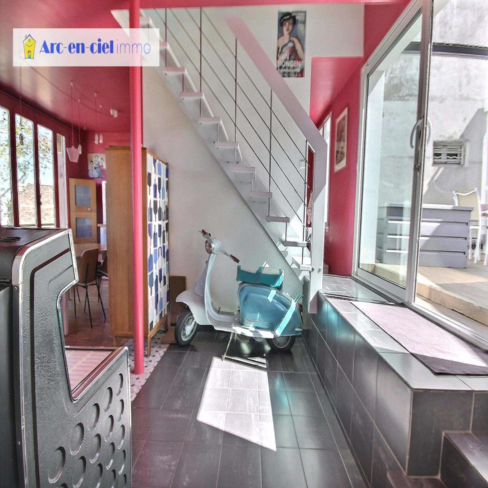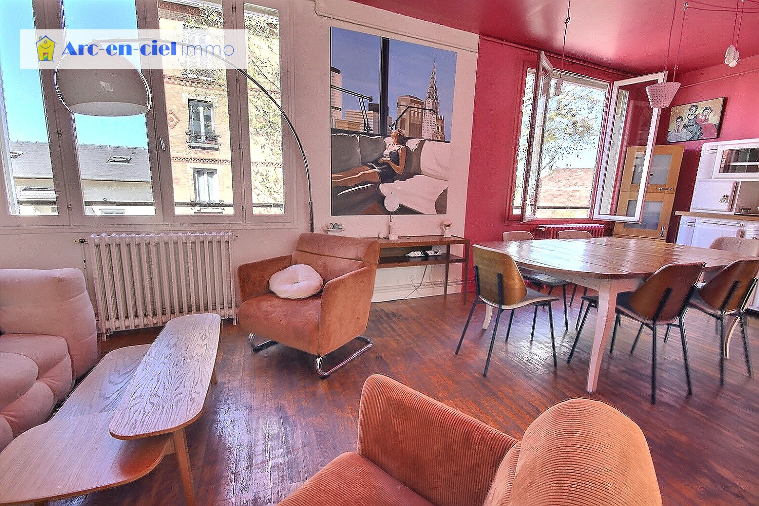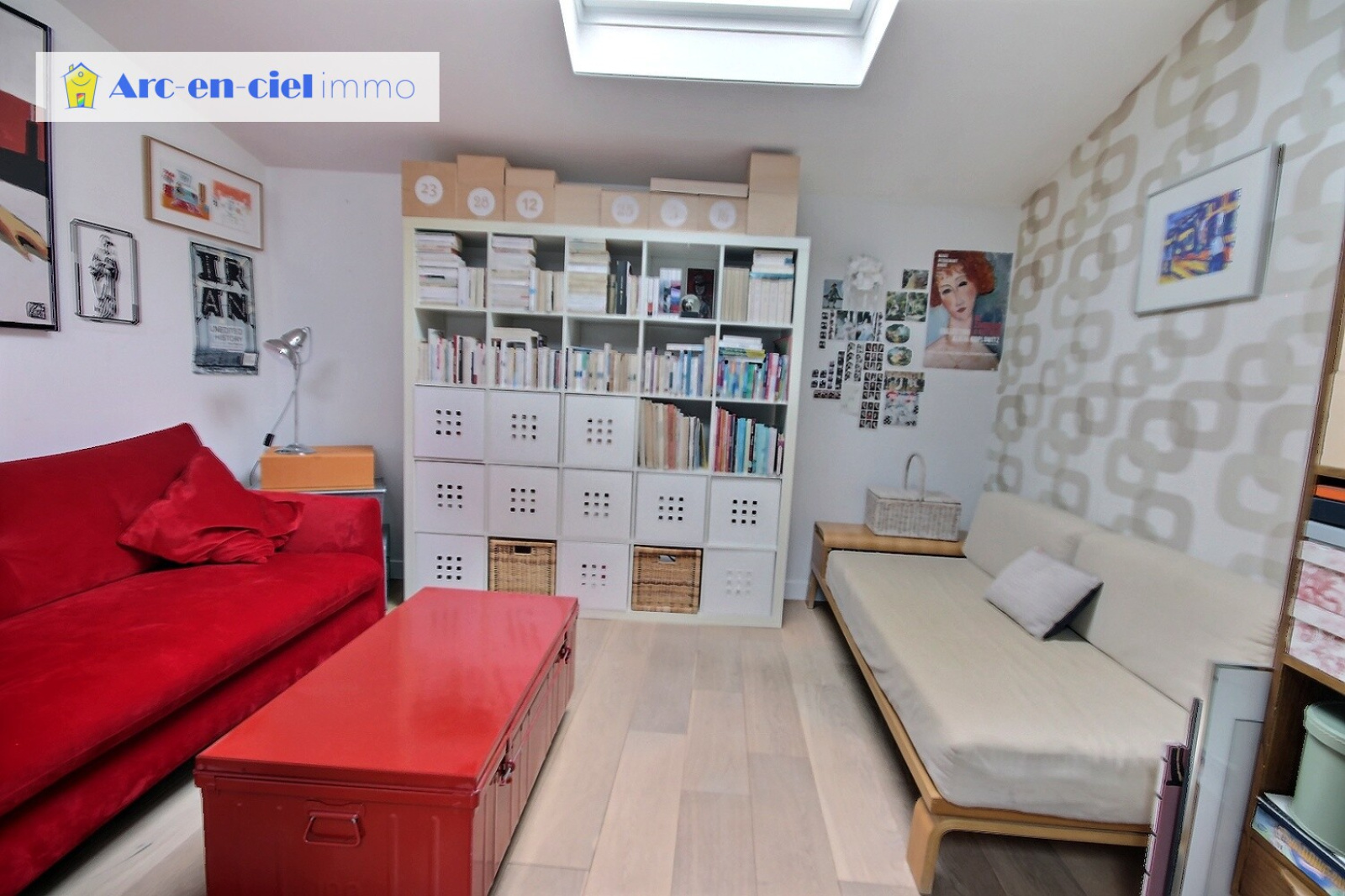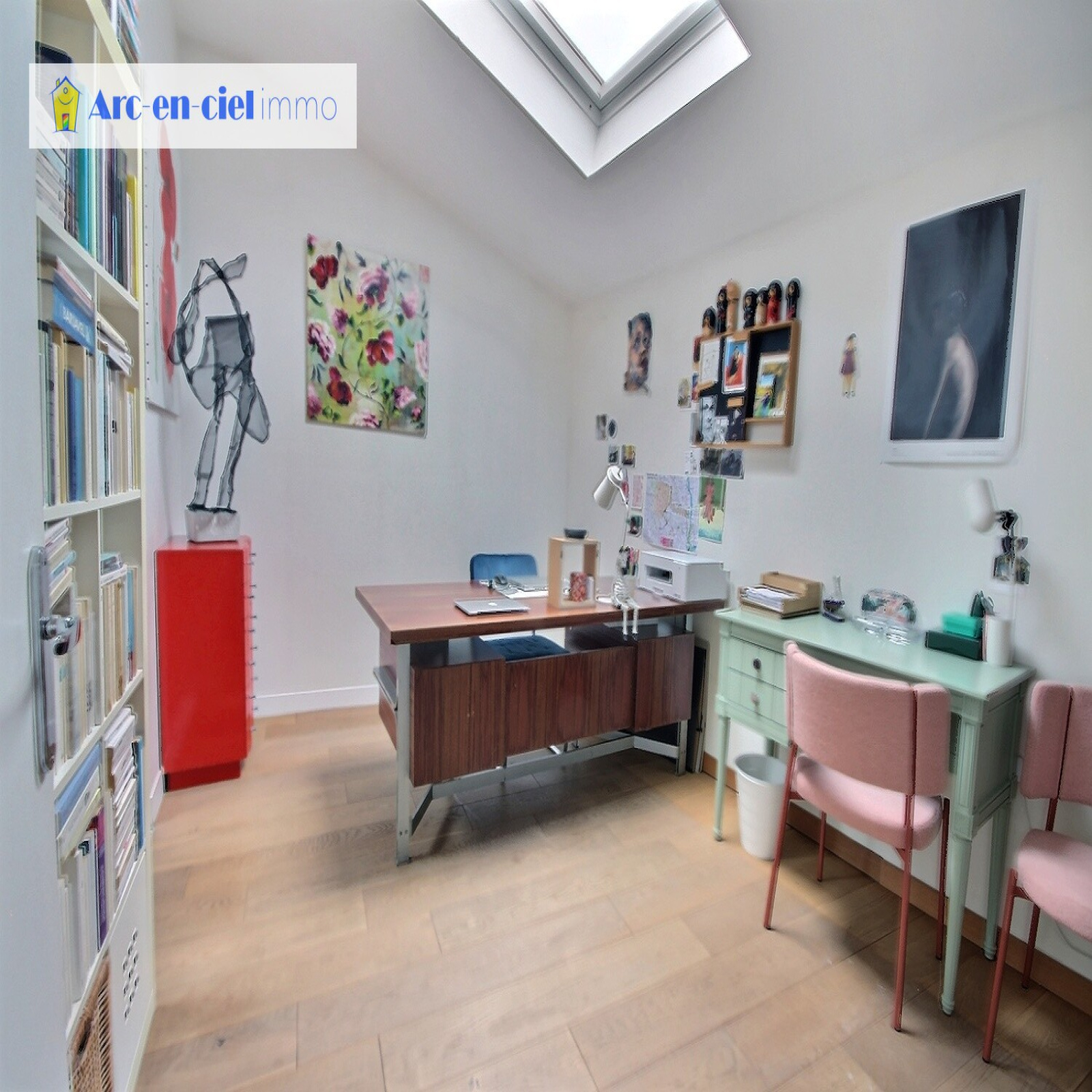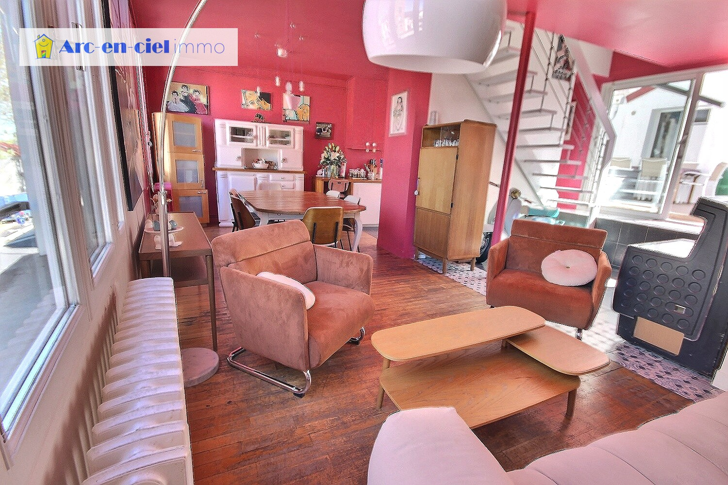 Aux Lilas, proche métro Mairie des Lilas, quartier pavillonnaire très agréable entre lofts et belles maisons, LOFT DUPLEX atypique, comme une maison sur le toit d'un petit immeuble de 3 copropriétaires, 160,25m² au sol dont 153.49m² Carrez, en 2 parties + TERRASSE 30.52m². Il se décompose comme suit : au 1er étage : Entrée avec placard, séjour double 41,5m² avec cuisine équipée séparée mais ouverte sur séjour et sur entrée ; double exposition Nord/Ouest et Sud/Est ; wc avec rangement et fenêtre ; au 2ème étage : 2 chambres de 25m² et 18m² dont une avec salle d'eau (possibilité de créer 2ème salle d'eau dans la 2ème chambre) ; une belle terrasse sépare la 2ème partie (anciennement des ateliers) transformée en 4 chambres de 16, 15, 12.5 et 11m² (dernière très mansardée) avec des fenêtres, d'immenses verrières double vitrage, 2 chambres avec vue sur la terrasse et 2 chambres avec vue sur jardin exotique du voisin. Idéal pour familles recomposées ou très grande famille ou pour faire des ateliers-bureaux ou autres usages... Chauffage individuel au gaz ; en parfait état et habitable en l'état sauf si vous n'aimez pas le rose et le rouge ;-) A visiter pour comprendre le concept et avoir le coup de cœur.