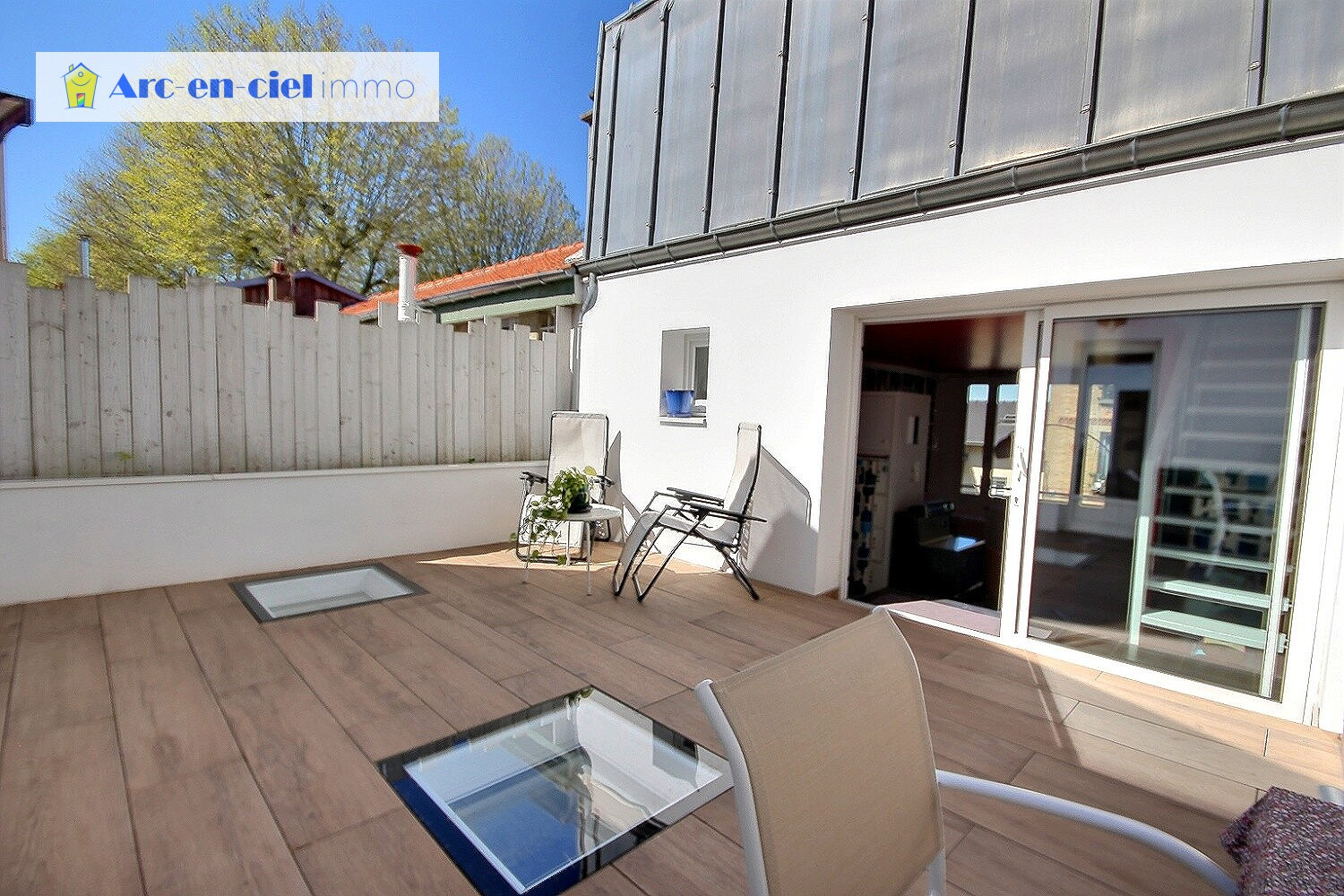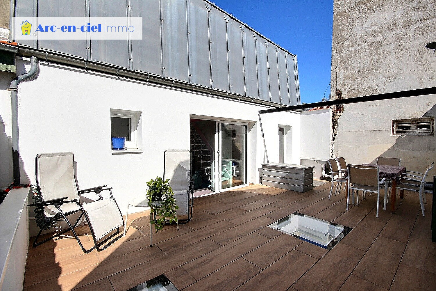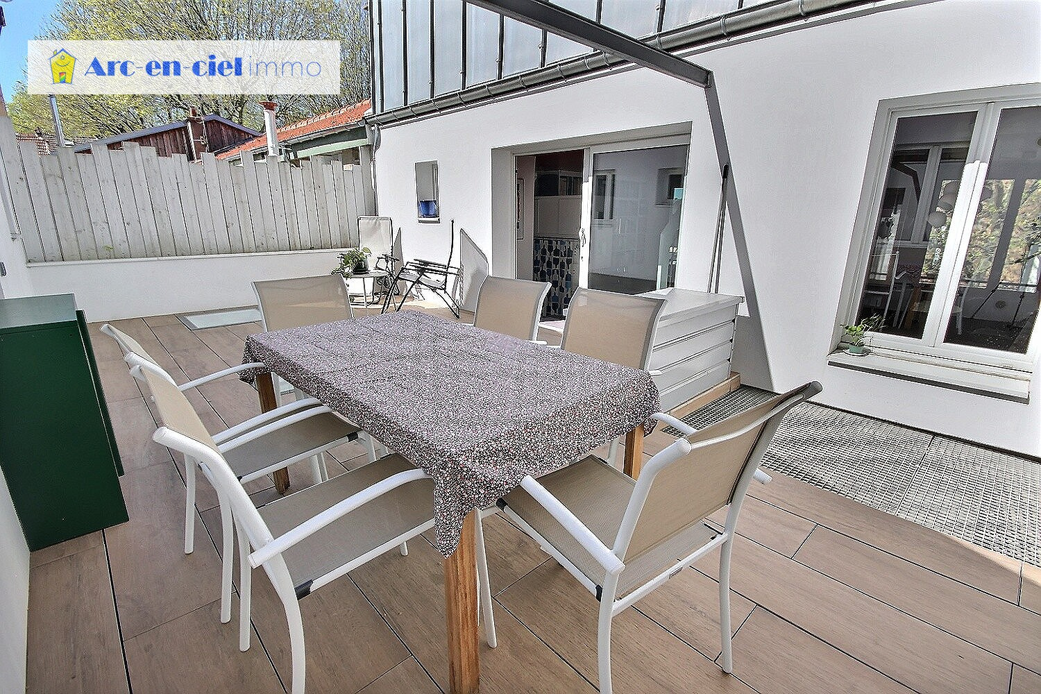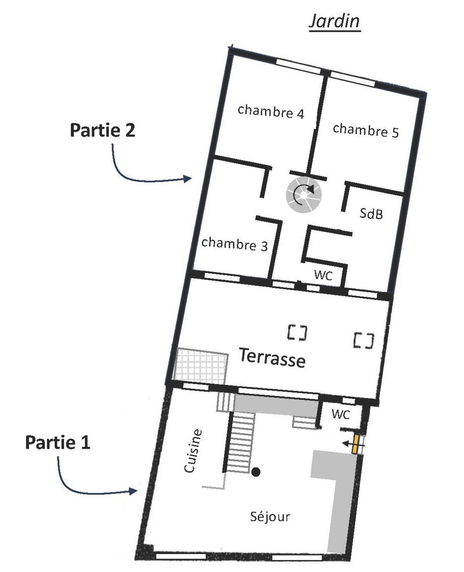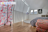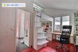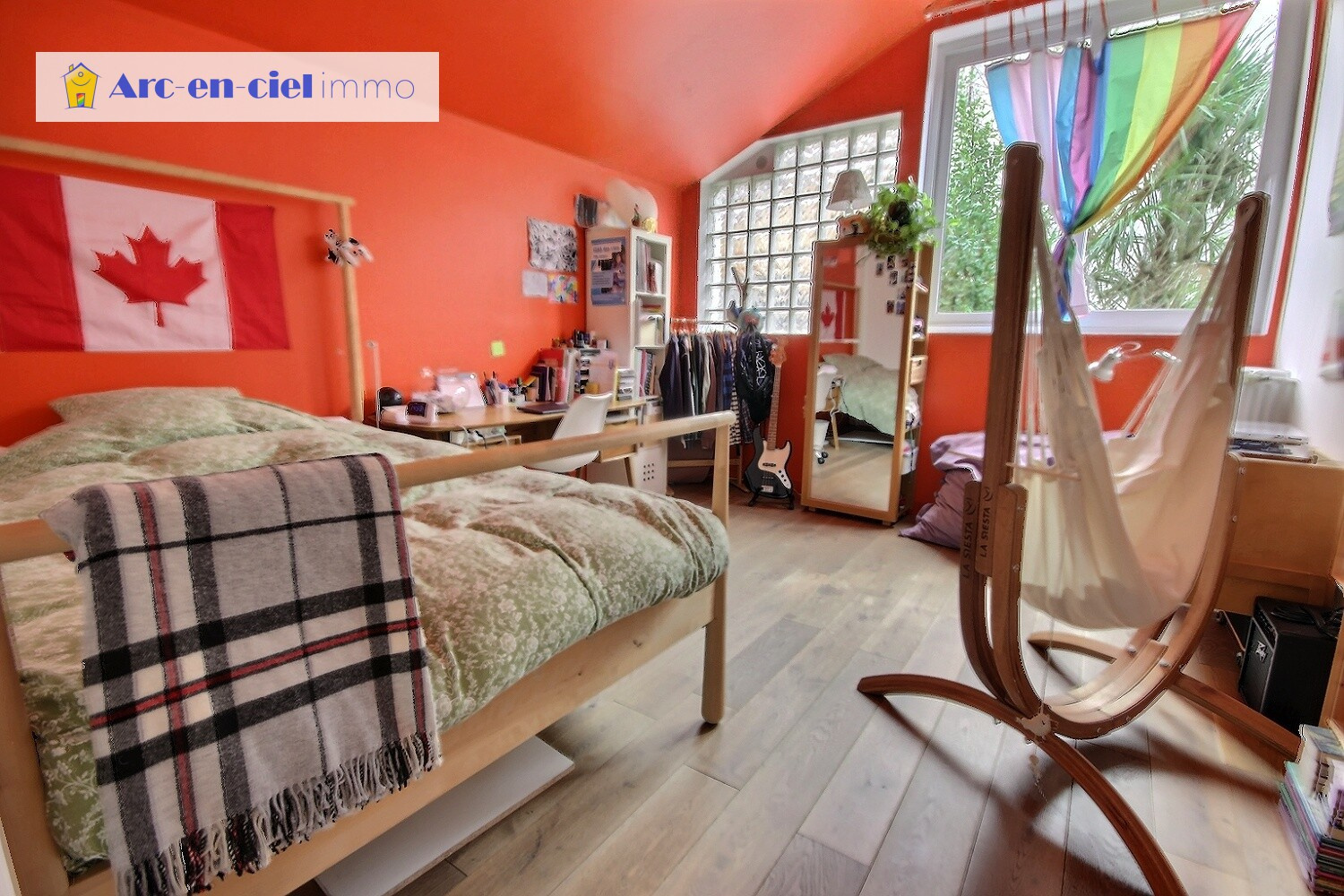 Aux Lilas, proche métro Mairie des Lilas, quartier pavillonnaire très agréable entre lofts et belles maisons, LOFT DUPLEX atypique, comme une maison sur le toit d'un petit immeuble de 3 copropriétaires, 160,25m² au sol dont 153.49m² Carrez, en 2 parties + TERRASSE 30.52m². Il se décompose comme suit : au 1er étage : Entrée avec placard, séjour double 41,5m² avec cuisine équipée séparée mais ouverte sur séjour et sur entrée ; double exposition Nord/Ouest et Sud/Est ; wc avec rangement et fenêtre ; au 2ème étage : 2 chambres de 25m² et 18m² dont une avec salle d'eau (possibilité de créer 2ème salle d'eau dans la 2ème chambre) ; une belle terrasse sépare la 2ème partie (anciennement des ateliers) transformée en 4 chambres de 16, 15, 12.5 et 11m² (dernière très mansardée) avec des fenêtres, d'immenses verrières double vitrage, 2 chambres avec vue sur la terrasse et 2 chambres avec vue sur jardin exotique du voisin. Idéal pour familles recomposées ou très grande famille ou pour faire des ateliers-bureaux ou autres usages... Chauffage individuel au gaz ; en parfait état et habitable en l'état sauf si vous n'aimez pas le rose et le rouge ;-) A visiter pour comprendre le concept et avoir le coup de cœur.